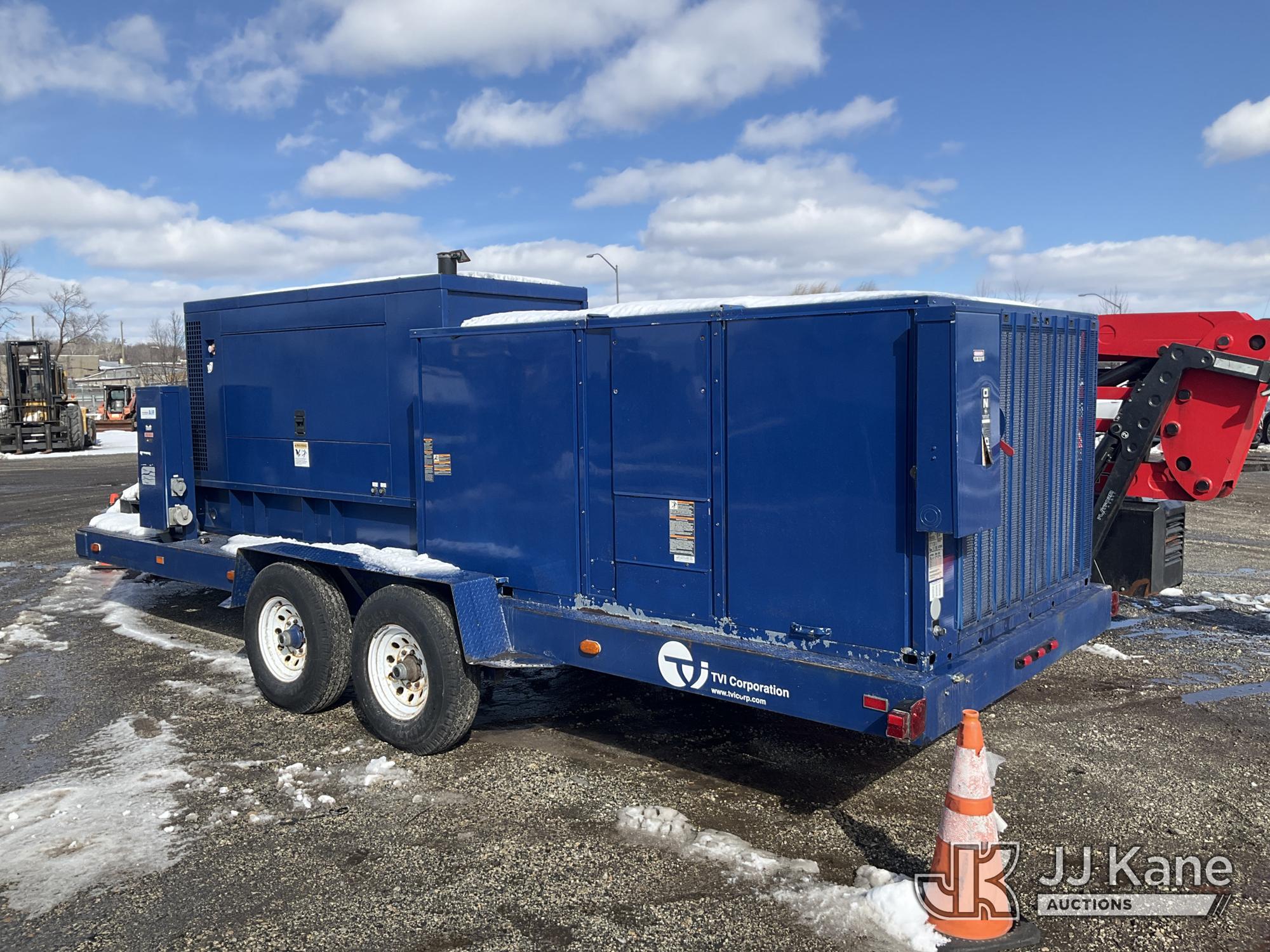 2006 Ingersoll Rand G125 Portable Generator/HVAC System, s/n FLT4006XX, John Deere diesel, with Tandem Axel Trailer with New 7.50-16LT Tires, (HVAC Features: Carrier 15 Ton Packaged Trailer Mounted Electric Heat & Electric Cool Unit Med Heat 2-Stage (460-3-60) 16" Side Mounted Supply and Return Collars)(Generator Features: Ingersoll-Rand G125 100KW, 480/277 Volts3 phase, With Manual Transfer Switch, John Deere Diesel Engine, 100 Gallon Fuel Tank) (No Title) (Seller States; Runs & Operates) (Reads 166 hours)*