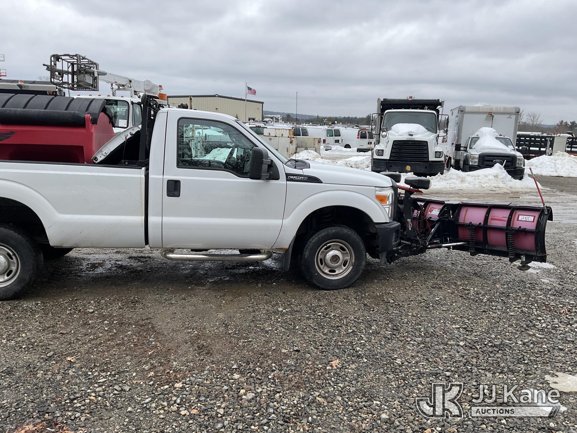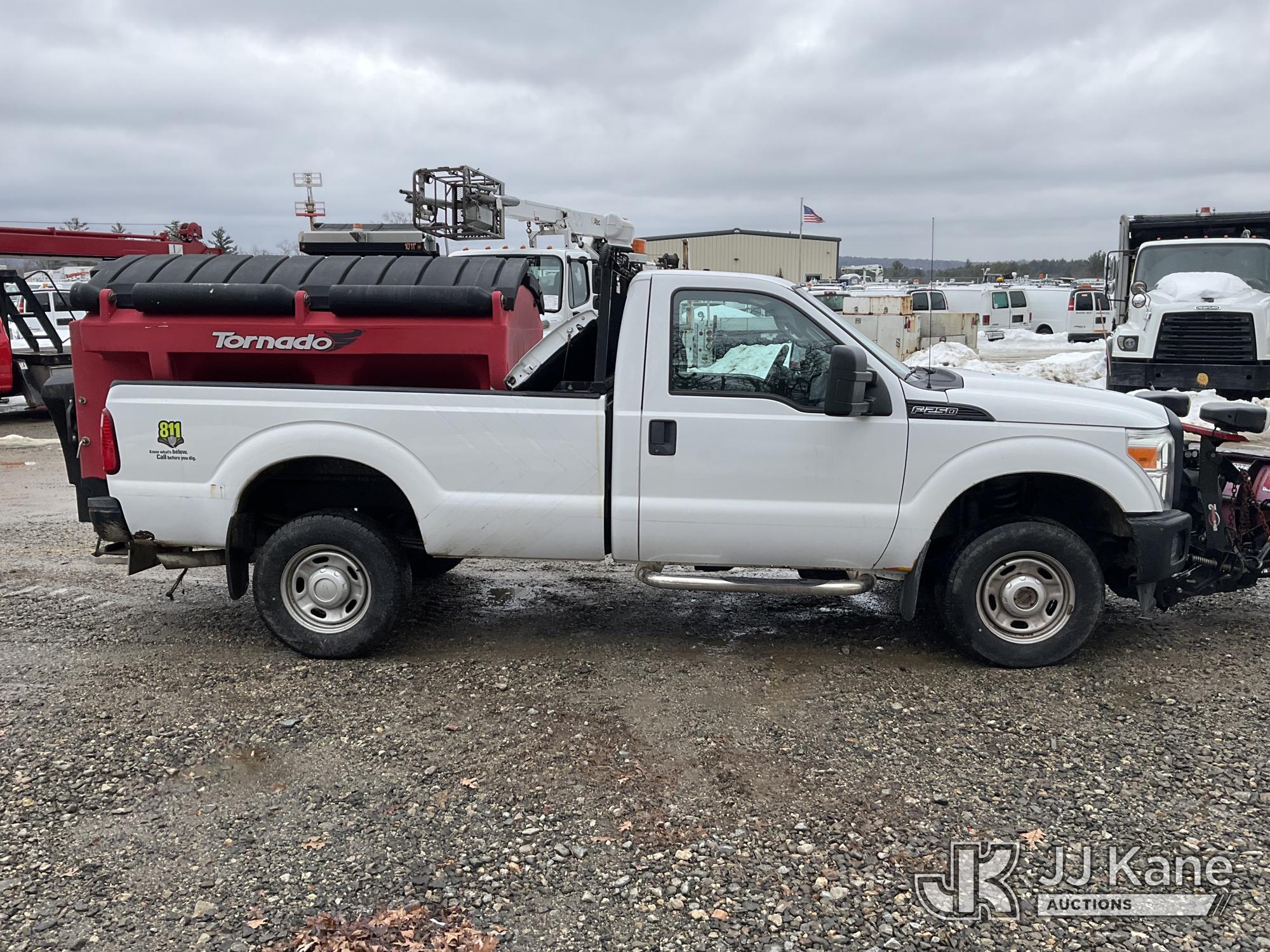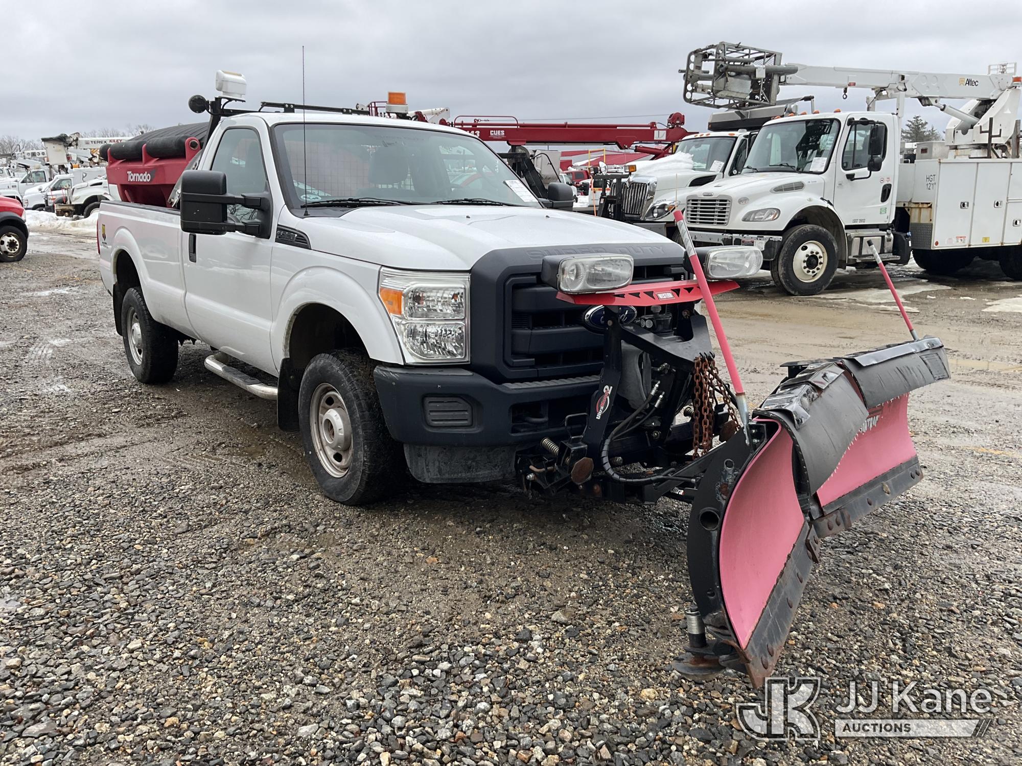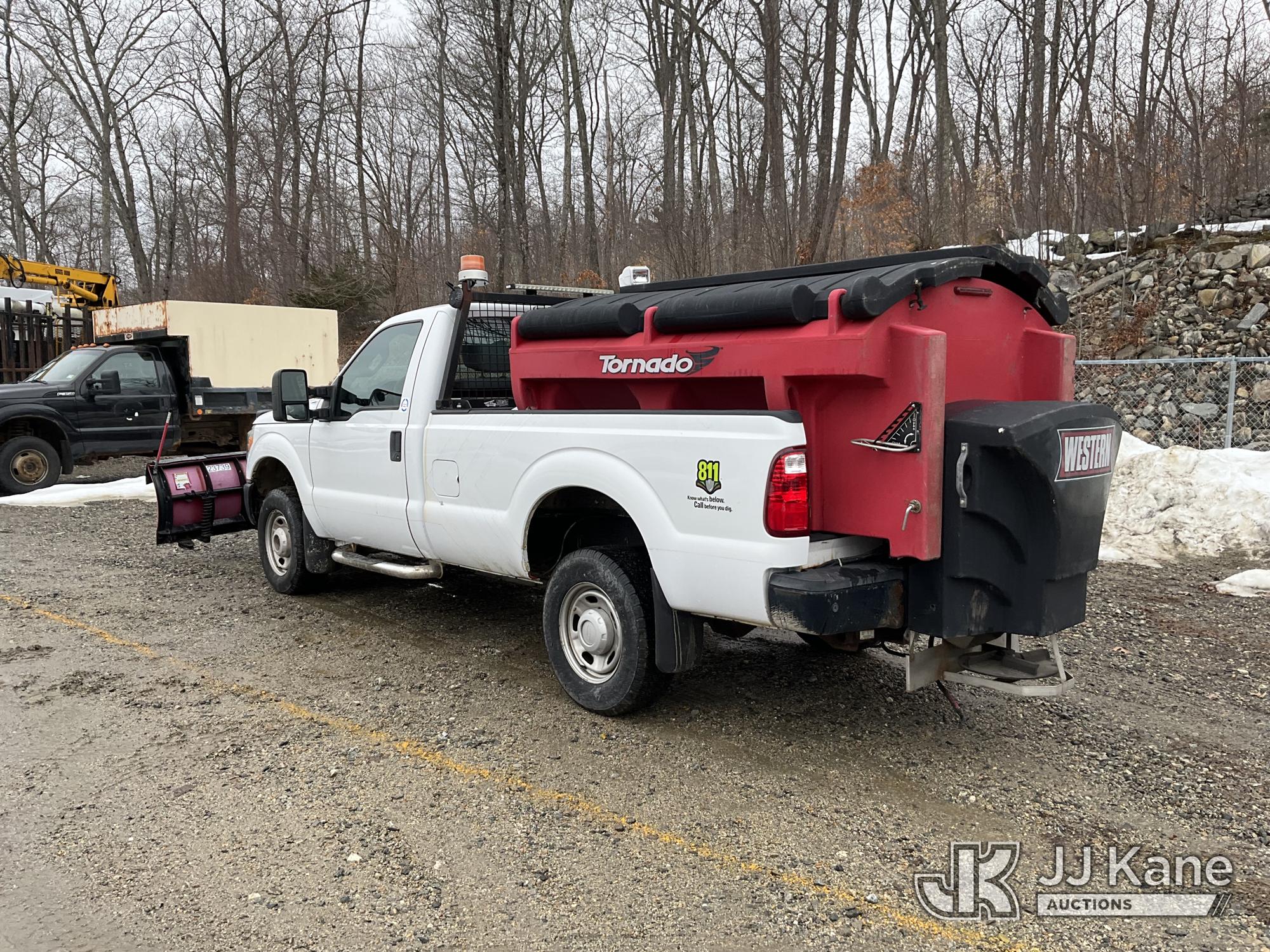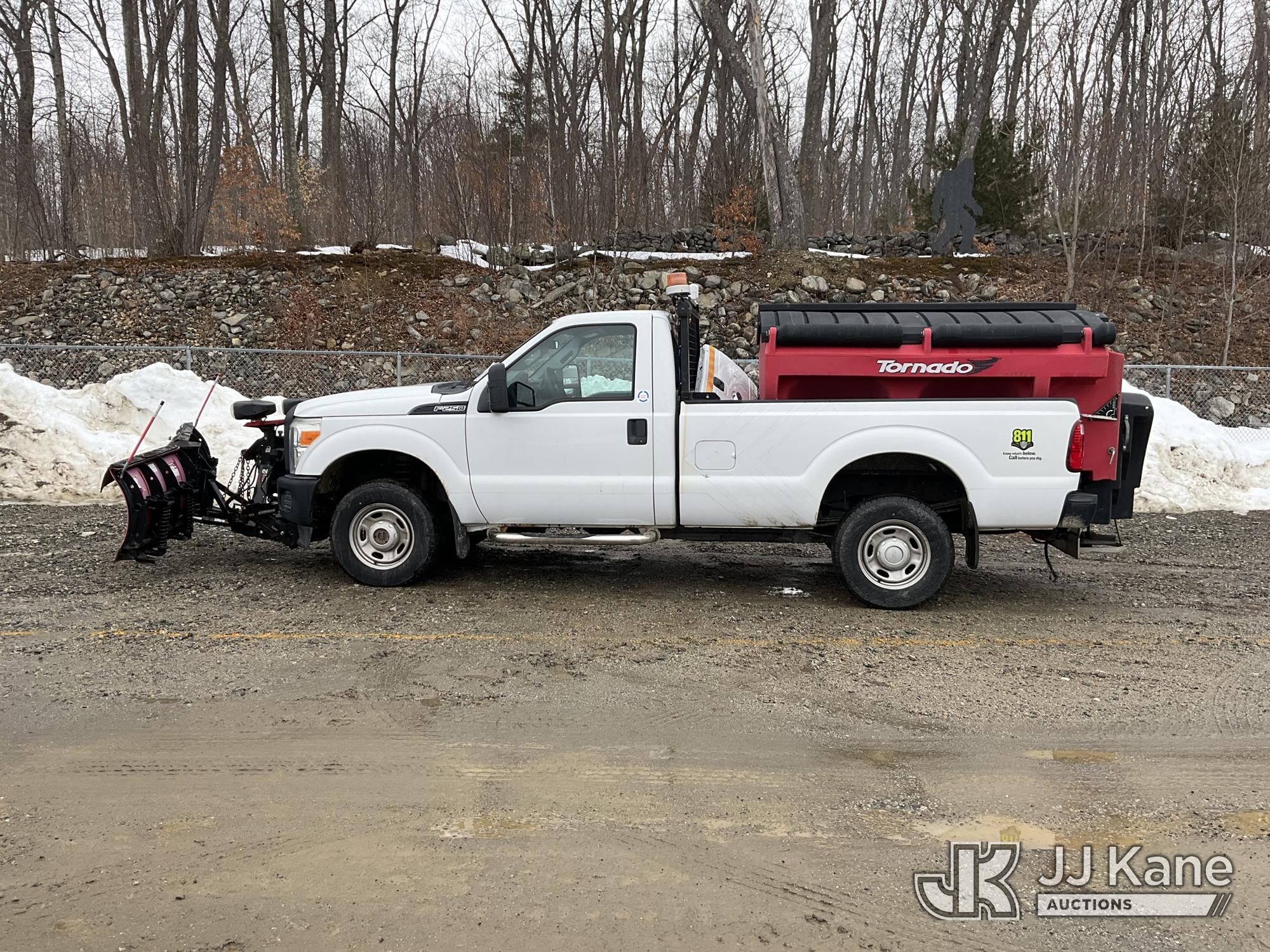 2015 Ford F-250 SD Pickup Truck, 6.2L V8 4WD, gas, 6-Speed Automatic, A/C, with 8 ft. Western V-Plow & Tornado Spreader, (14,895 miles) (Runs & Moves) (Plow Chained Up) This is a Titled Item*