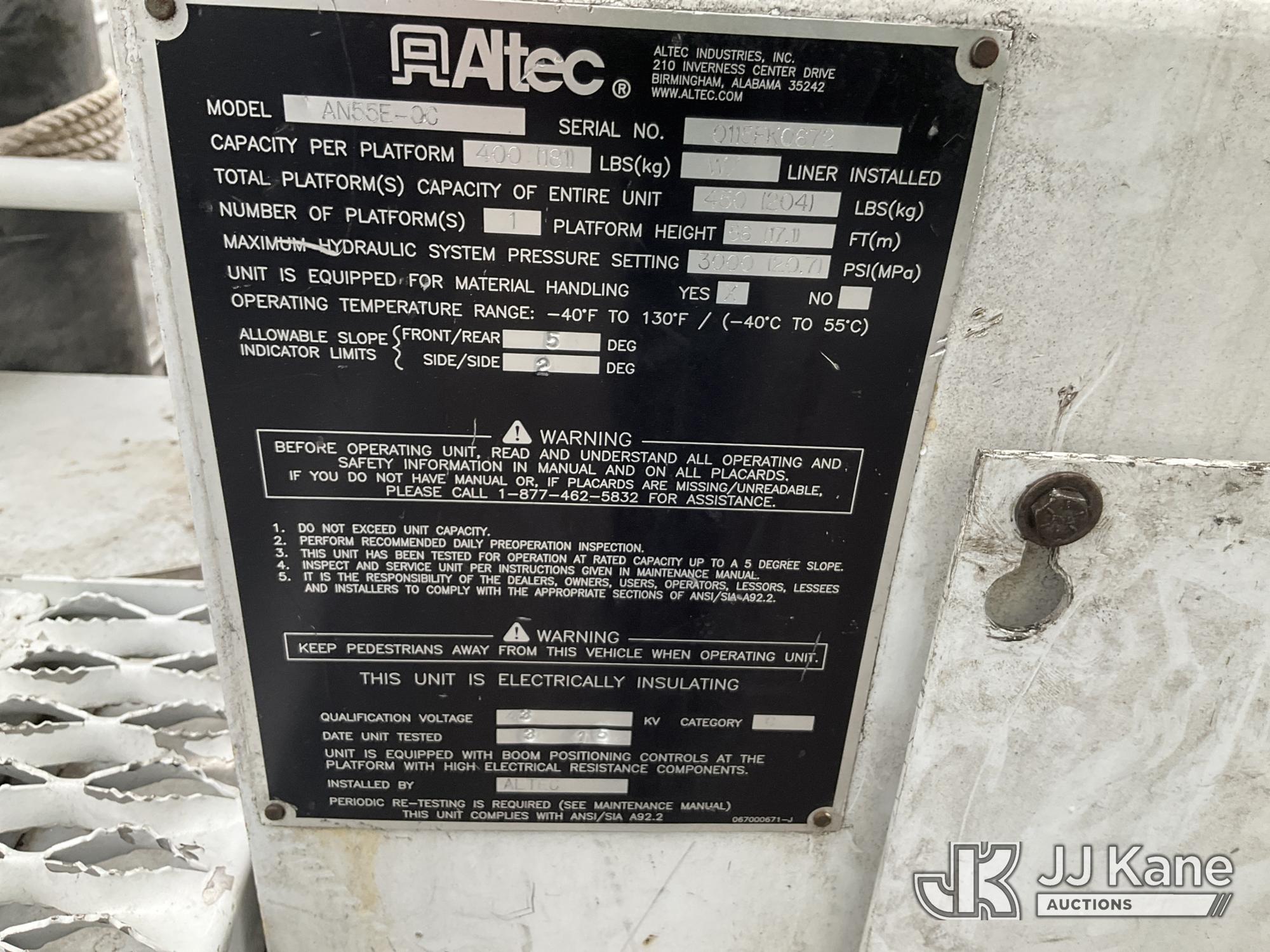 Altec AN55E-OC, 60 ft, Material Handling Bucket Truck s/n 0115FK0672, with Single Man Bucket & 4 Outriggers , rear mounted on 2016 Freightliner M2-106 Extended-Cab Service Truck, Cummins diesel, Auto, A/C, (94,126 miles) (Runs & Moves, ABS Light On)(Seller states unit removed from service: Do not operate - Upper Operation Unknown - Electrical Issues; Requires ANSI Inspection for Repair/Replacement Requirements.) This is a Titled Item*