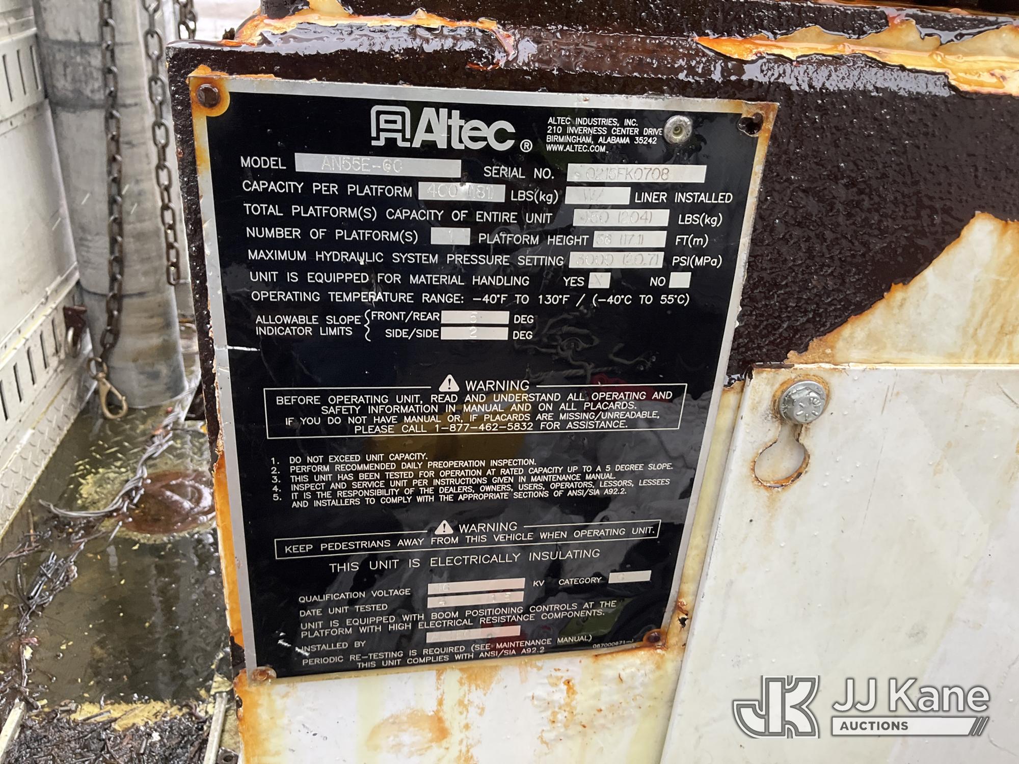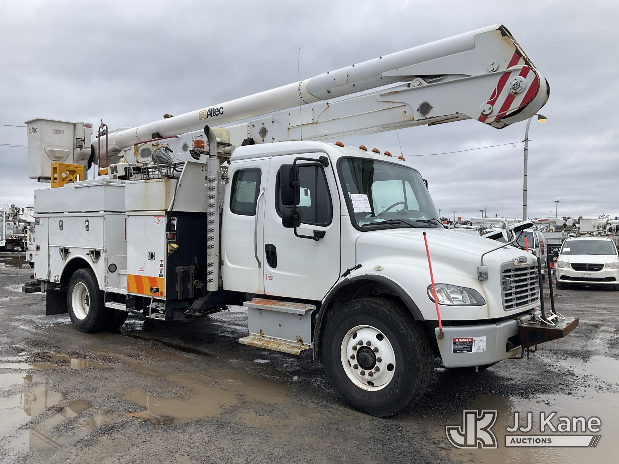Altec AN55E-OC, 60 ft, Material Handling Bucket Truck s/n 0215FK0708, with Single Man Bucket & 4 Outriggers , rear mounted on 2016 Freightliner M2 106 Extended-Cab Utility Truck, 6.7L diesel, Auto, A/C, (137,434 miles) (Runs, Moves & Upper Operation Unknown, Hydraulic Leak at Upper Controls, Jump to Start, Check Engine Light On, Do Not Operate Upper) This is a Titled Item*