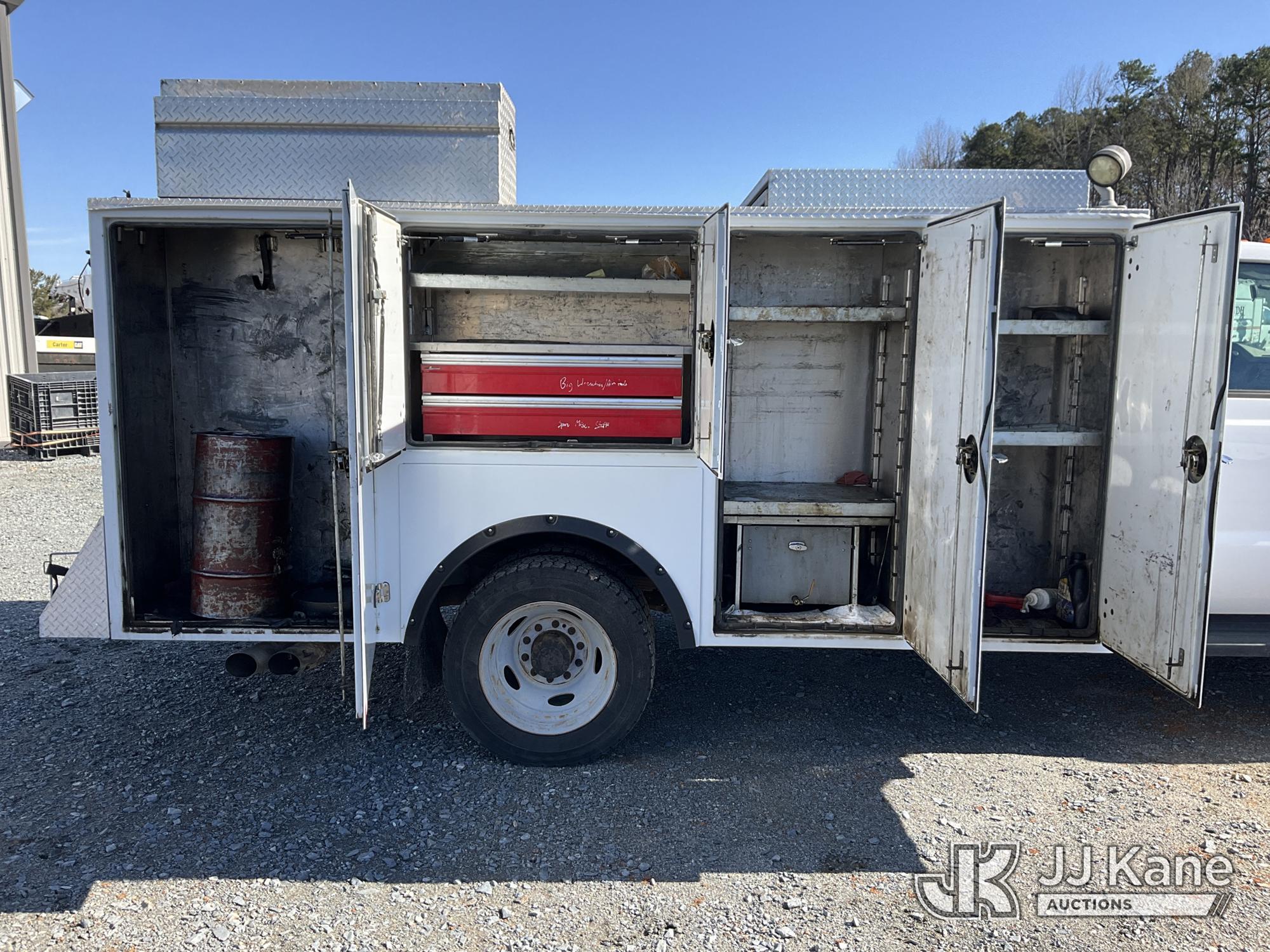2016 Ford F550 Enclosed Service Truck, 6.7L diesel, Auto, A/C, with roll top bed cover, VMAC hyd pump & hyd air compressor w/hose reel, 4 product tanks w/ hose reels & waste oil recovery system , (125,487 miles) (Runs & Moves) (Jump To Start) This is a Titled Item*