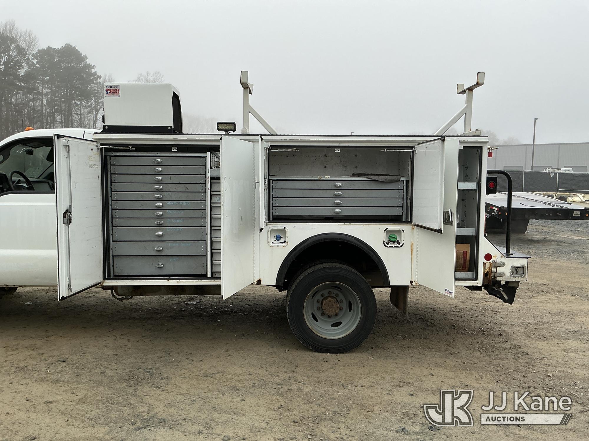 2012 Ford F550 4x4 Service Truck, 6.7L diesel, Auto, A/C, with American Eagle SHD-60 hyd air compressor w/hose reel , (177,172 miles) (Runs & Moves) (Jump To Start ) This is a Titled Item*