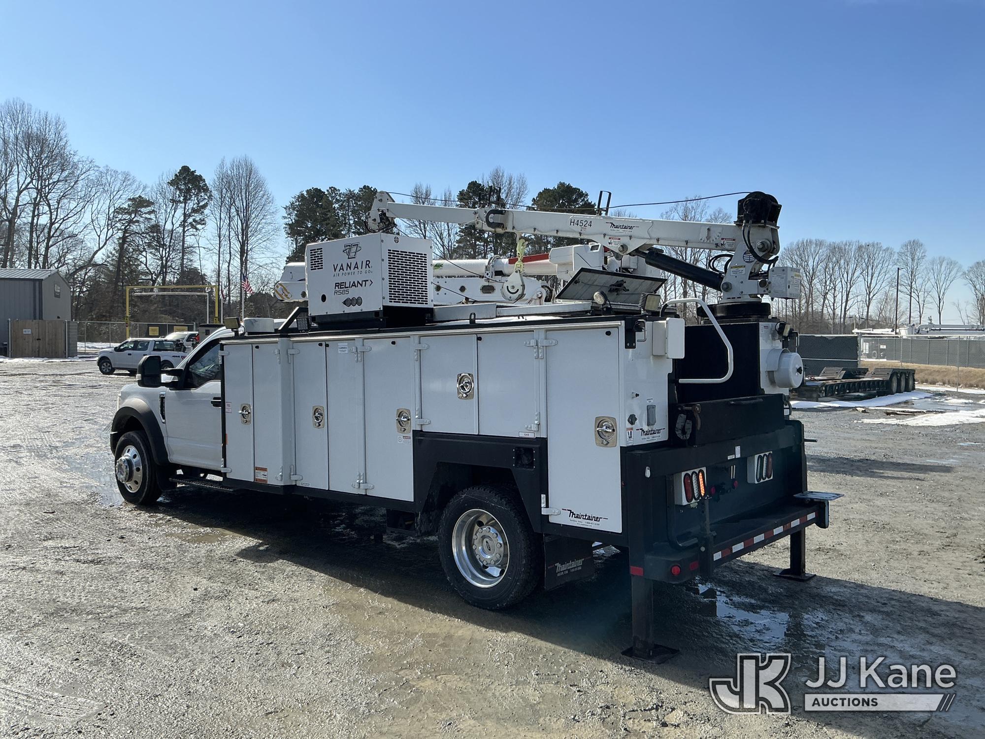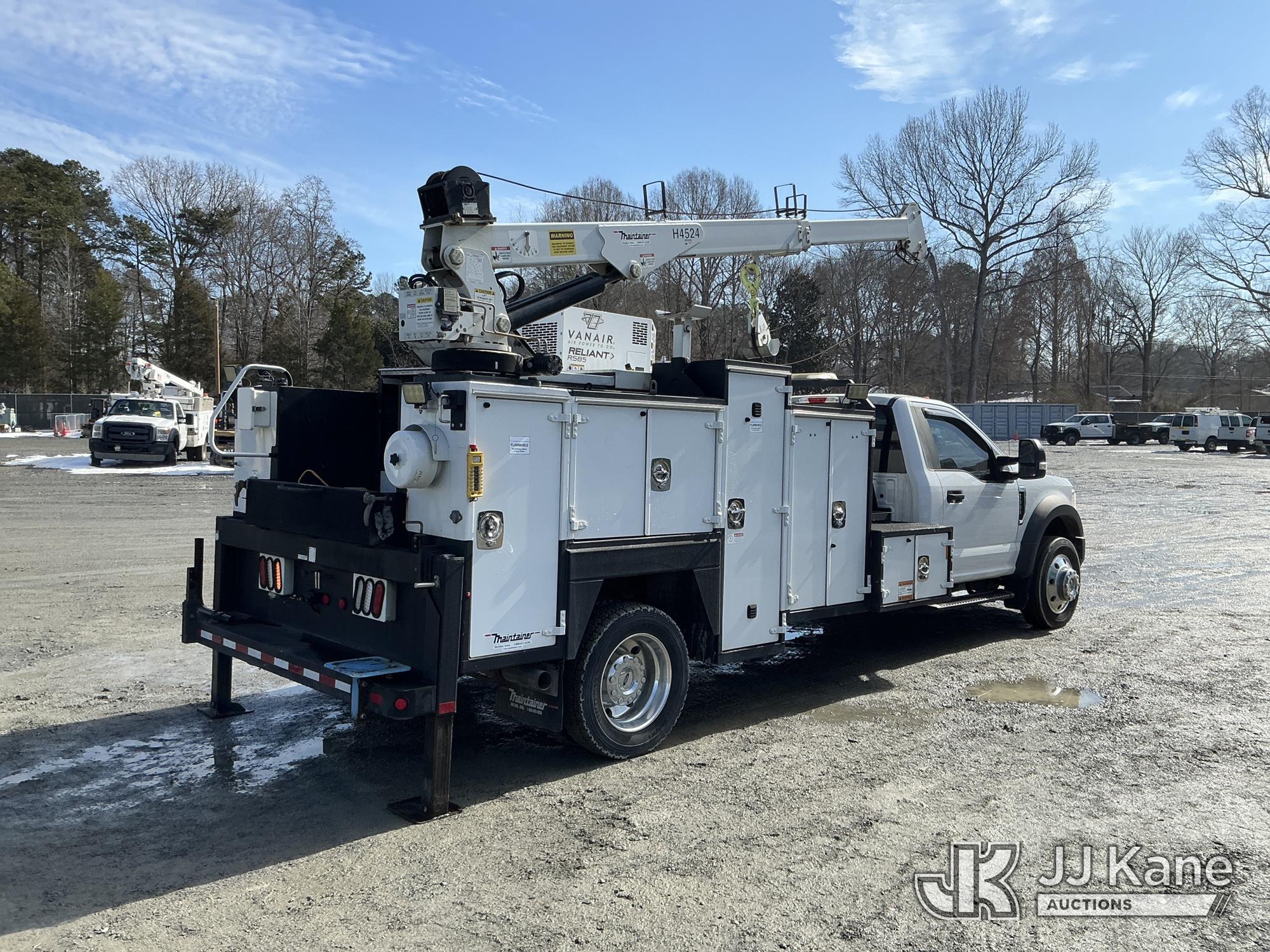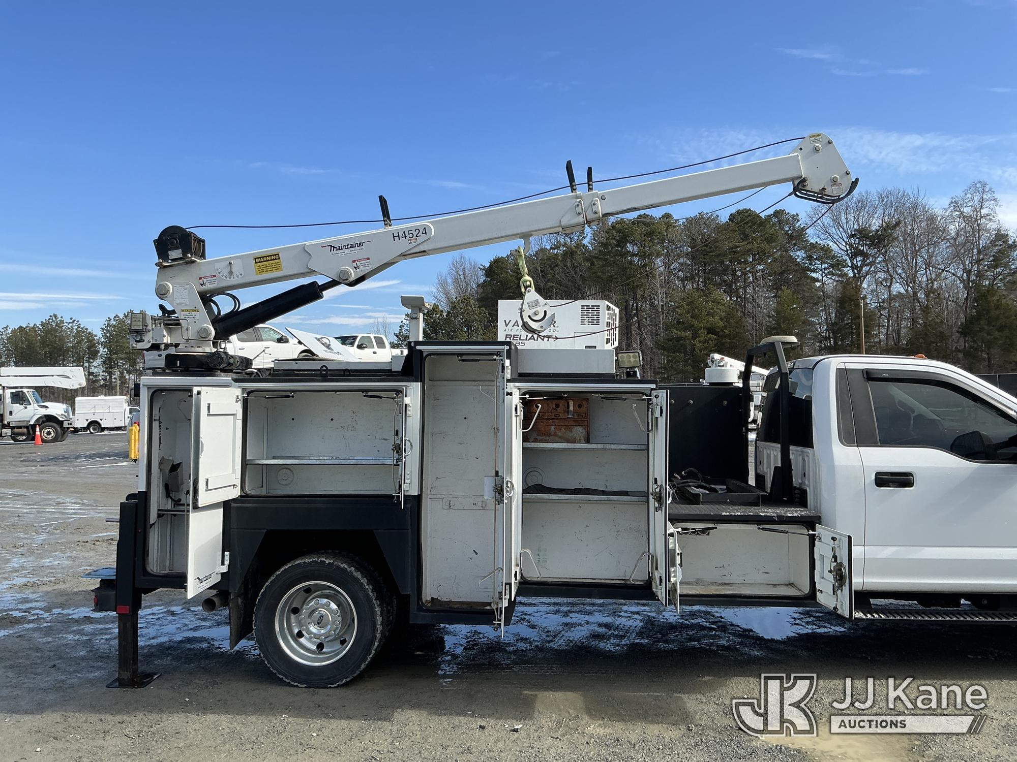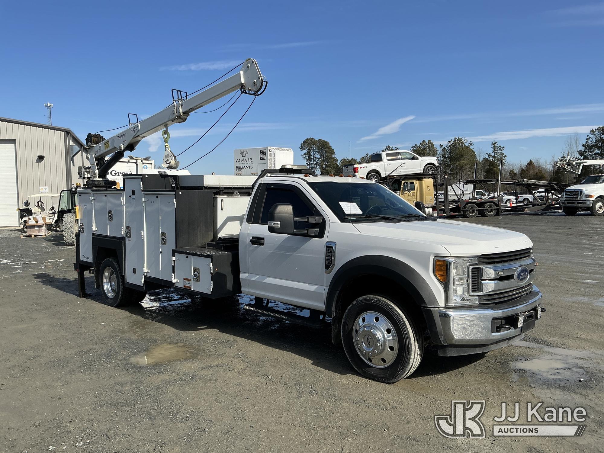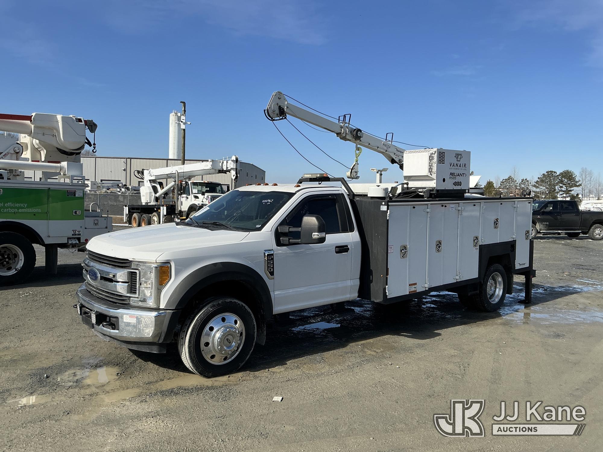 2017 Ford F550 Mechanics Truck, 10-cyl gas, Auto, A/C, with Maintainer H4524 material crane w/ remote, Vanair Reliant RS85 hyd air compressor w/ hose reel & roll top bed cover, (79,551 miles) (Runs & Moves) (Anti-Two Error, Winch Does Not Go Up, Crane Condition Unknown, Crane Moves Intermittently) This is a Titled Item*