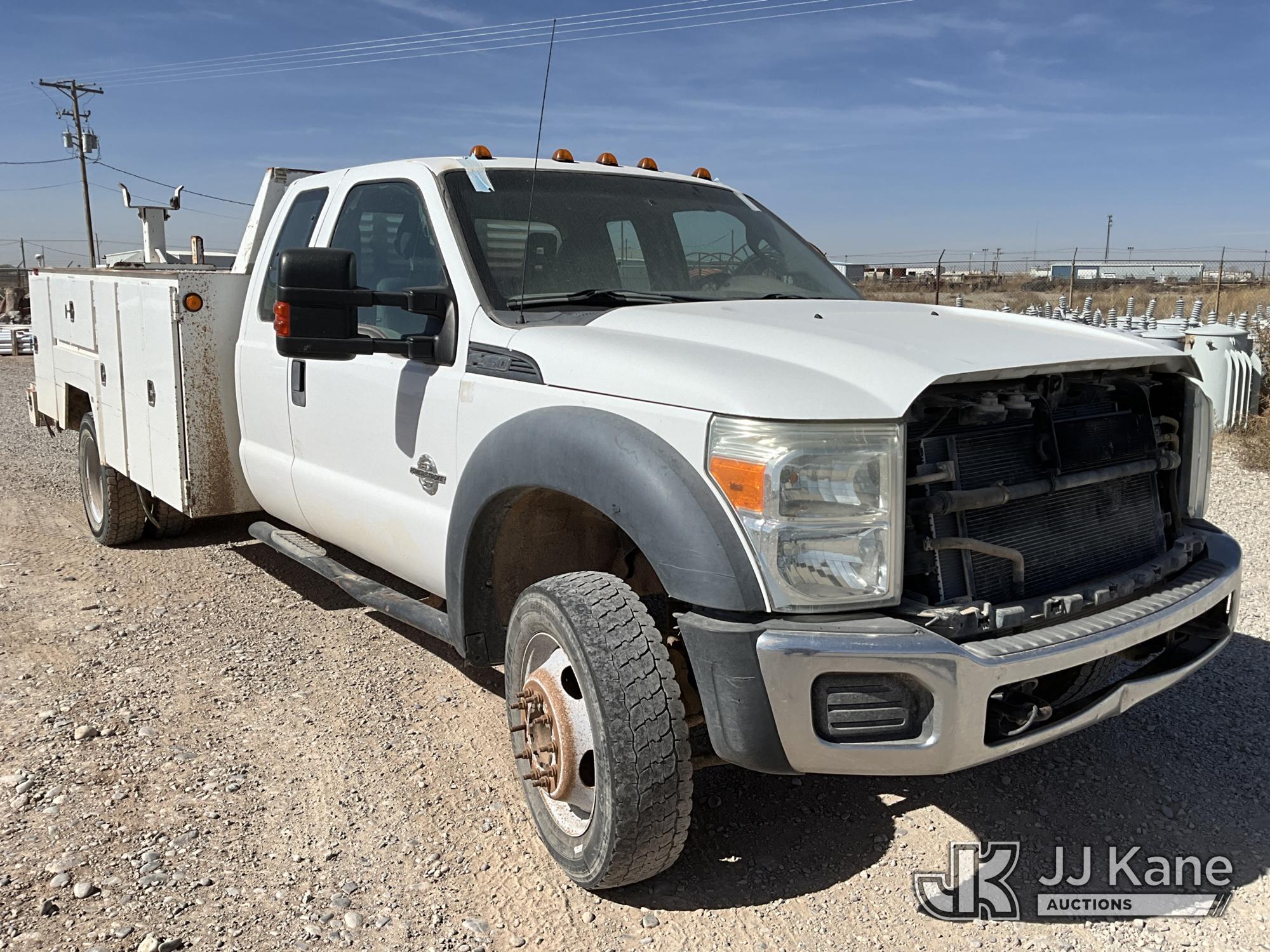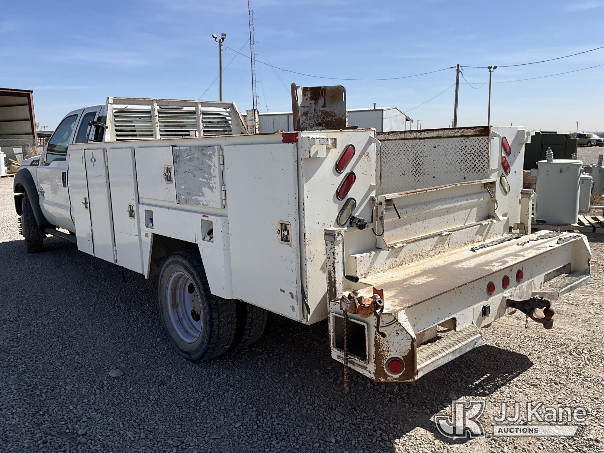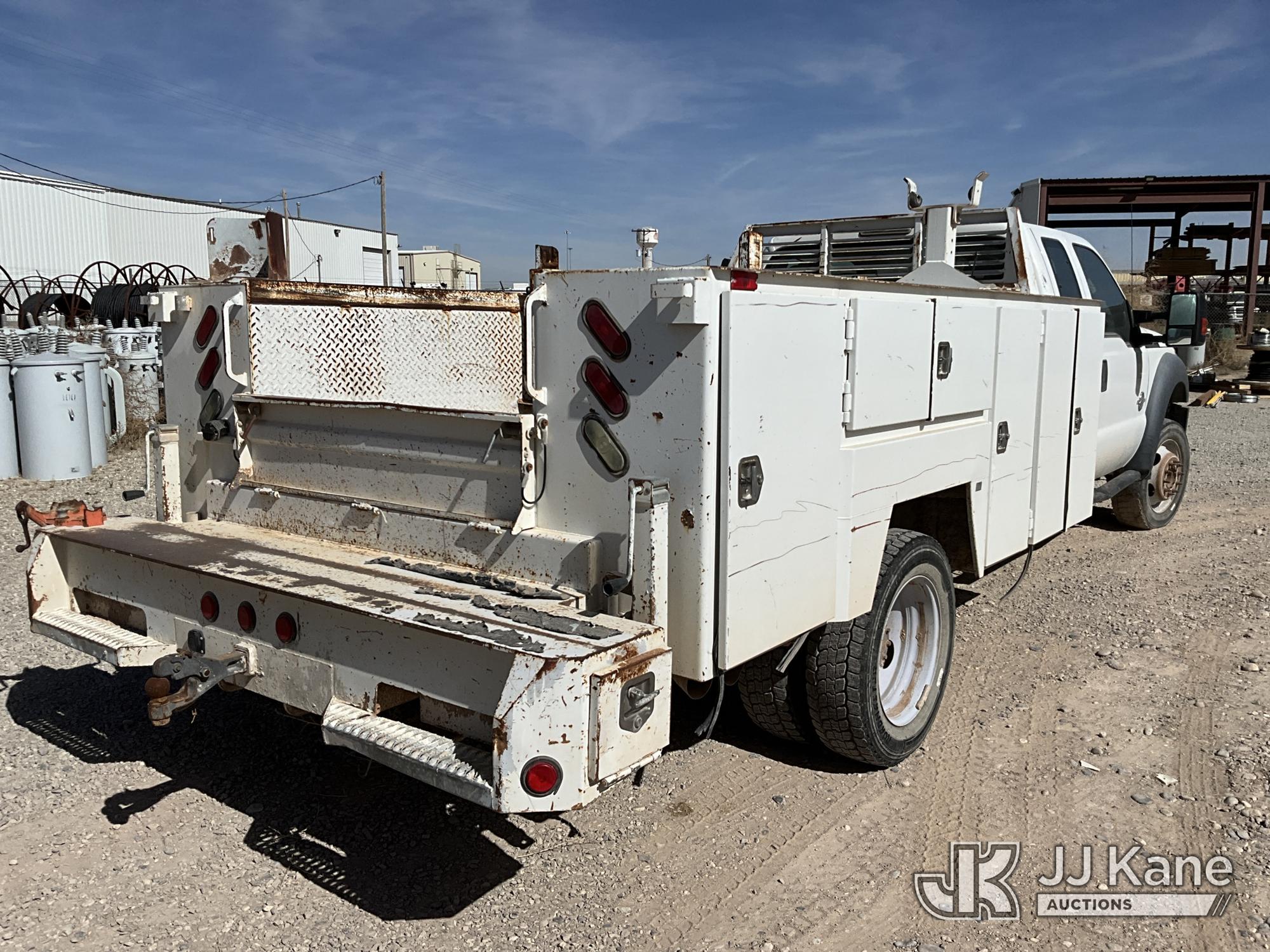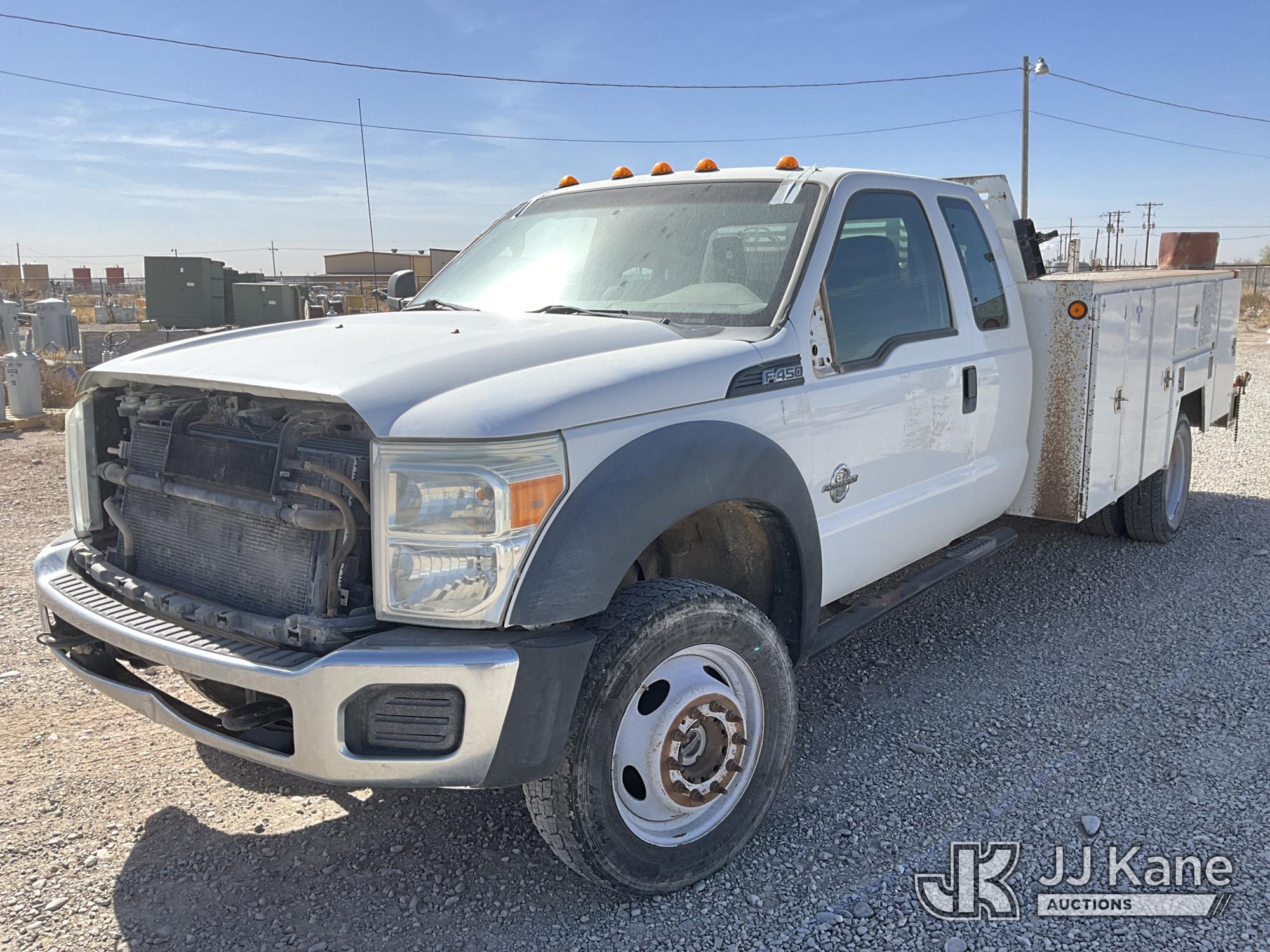 2015 Ford F450 4x4 Extended-Cab Service Truck, 6.7L V8 OHV 16V diesel, Auto, A/C, (299,672 miles) (Runs & Move) (Jump To Start, Driver Side Mirror Removed, Body/Paint Damage) (Seller States: Batteries Weak Needs Jumped, Transmission Needs Repair, Front End Needs Rebuilt) This is a Titled Item*