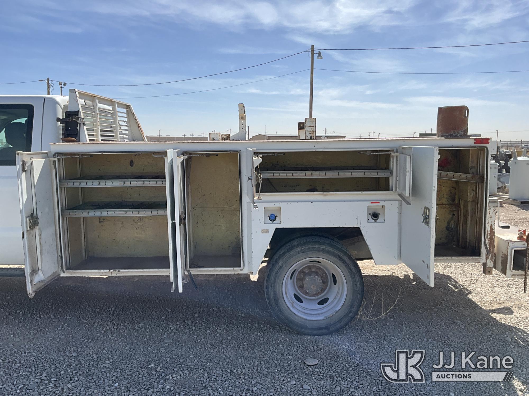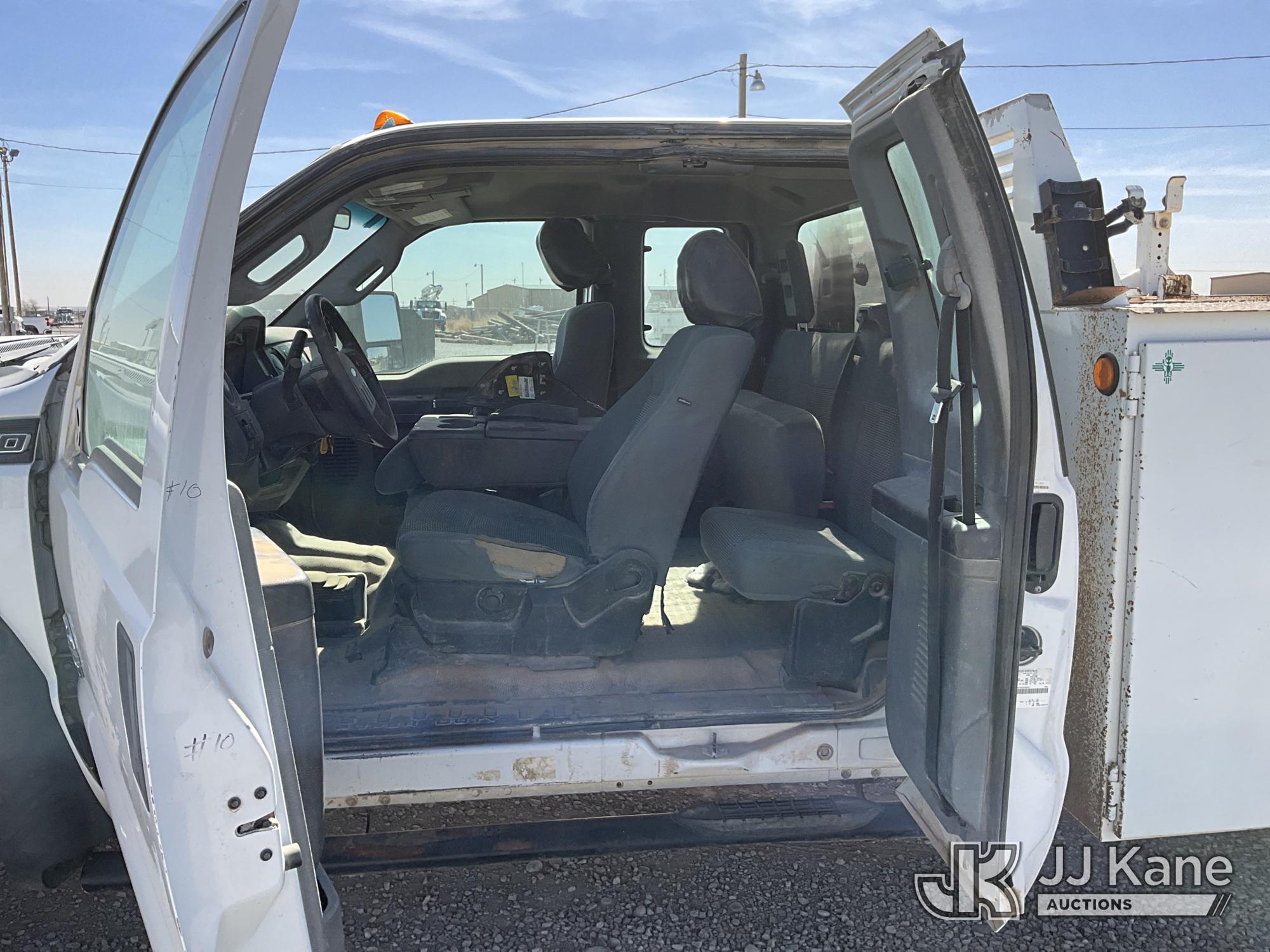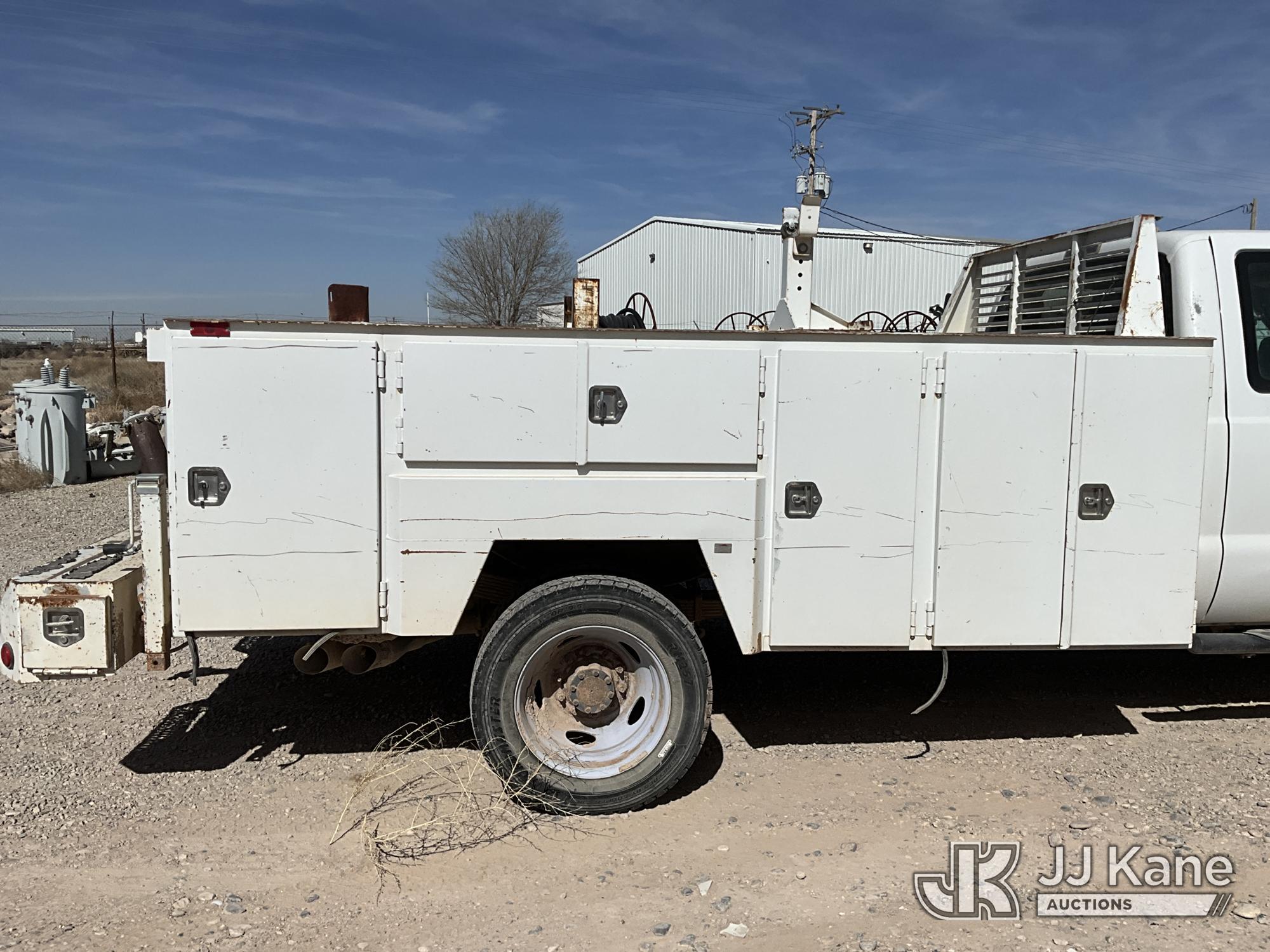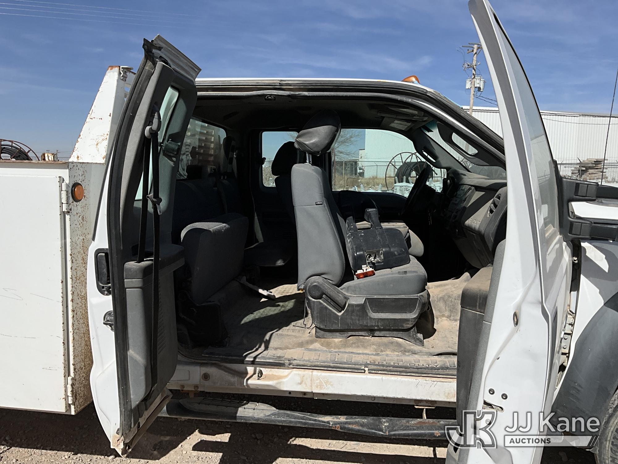 2015 Ford F450 4x4 Extended-Cab Service Truck, 6.7L V8 OHV 16V diesel, Auto, A/C, (299,672 miles) (Runs & Move) (Jump To Start, Driver Side Mirror Removed, Body/Paint Damage) (Seller States: Batteries Weak Needs Jumped, Transmission Needs Repair, Front End Needs Rebuilt) This is a Titled Item*