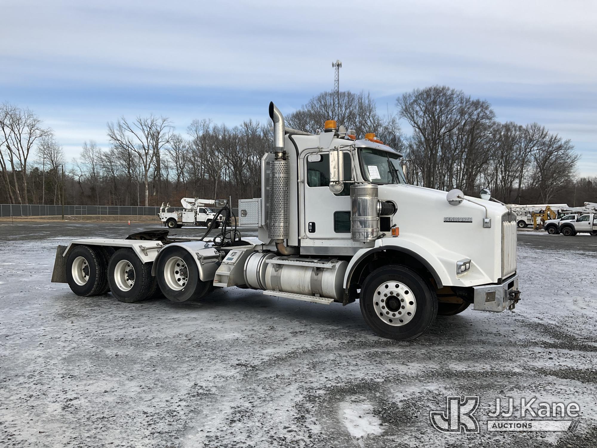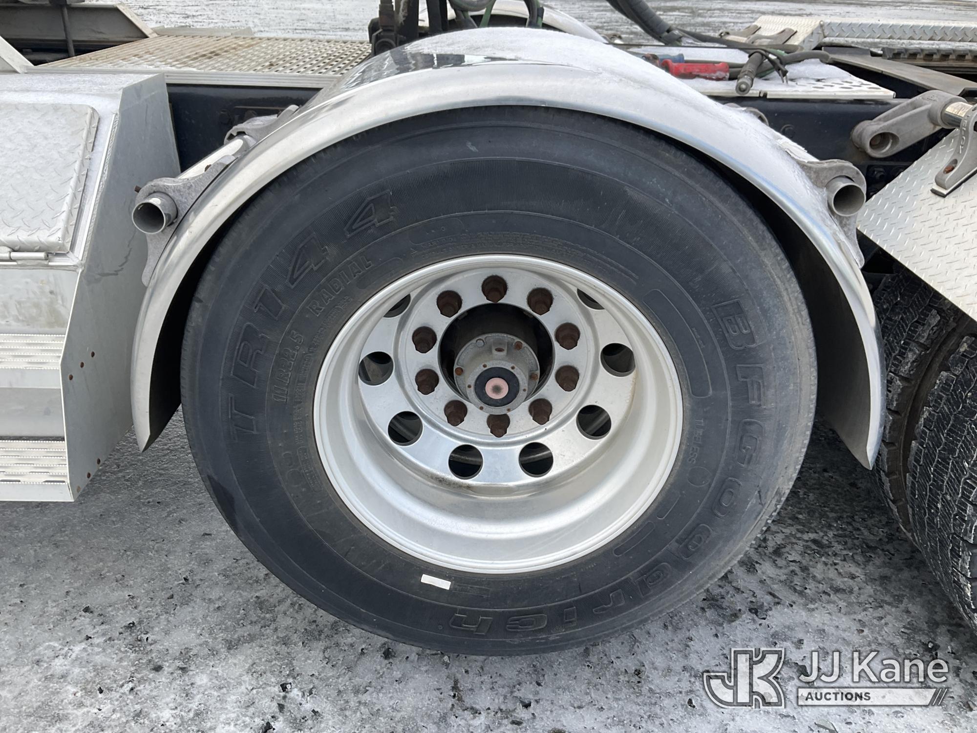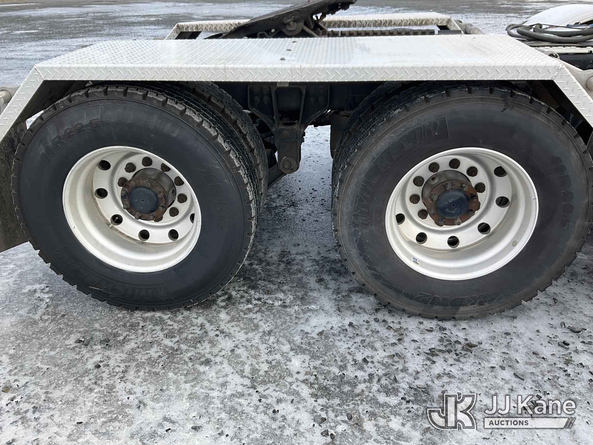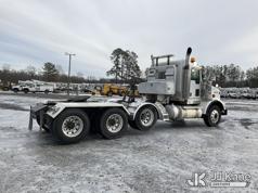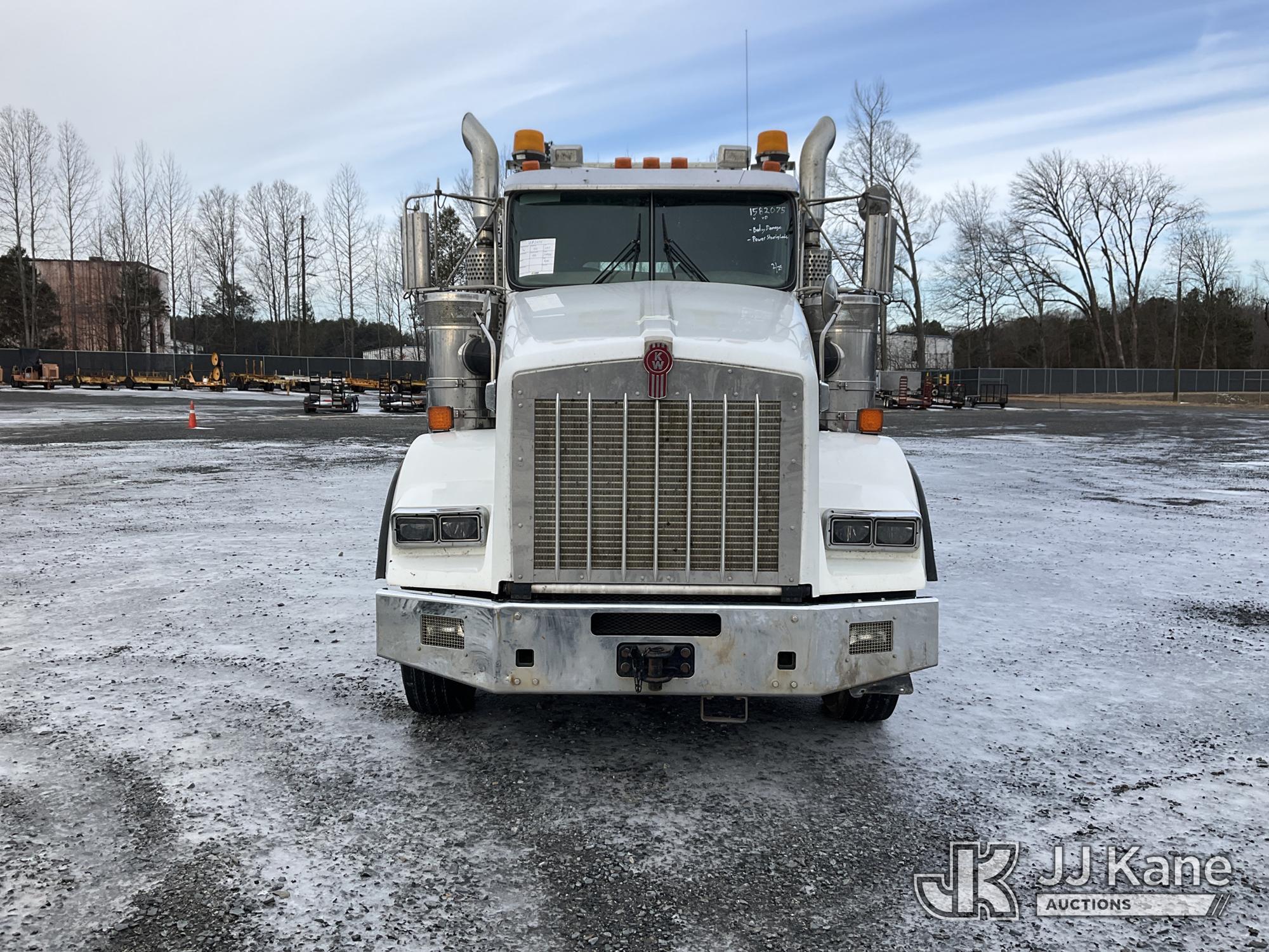 2017 Kenworth T/A Truck Tractor, Cat C15 diesel, 18 spd, A/C, with dbl frame, 46,000 lbs rear axles, air lift 3rd axle, air ride suspension, air slide 5th, wet kit & aluminum headache rack, (398,975 miles) (Runs & Moves) (Body Damage, Power Steering Leak) (Branded Title - Rebuilt Vehicle) This is a Titled Item*
