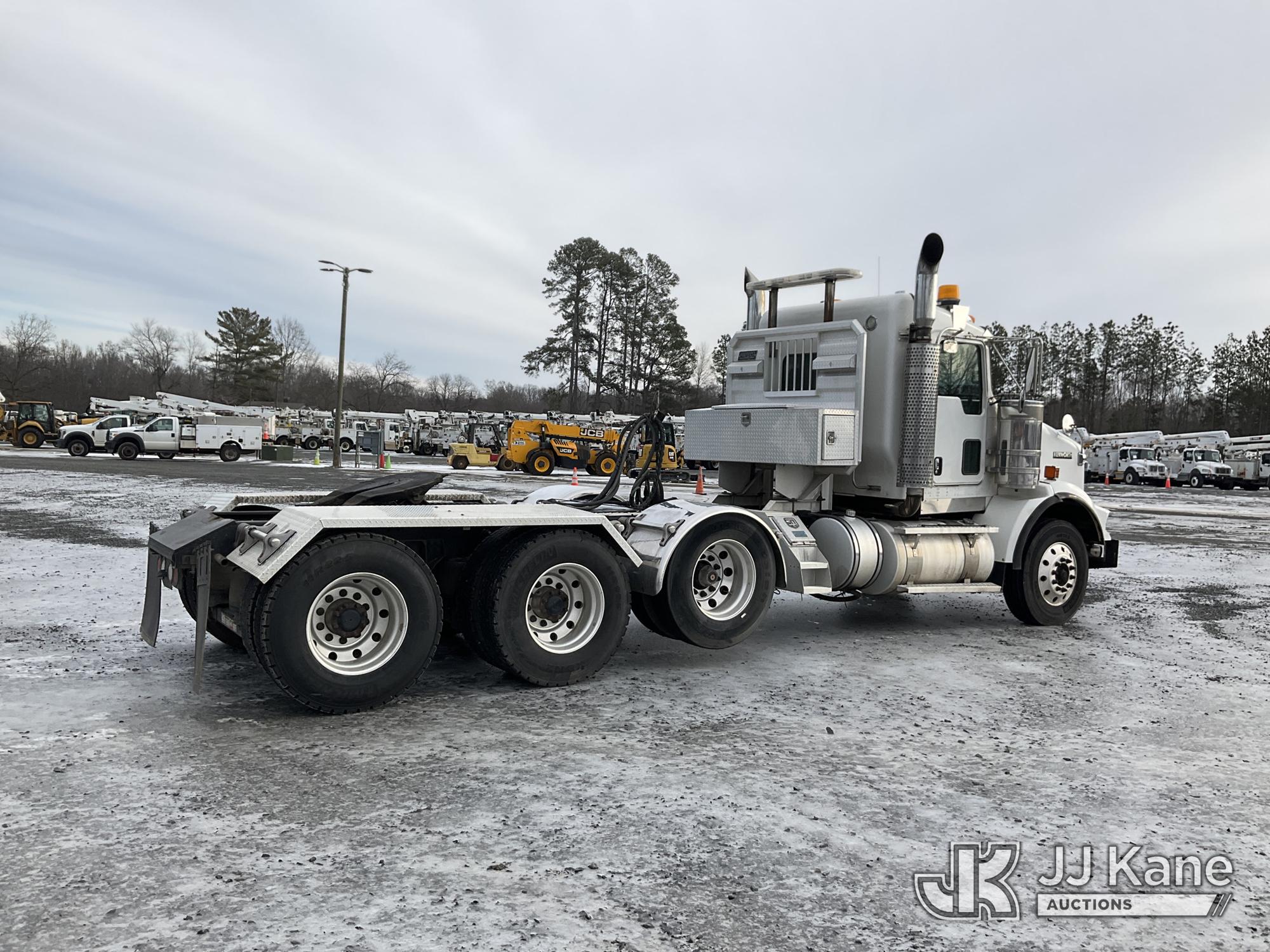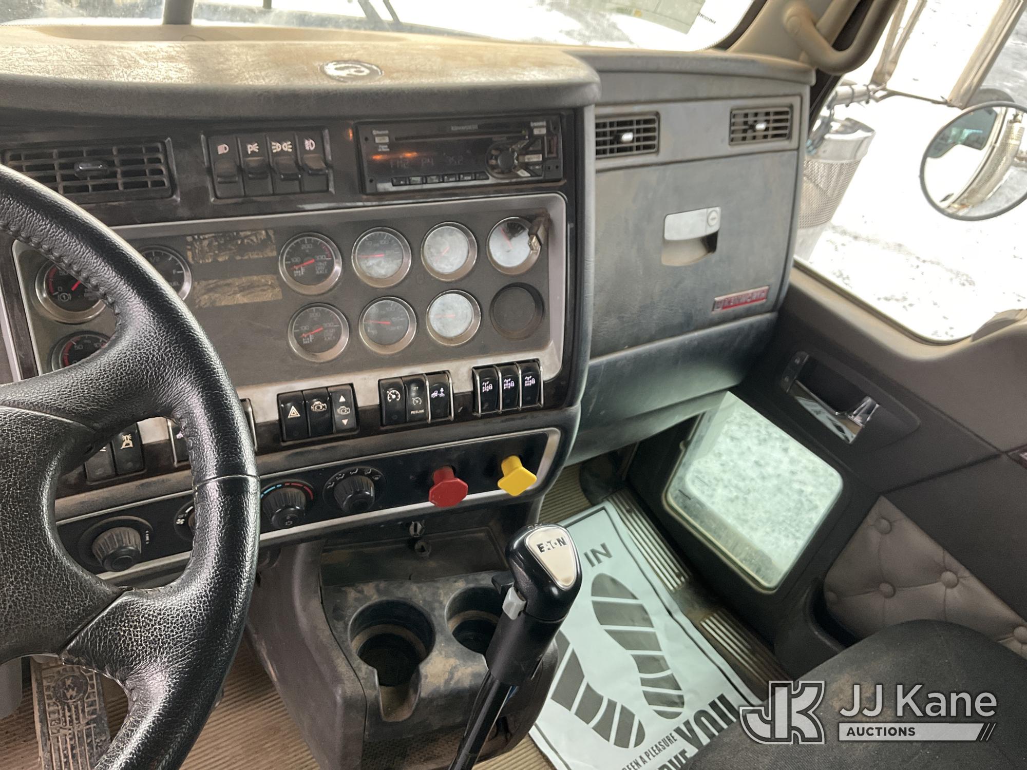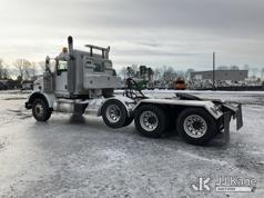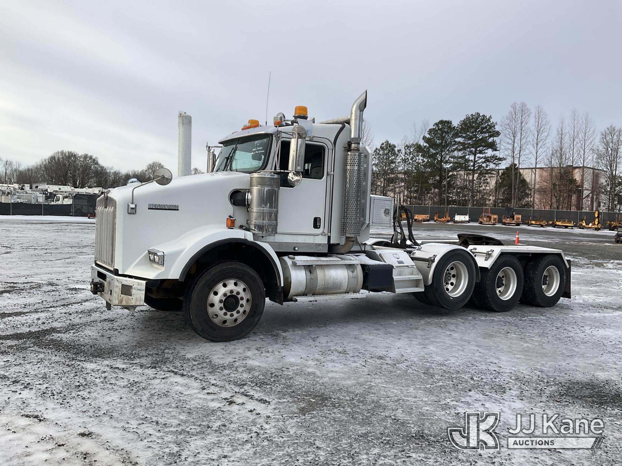 2017 Kenworth T/A Truck Tractor, Cat C15 diesel, 18 spd, A/C, with dbl frame, 46,000 lbs rear axles, air lift 3rd axle, air ride suspension, air slide 5th, wet kit & aluminum headache rack, (398,975 miles) (Runs & Moves) (Body Damage, Power Steering Leak) (Branded Title - Rebuilt Vehicle) This is a Titled Item*