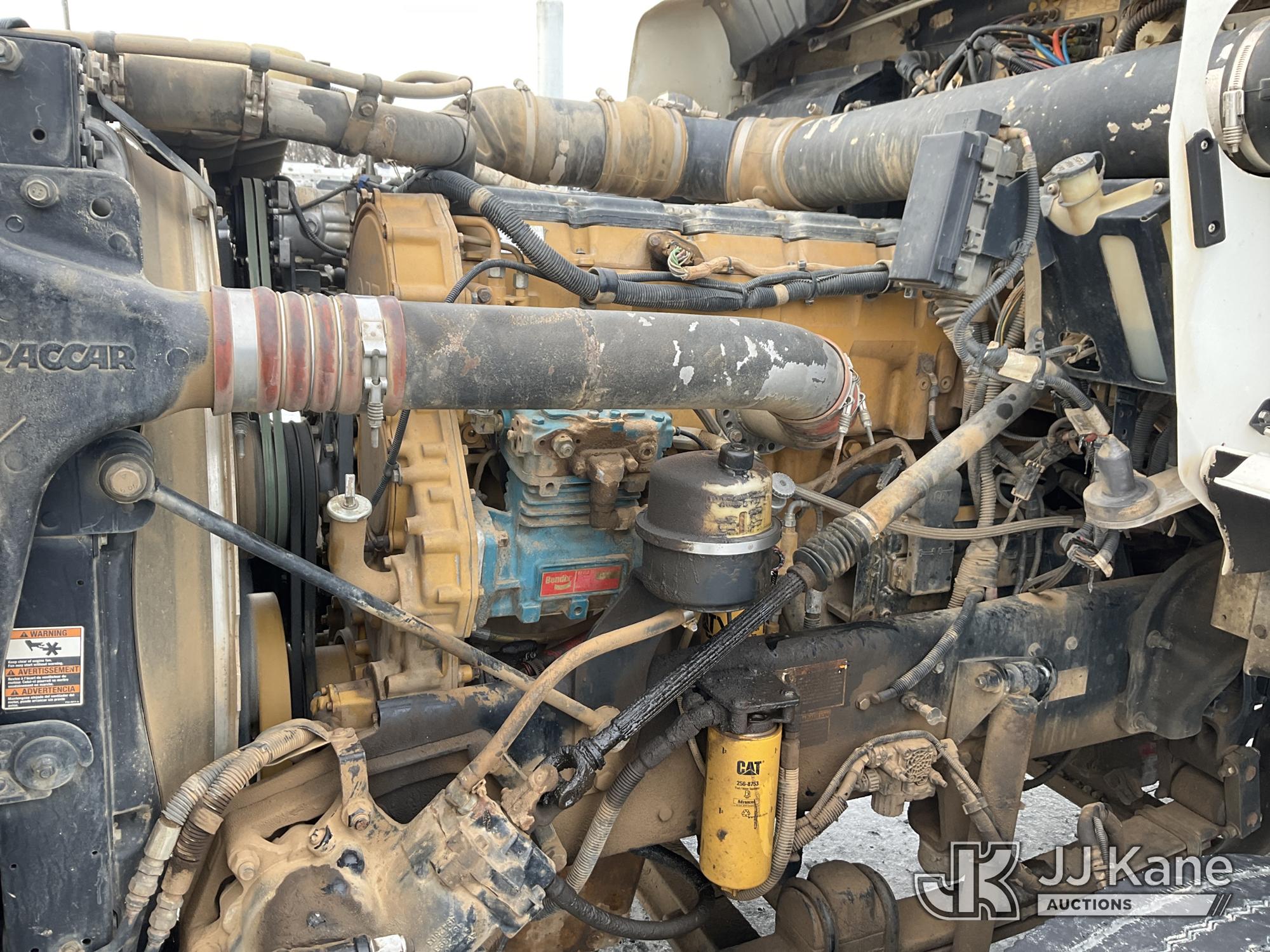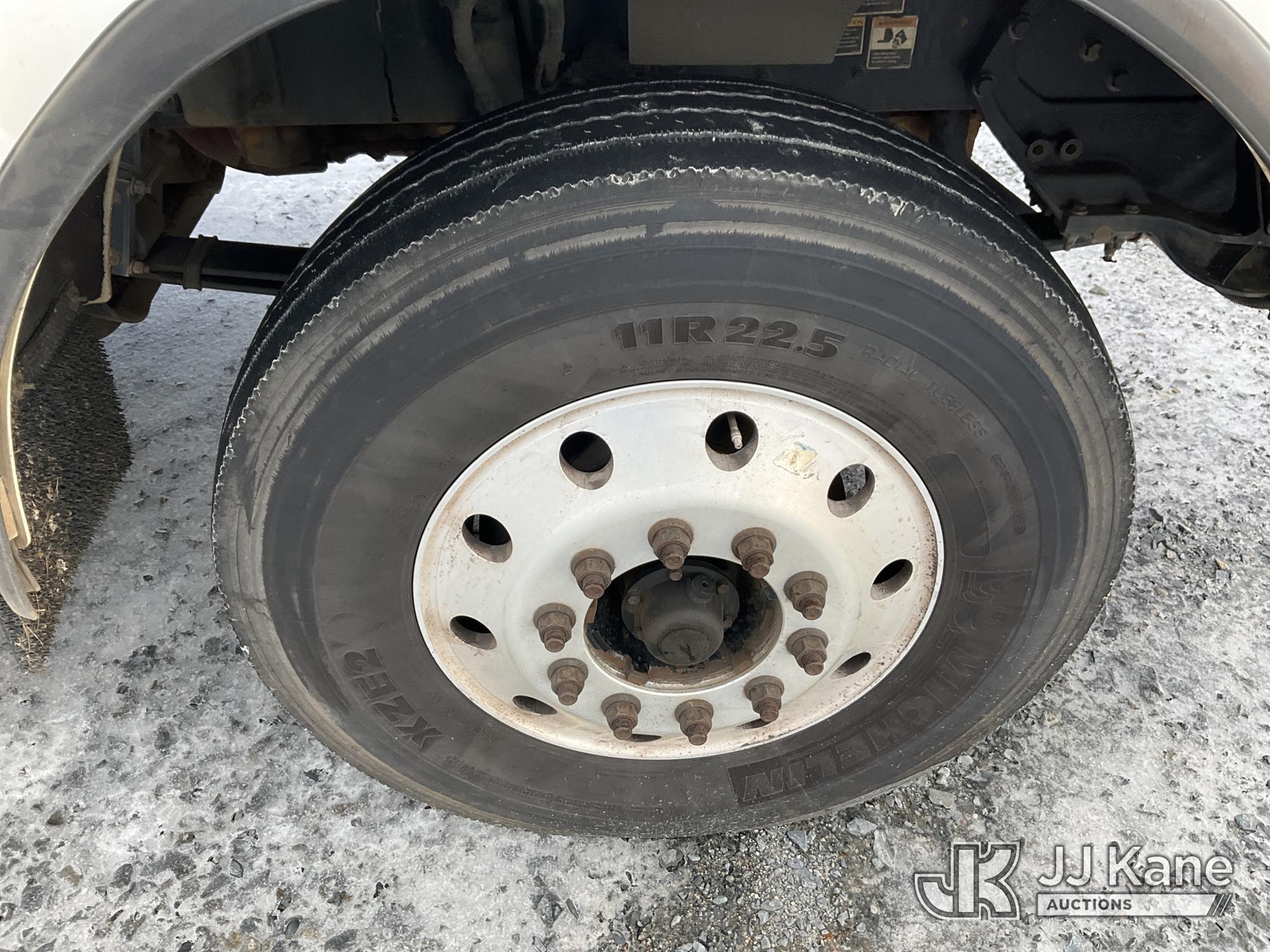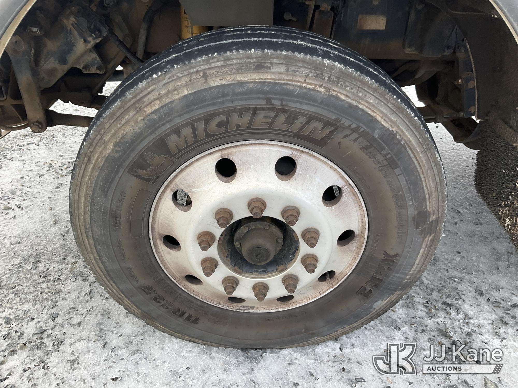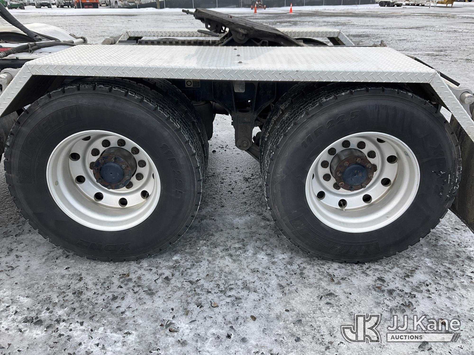 2017 Kenworth T/A Truck Tractor, Cat C15 diesel, 18 spd, A/C, with dbl frame, 46,000 lbs rear axles, air lift 3rd axle, air ride suspension, air slide 5th, wet kit & aluminum headache rack, (398,975 miles) (Runs & Moves) (Body Damage, Power Steering Leak) (Branded Title - Rebuilt Vehicle) This is a Titled Item*