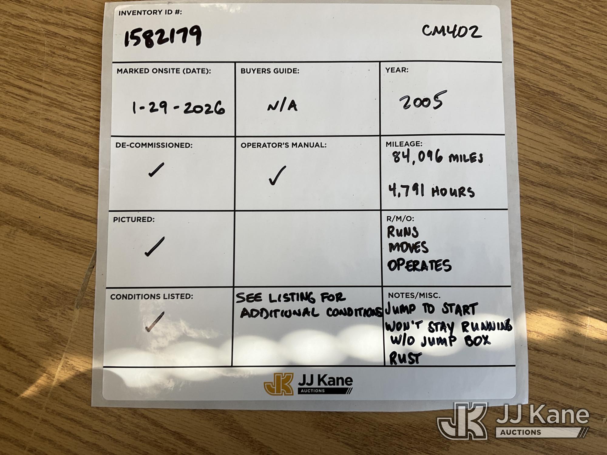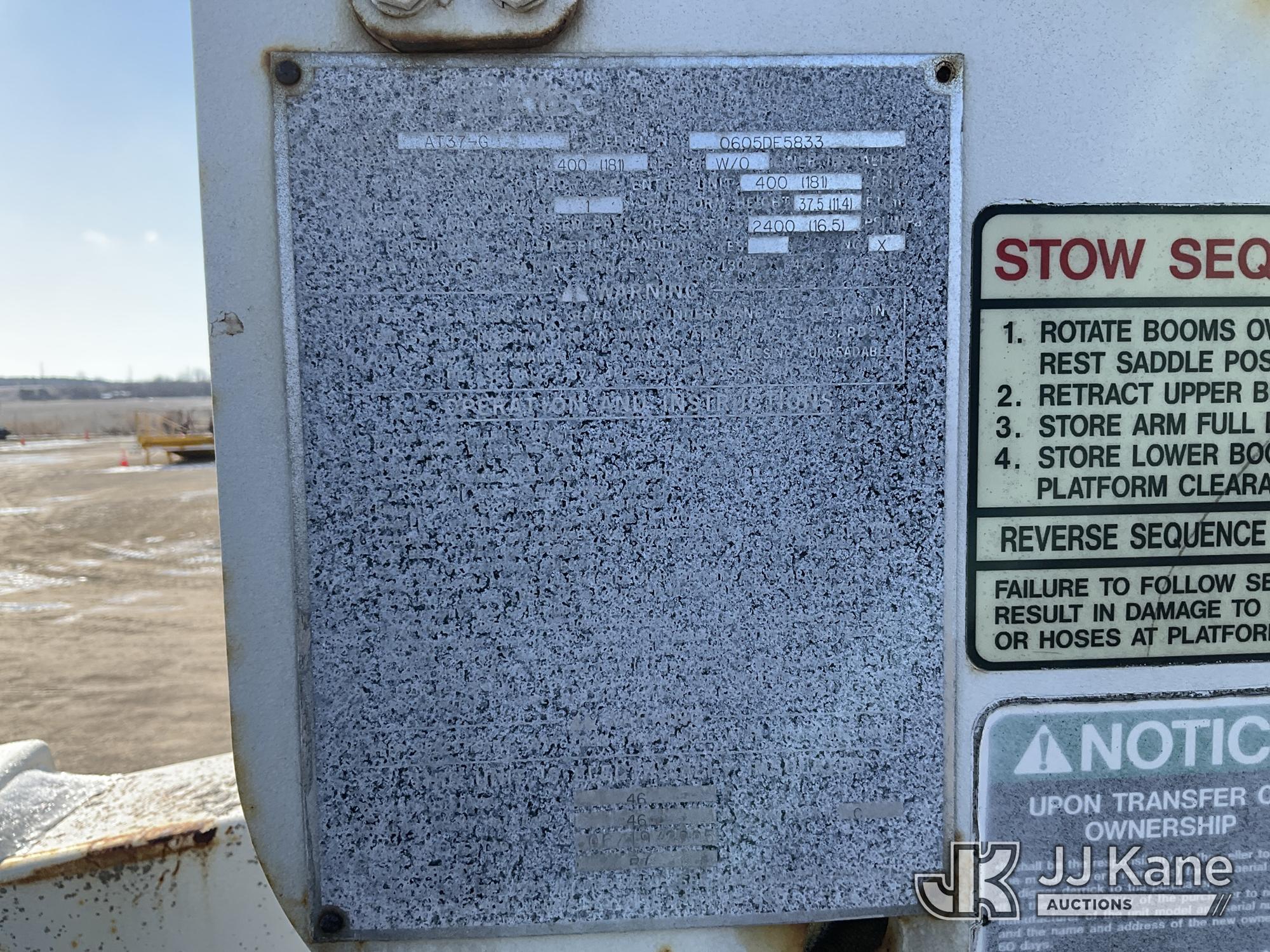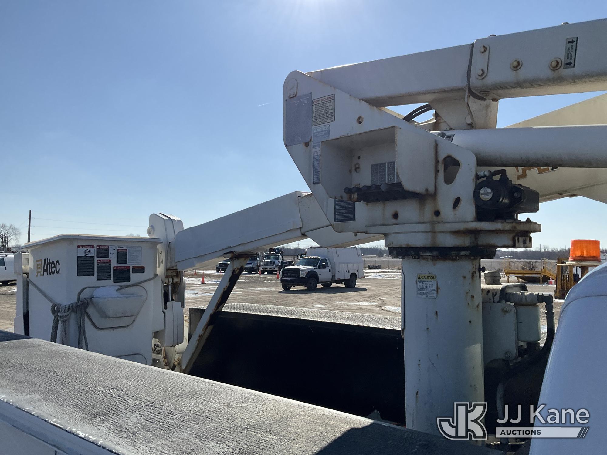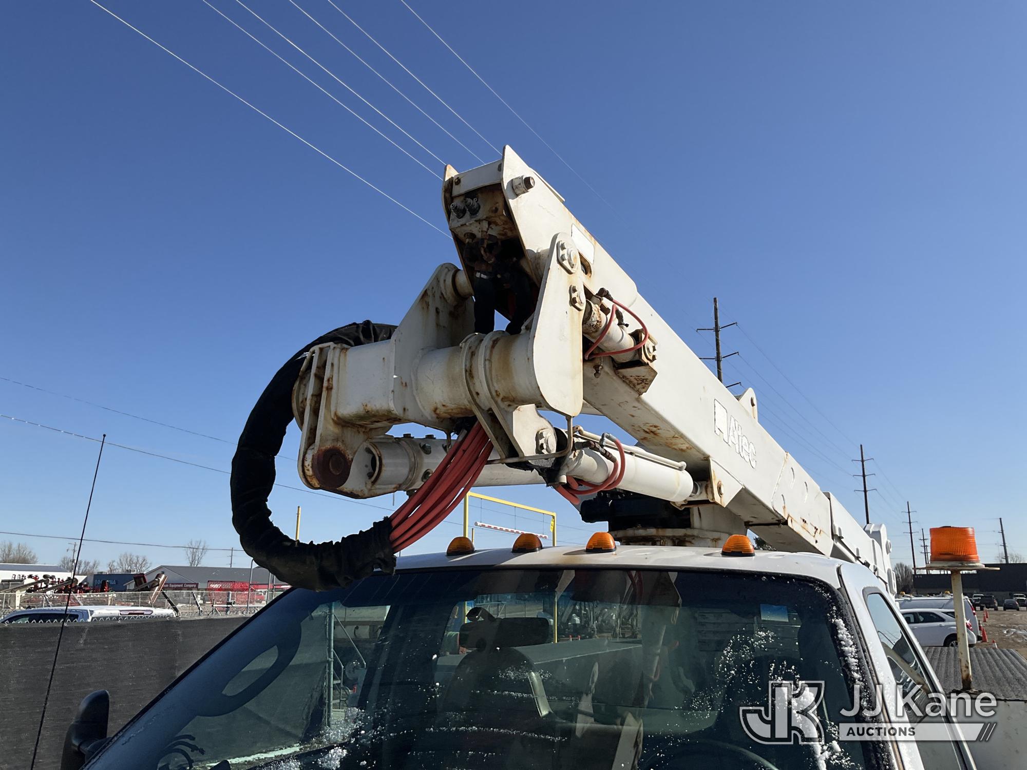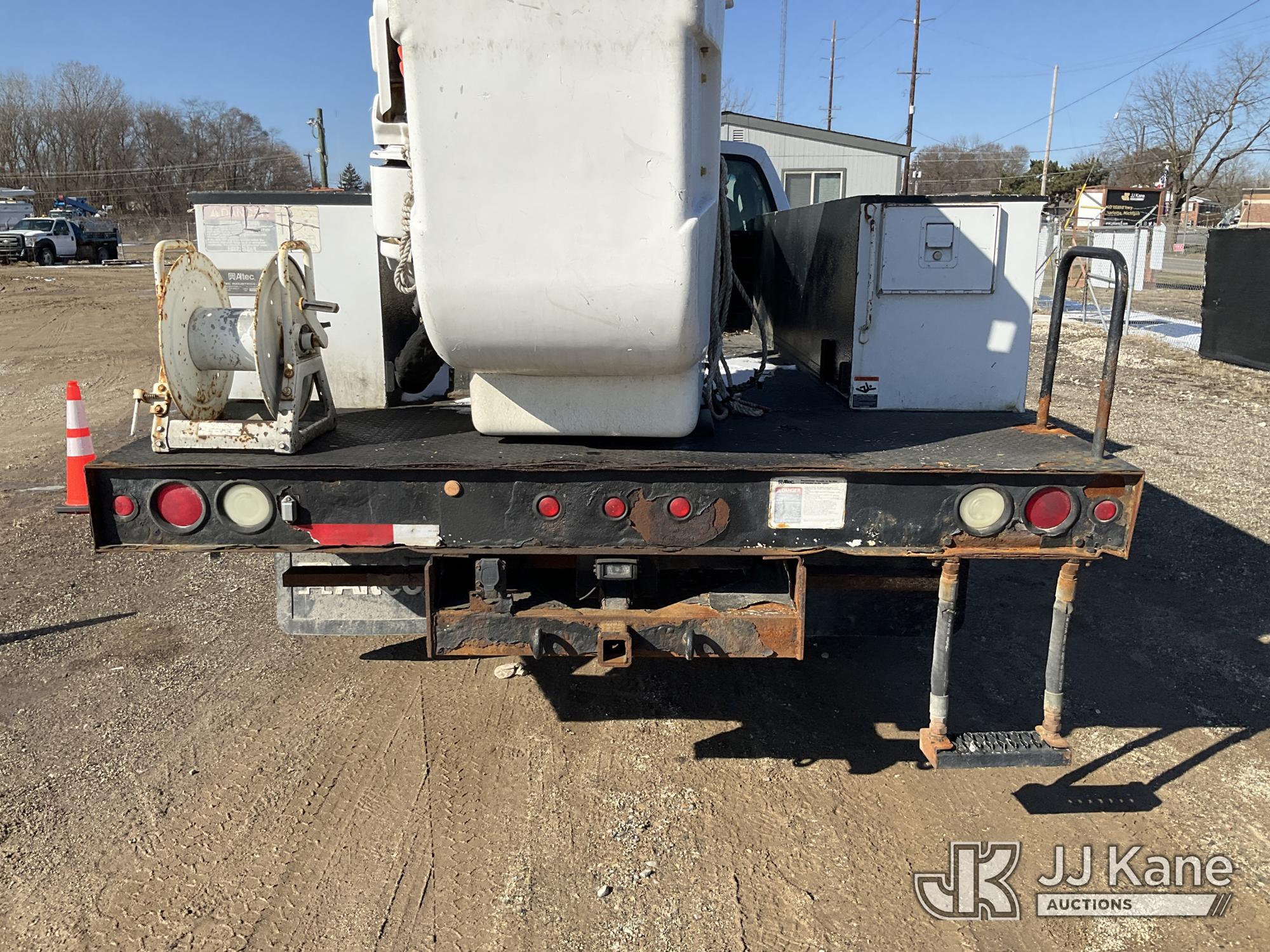 Altec AT37G, 42 ft, Articulating & Telescopic Bucket Truck s/n 0605DE5833, with single man bucket, mounted behind cab on 2005 Ford F550 4x4 Service Truck, 6.0L V8 OHV 32V TURBO DIESEL Auto, A/C, (Exempt from Odometer Disclosure - Reads 84,096 miles (unverified)) (Runs, Moves & Operates) (Jump to Start, Won’t Stay Running Without Jump Box, Rust) (The manufacturer has notified JJ Kane that this equipment is subject to an open recall. CSN 520 Counterweight Inspection CSN 535 Articulating Arm Fiberglass Link Inspection for AT3XG CSN-ATC-202 Interlock Handle Replacement The equipment should not be operated until this is addressed. Buyer is responsible for reviewing the recall notice and contacting the manufacturer to schedule the recommended corrective actions. Associated costs may be covered by the manufacturer in some cases.) (Reads 4,791 hours) This is a Titled Item*