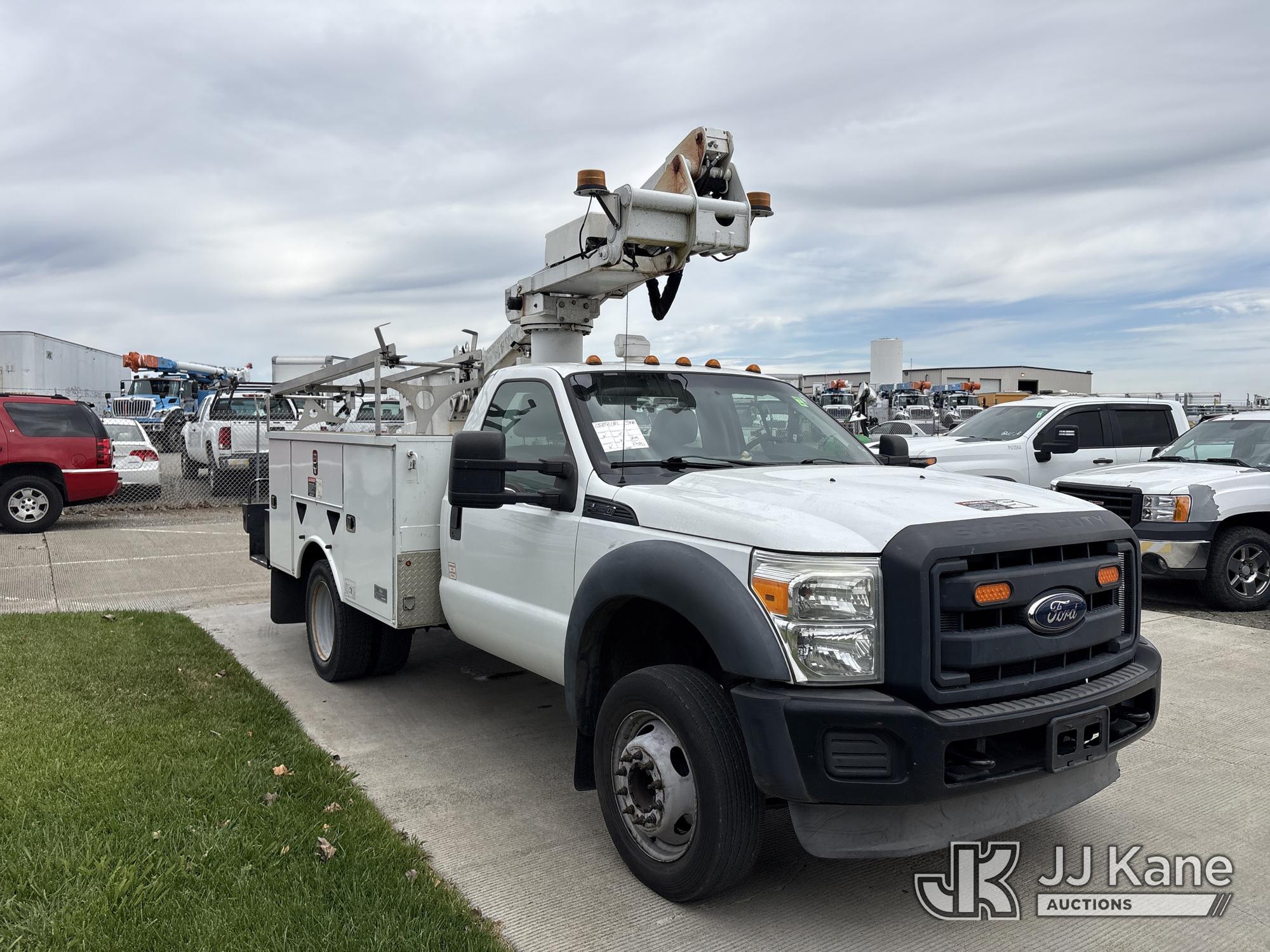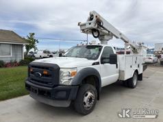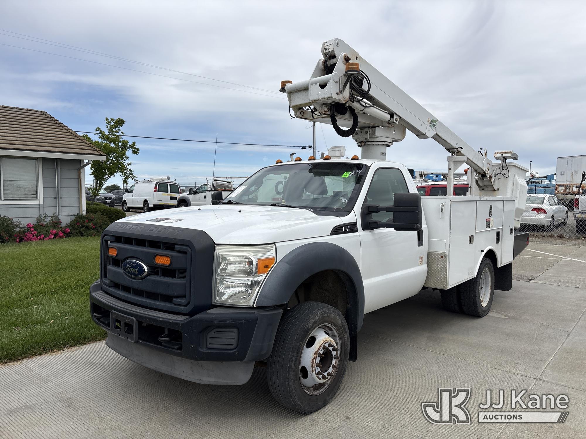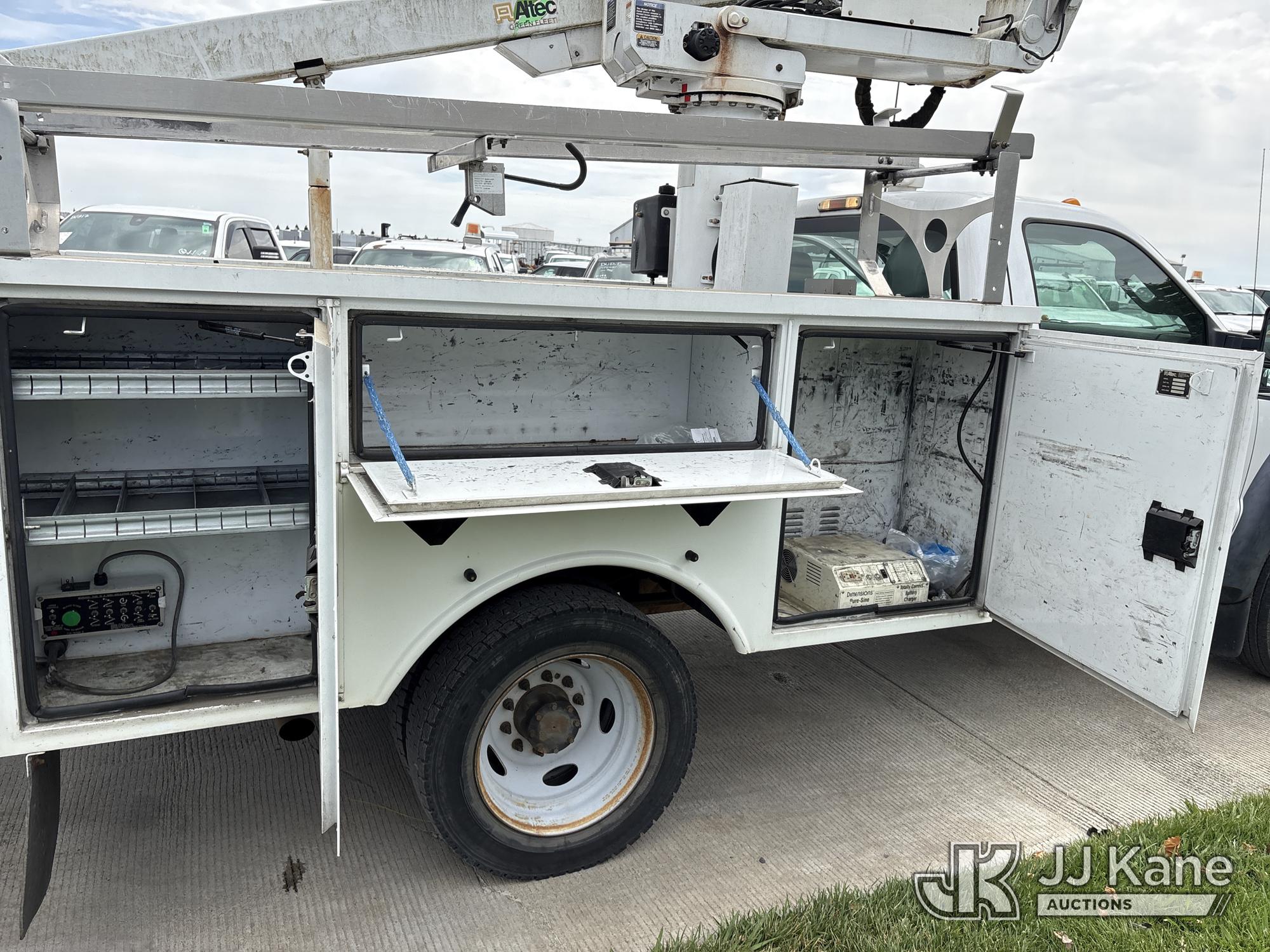 Altec AT235, 40 ft, Articulating & Telescopic Bucket Truck s/n 0912BX5500, with single-man bucket, mounted behind cab on 2012 Ford F-450 SD Regular Cab DRW 2WD Service Truck, s/n 1FDUF4GY8CED10533, 6.8L V10 SOHC 30V RWD, Gas, Auto, A/C, (140,324 miles) (Runs & Moves, Does Not Operate, Immediately Shuts Off When PTO Is Engaged, Passenger Side Windshield Damaged) (Reads 7,231 hours) This is a Titled Item*