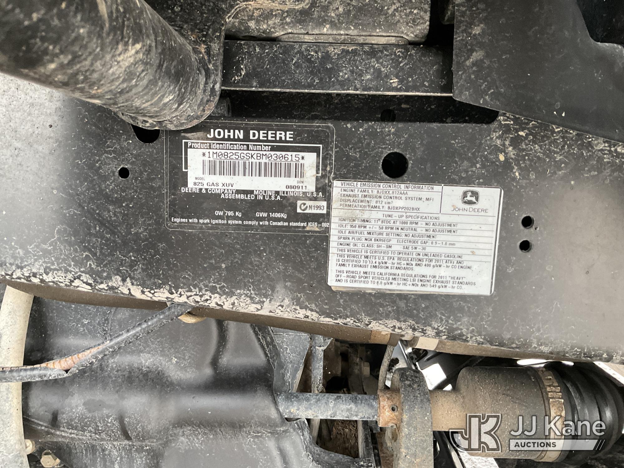 2012 John Deere Gator XUV 825i 4x4 ATV, UTV, Side-by-Side, s/n 1M0825GSKBM030615, gas Auto, with Power dump bed, (3,721 miles) (No Title) (Jump to Start, Runs & Moves, Liftgate Operates) (Reads 336 hours)*