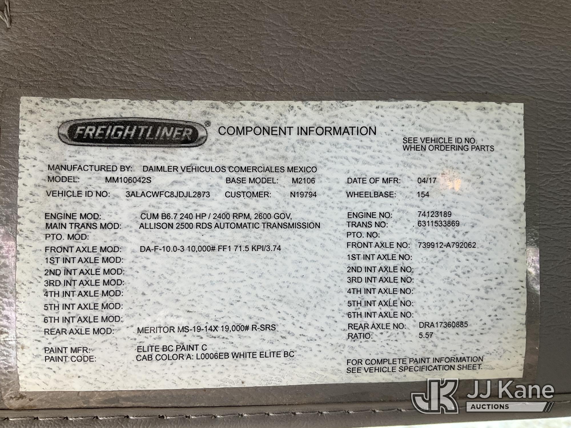 Altec TA40, 46 ft, Articulating & Telescopic Bucket Truck s/n 0717CC3265, with single-man bucket, mounted behind cab on 2018 Freightliner M2 106 Utility Truck, Cummins 6.7L diesel, Auto, A/C, (200,951 miles) (Runs, Moves & Upper Operates) (Reads 14,018 hours) This is a Titled Item*