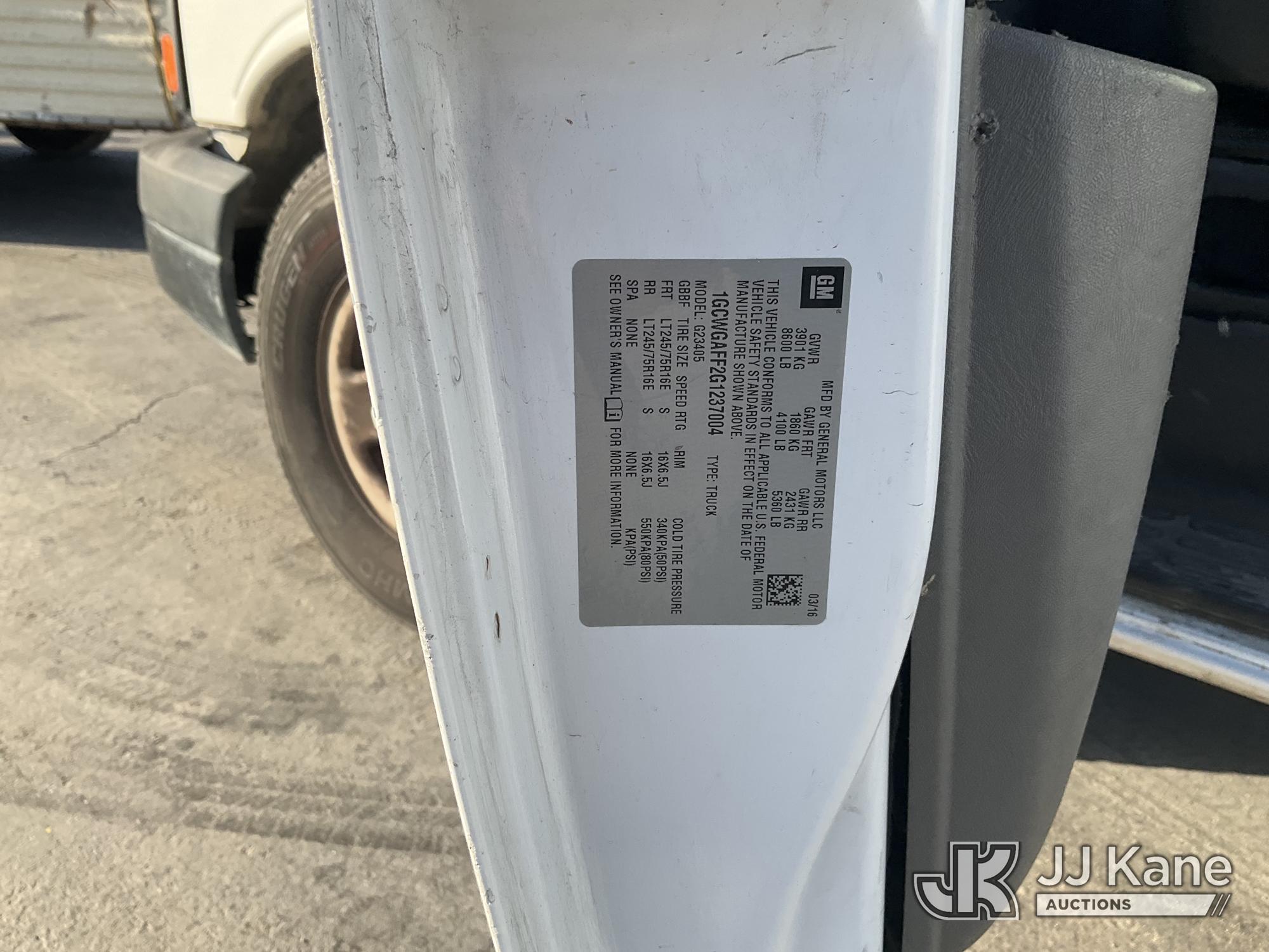 2016 Chevrolet Express 2500 Cargo Van, s/n 1GCWGAFF2G1237004, 4.8L V8 FFV RWD, Gas, 6-Speed Automatic, A/C, (156,802 miles) (Runs & Moves (Minor Dent On Right Rear Door)) This is a Titled Item*