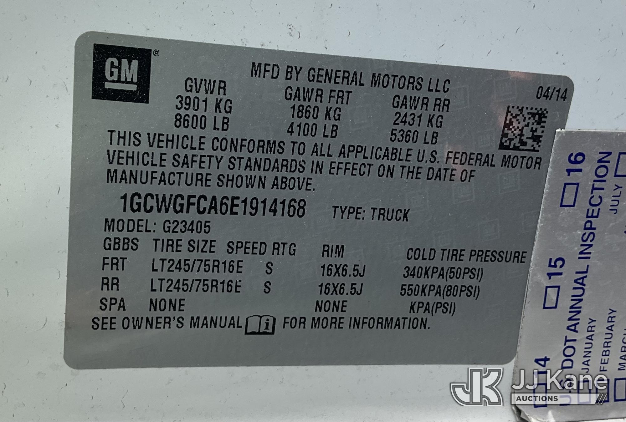 2014 Chevrolet Express 2500 Cargo Van, s/n 1GCWGFCA6E1914168, 4.8L V8 OHV 16V Gas, RWD, 6-Speed Automatic, A/C, with tow package, (163,276 miles) (Runs & Moves, Not Clearing Drive Cycle) (Bidding Restricted to Licensed Vehicle Dealers Only), This is a Titled Item*