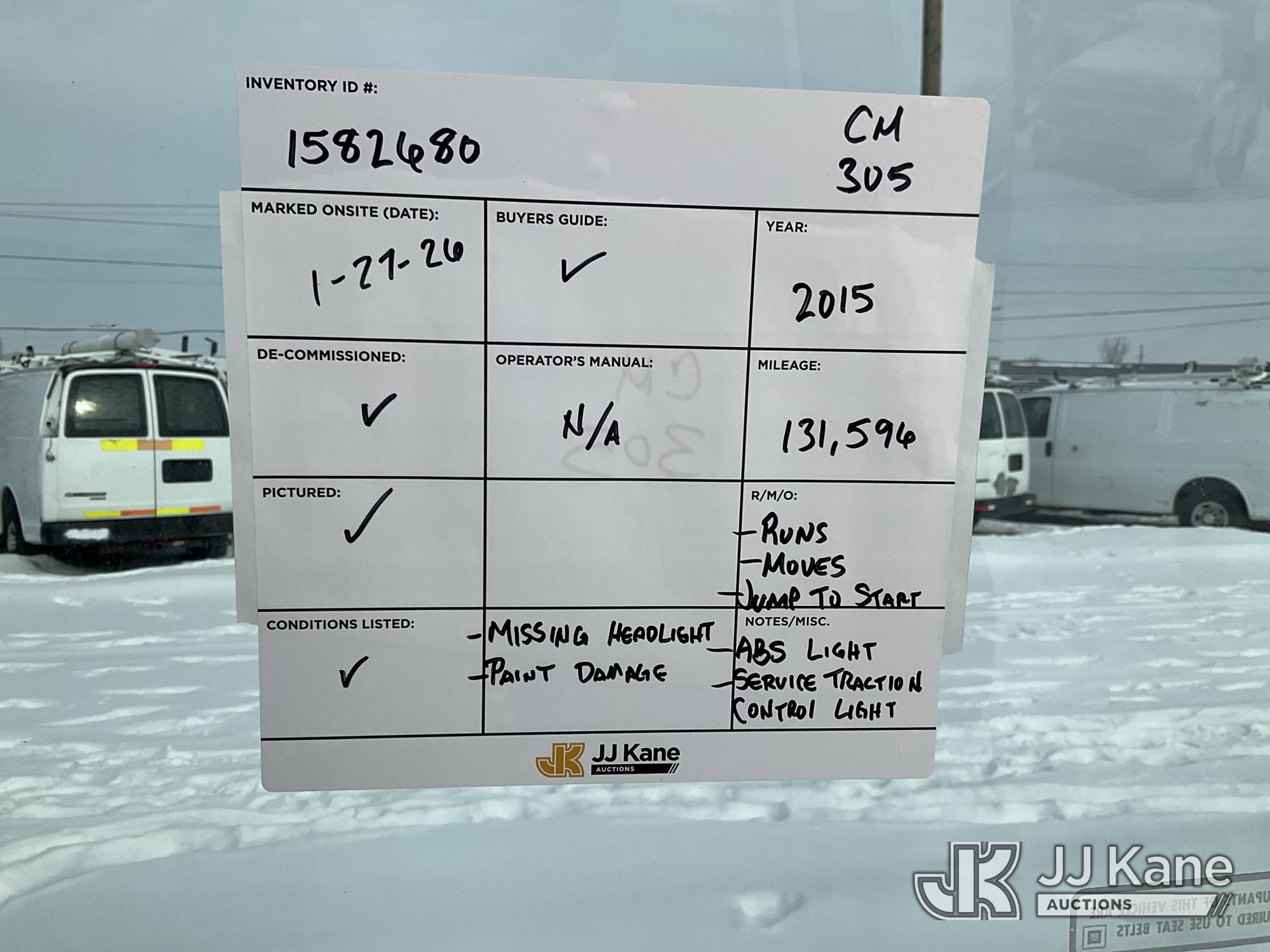 2015 Chevrolet Express 2500 Cargo Van, 4.8L V8 FFV RWD, 6-Speed Automatic, A/C, (131,596 miles) (Runs, Moves) (Jump To Start, Paint Damage, Service Traction Control Light, ABS Light, Missing Headlight) (Reads 5,560 hours) This is a Titled Item*