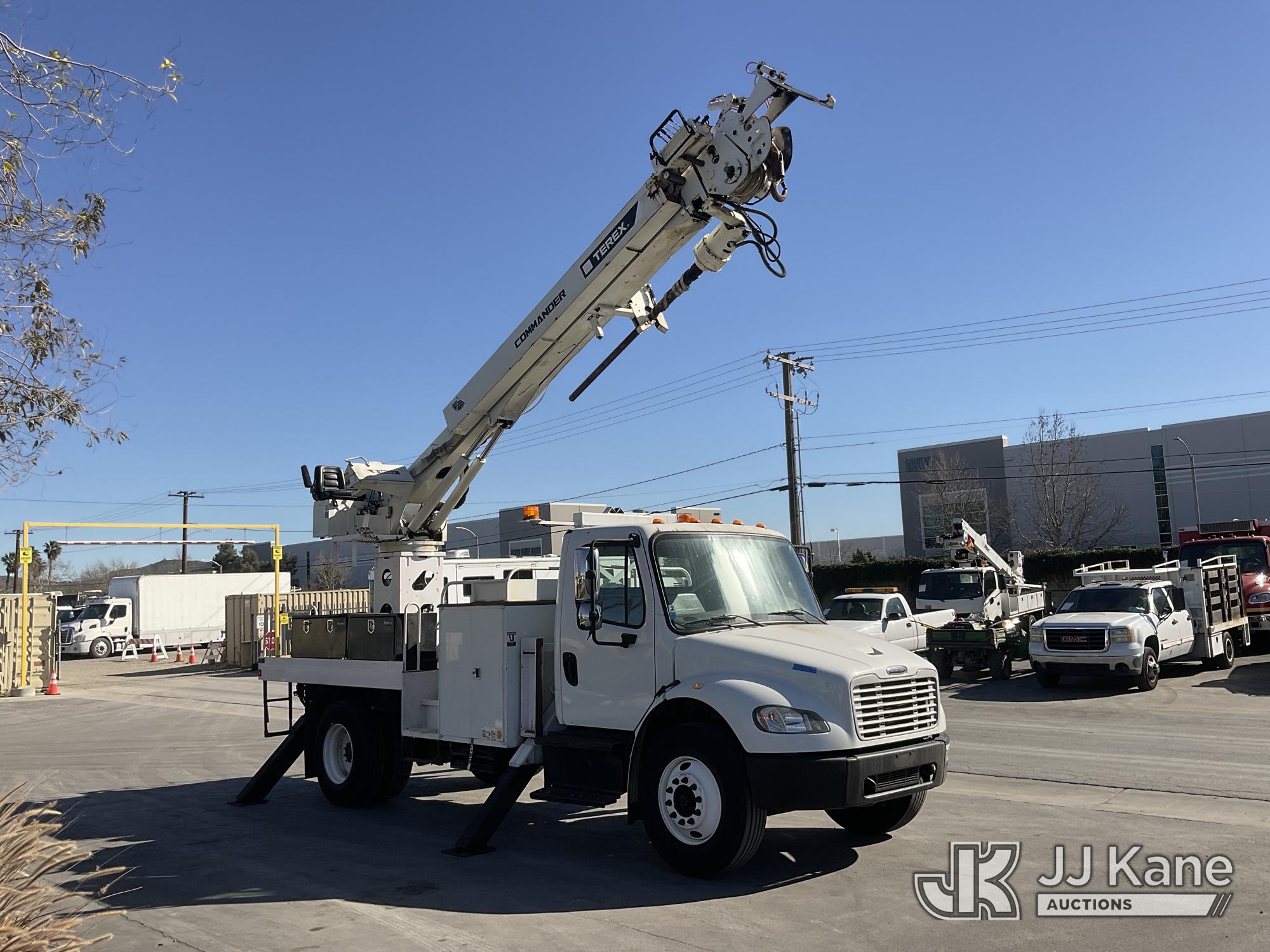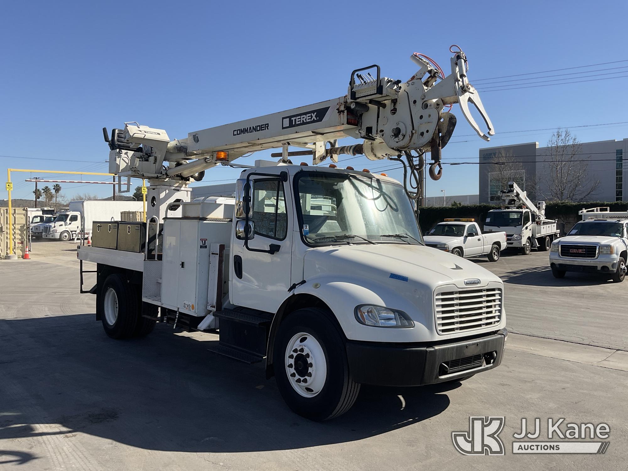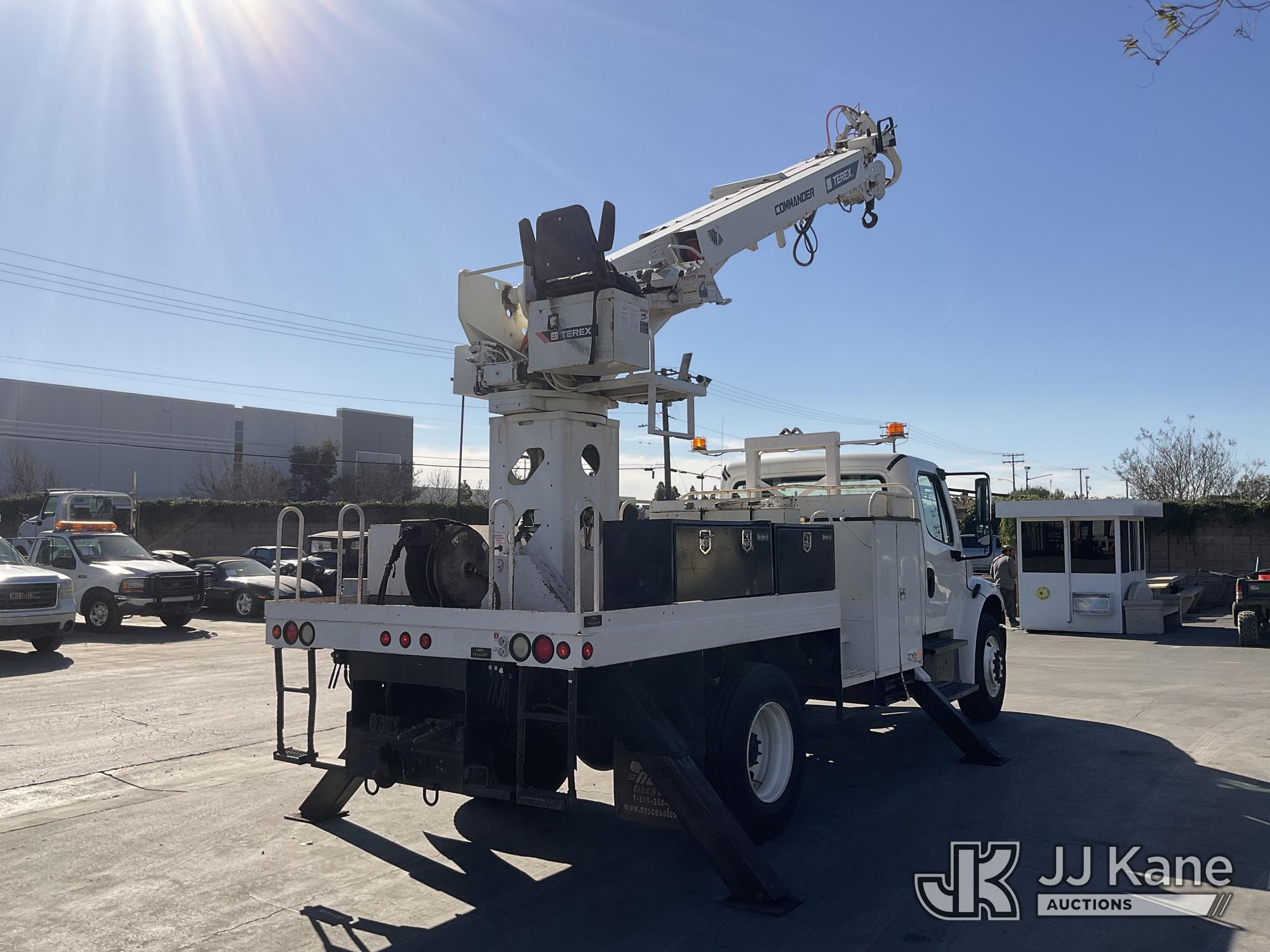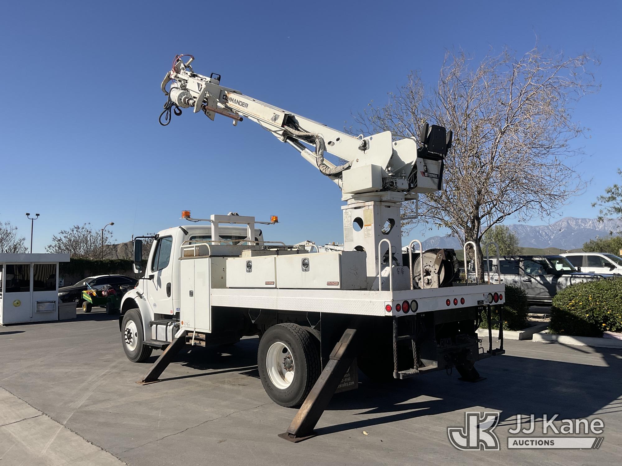 Terex Commander 4047, 23,240 Lb Digger Derrick s/n 2130448648, with 47' sheave height, 3 section boom, 2 spd digger, heel winch, pole grabs, riding console, rear mounted on 2014 Freightliner M2 106 Flatbed/Utility Truck, s/n 1FVACXDT8EHFK1282, 6.7L L6 DIESEL 4X2, Auto, A/C, with Tow Package, (99,992 miles) (Runs & Moves, Upper Operates, No Manual) (Reads 7,797 hours) May be subject to ARB Regulations This is a Titled Item*