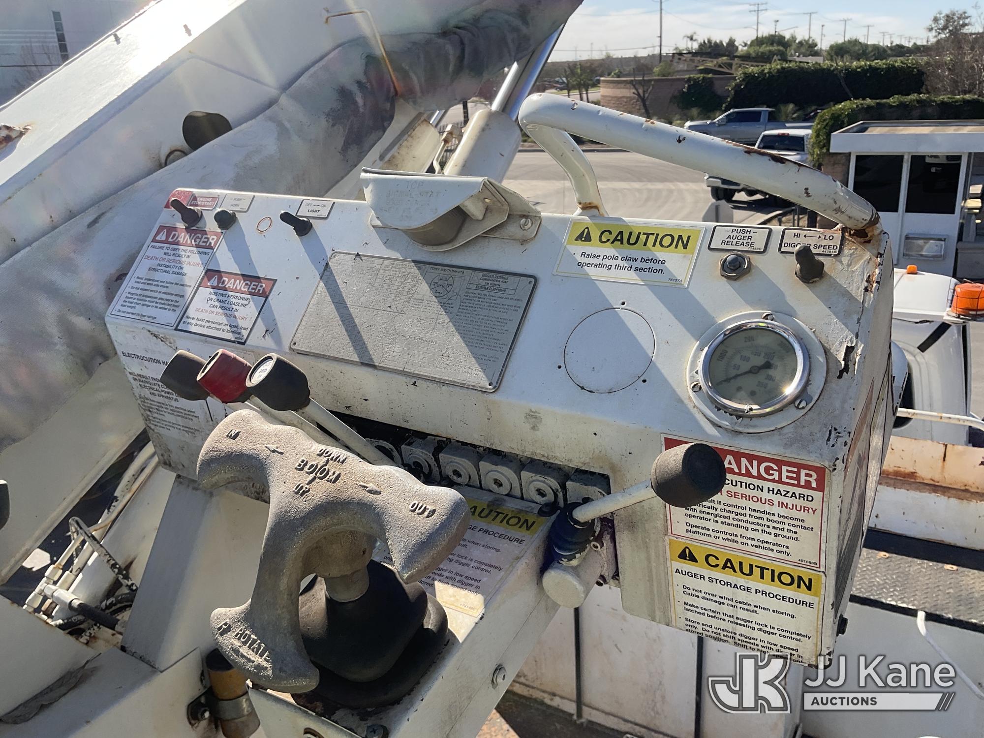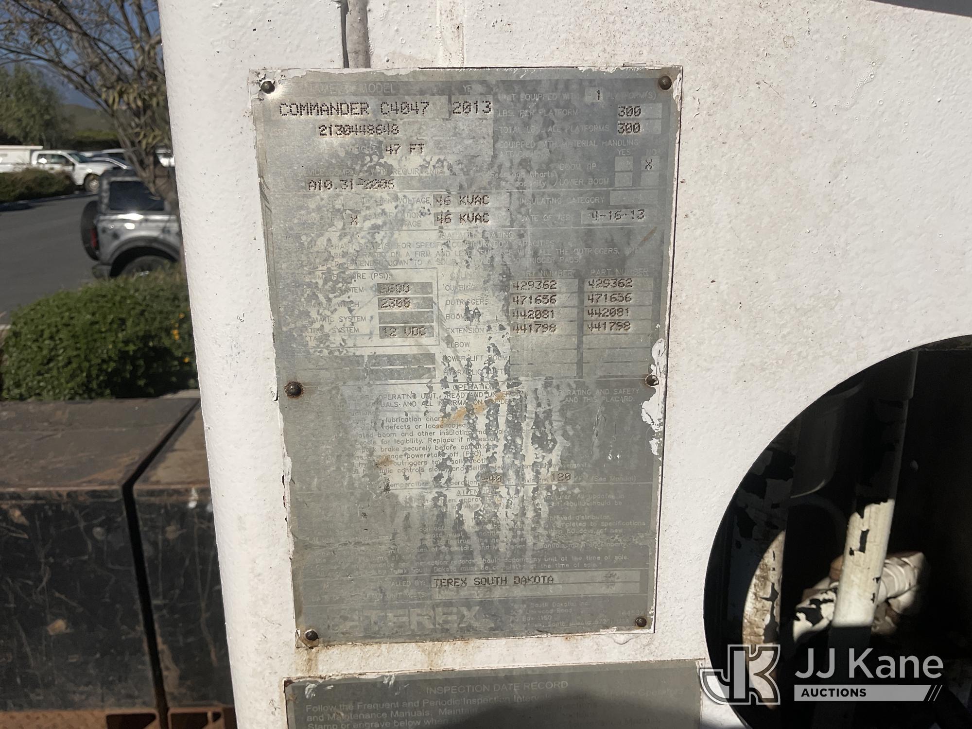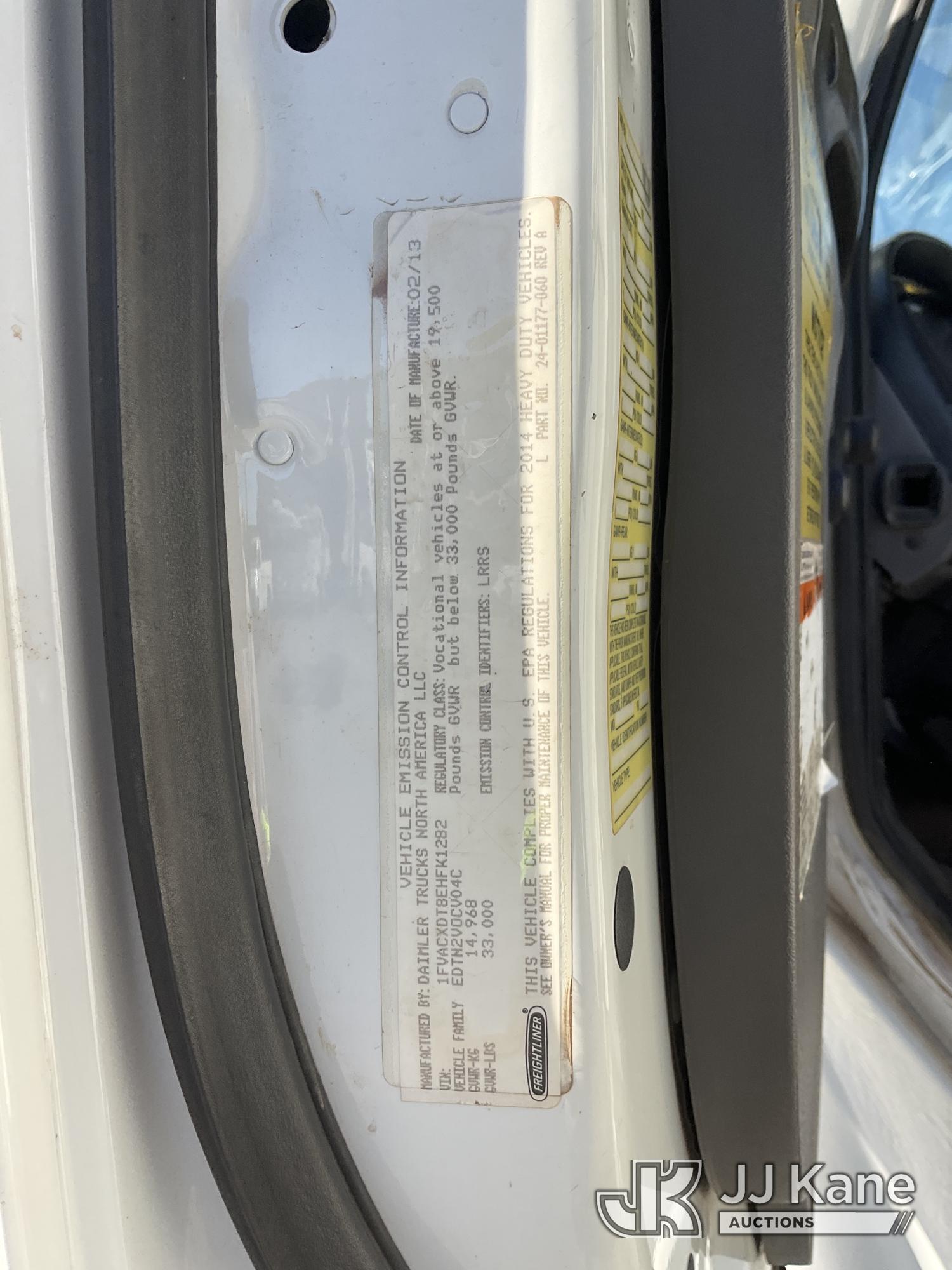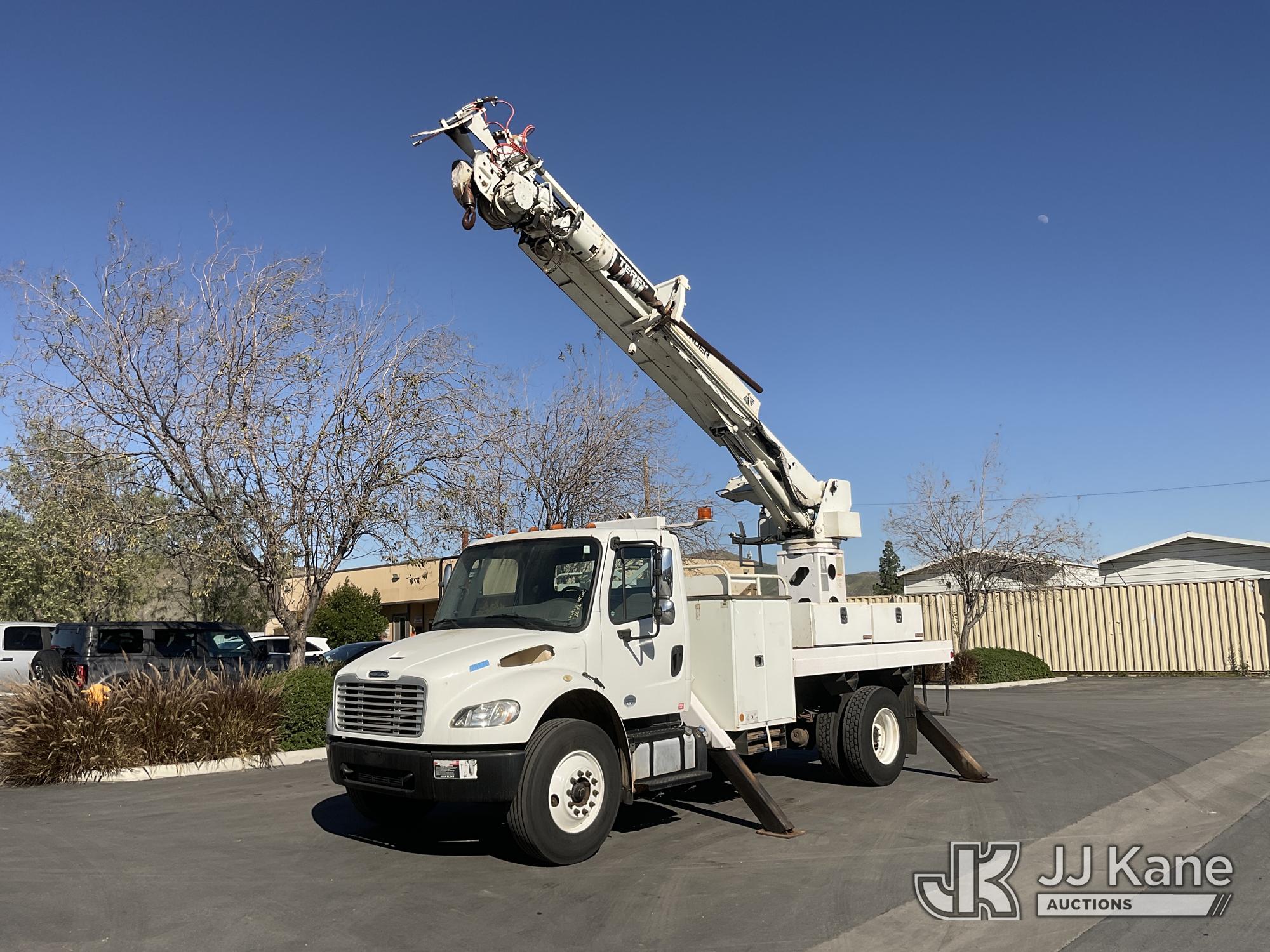 Terex Commander 4047, 23,240 Lb Digger Derrick s/n 2130448648, with 47' sheave height, 3 section boom, 2 spd digger, heel winch, pole grabs, riding console, rear mounted on 2014 Freightliner M2 106 Flatbed/Utility Truck, s/n 1FVACXDT8EHFK1282, 6.7L L6 DIESEL 4X2, Auto, A/C, with Tow Package, (99,992 miles) (Runs & Moves, Upper Operates, No Manual) (Reads 7,797 hours) May be subject to ARB Regulations This is a Titled Item*