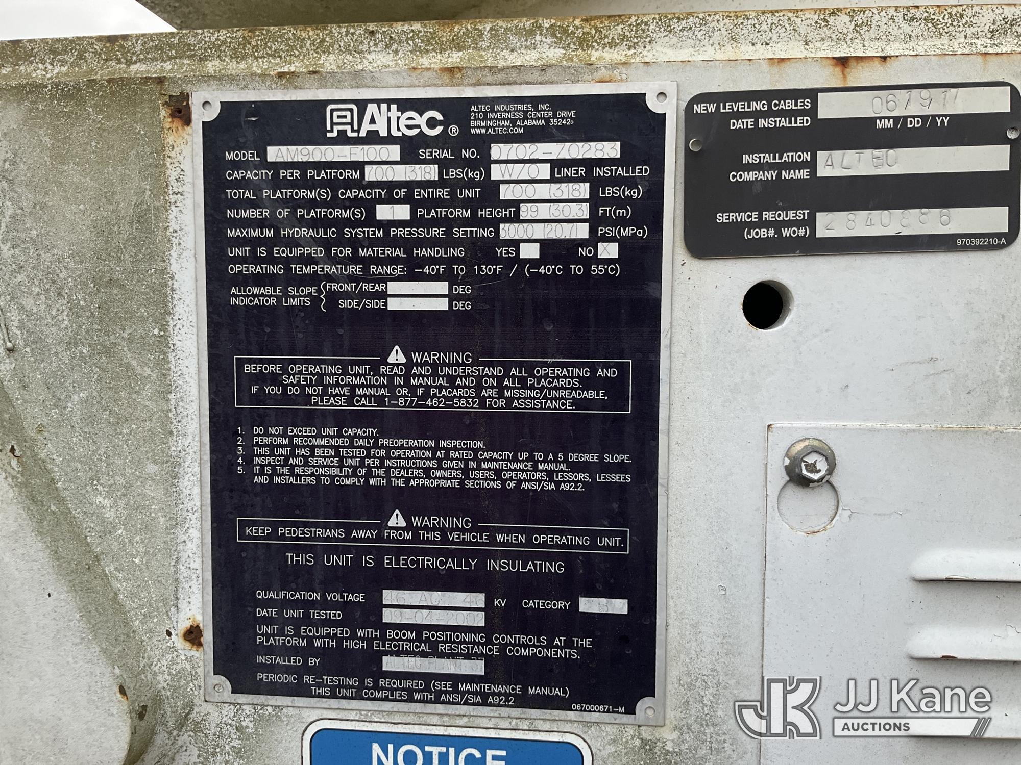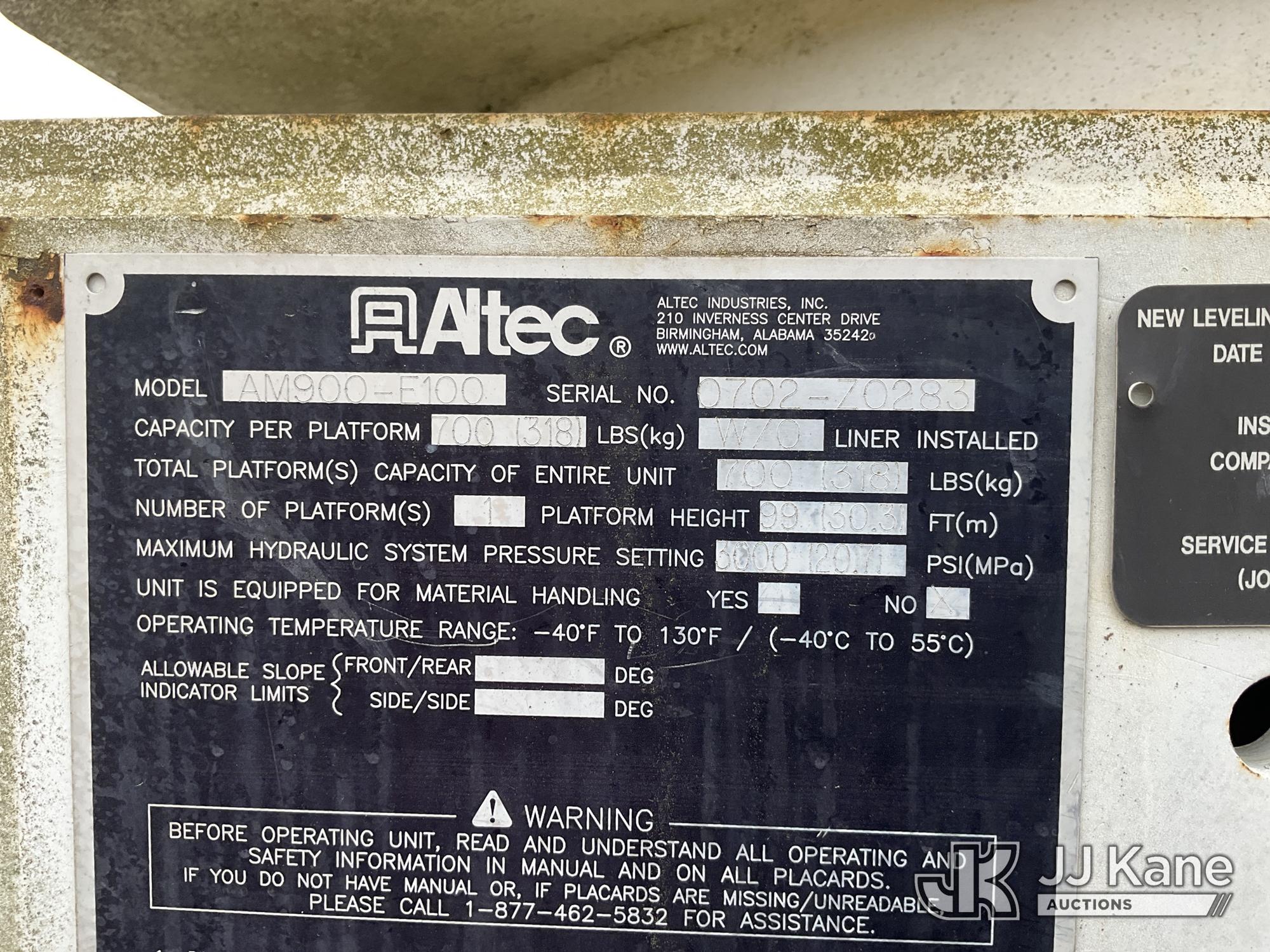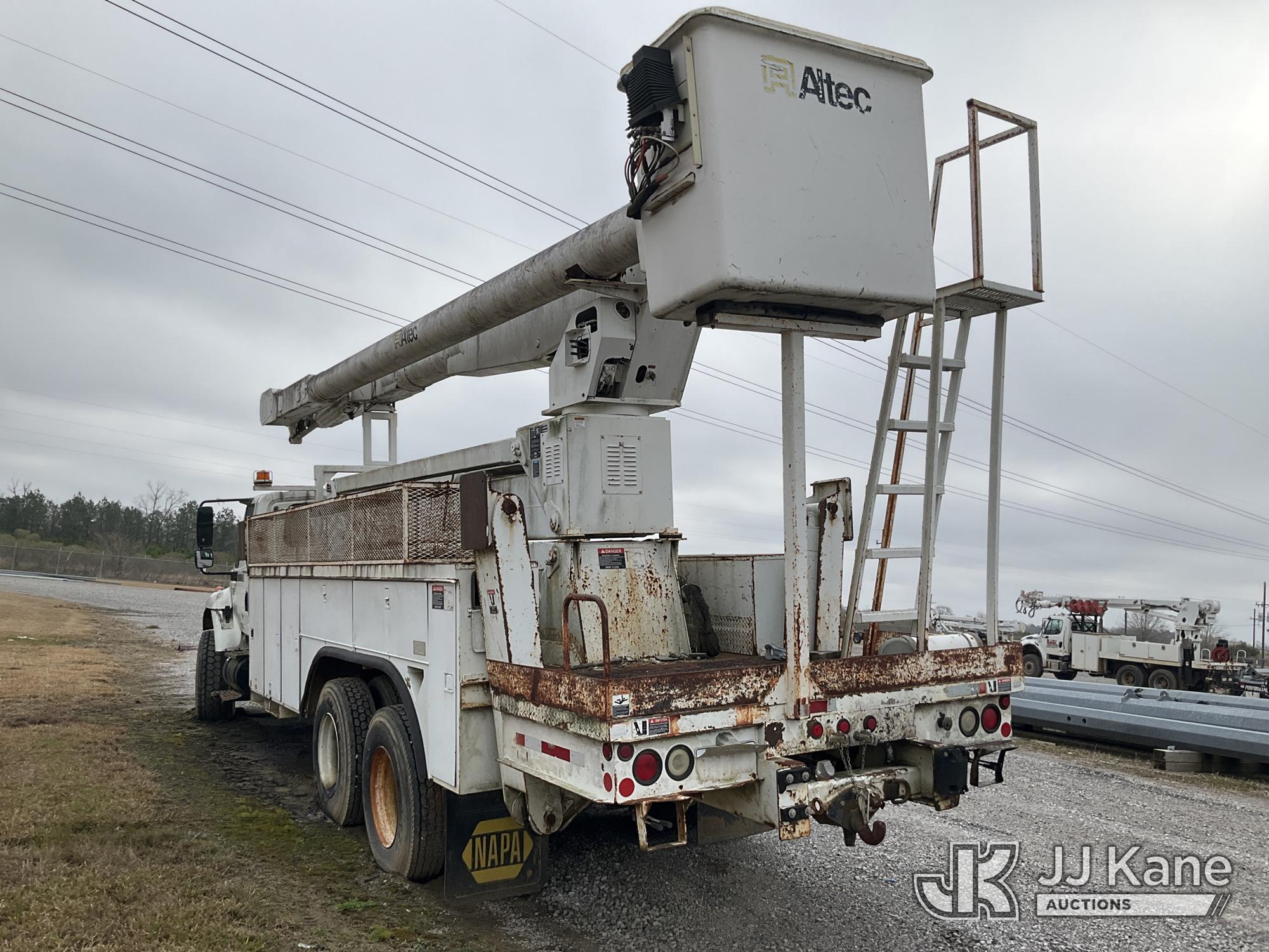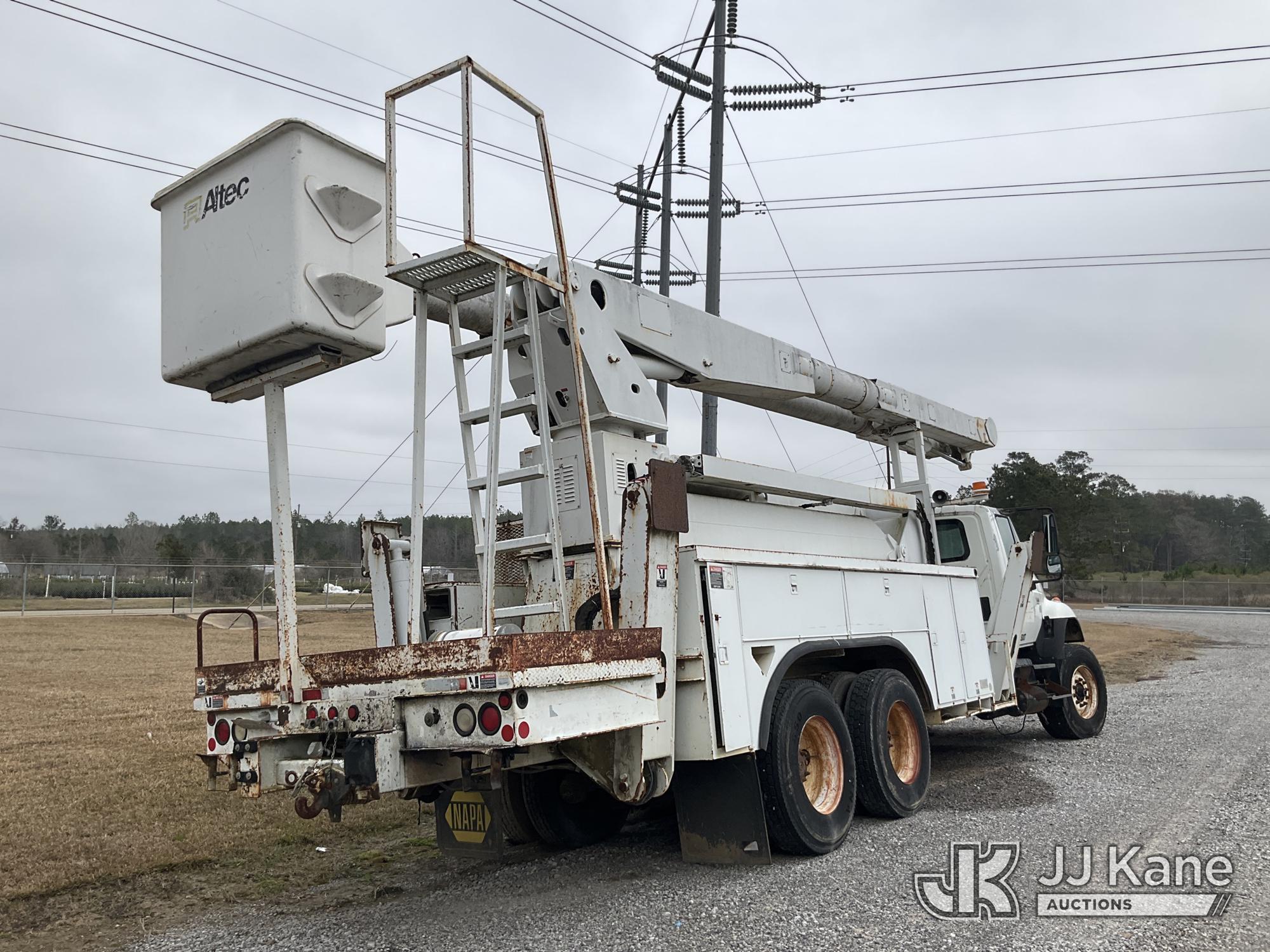 Altec AM900-E100, 105 ft, Double-Elevator Bucket Truck s/n 0702Z0283, with two-man bucket & 4 hyd outriggers, rear mounted on 2002 International 7400 T/A Utility Truck, 7.6L L6 DIESEL 6X4, 7-spd, A/C, True Mileage Unknown (Not Running, Condition Unknown, Blown Engine, Odometer Will Not Light, Missing Batteries, Upper Conditions Unknown, Missing Passenger Seat) This is a Titled Item*