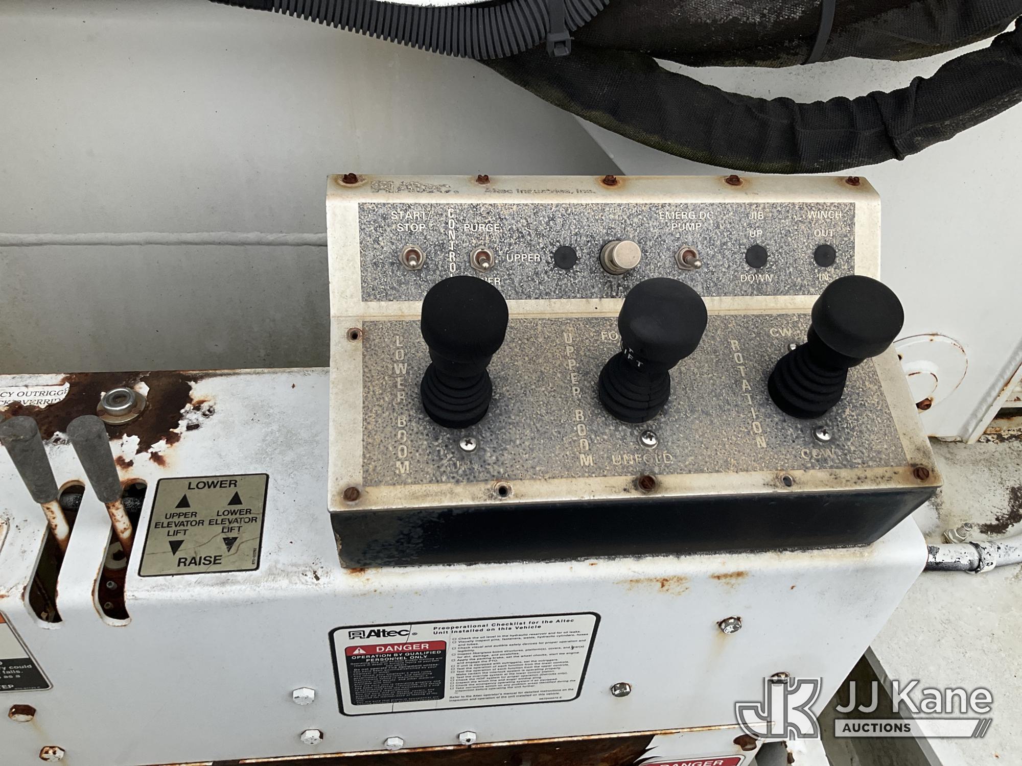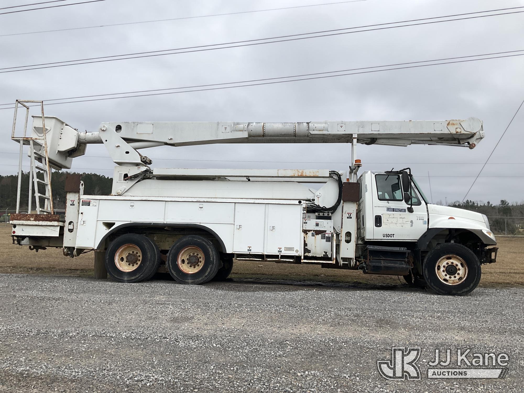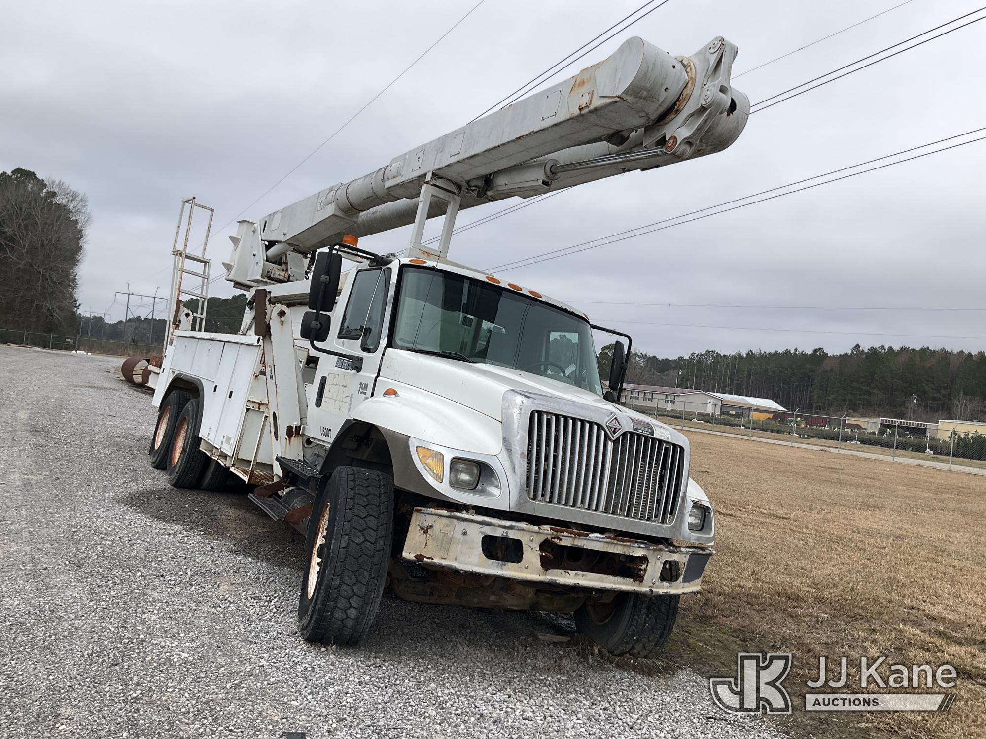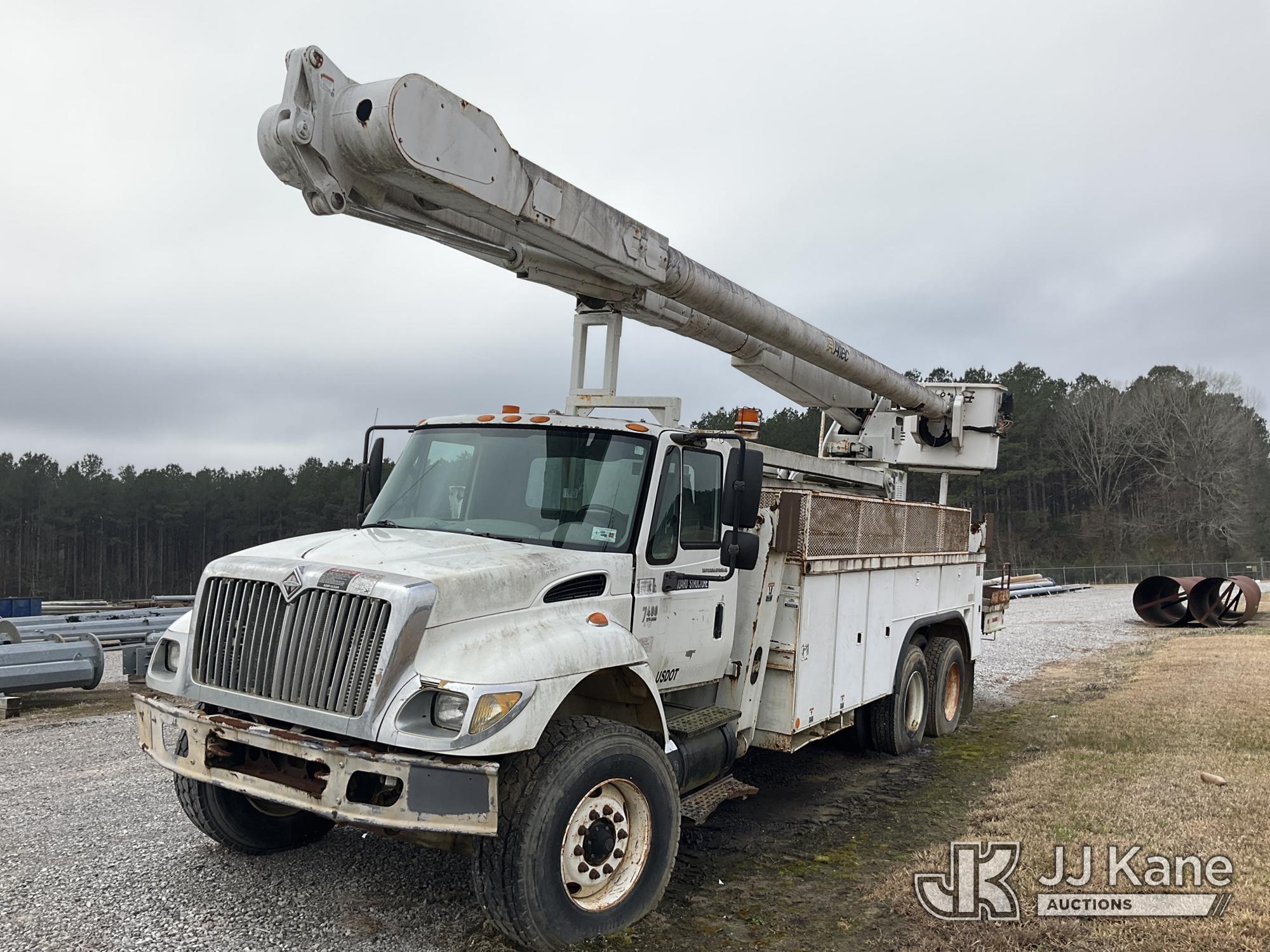 Altec AM900-E100, 105 ft, Double-Elevator Bucket Truck s/n 0702Z0283, with two-man bucket & 4 hyd outriggers, rear mounted on 2002 International 7400 T/A Utility Truck, 7.6L L6 DIESEL 6X4, 7-spd, A/C, True Mileage Unknown (Not Running, Condition Unknown, Blown Engine, Odometer Will Not Light, Missing Batteries, Upper Conditions Unknown, Missing Passenger Seat) This is a Titled Item*