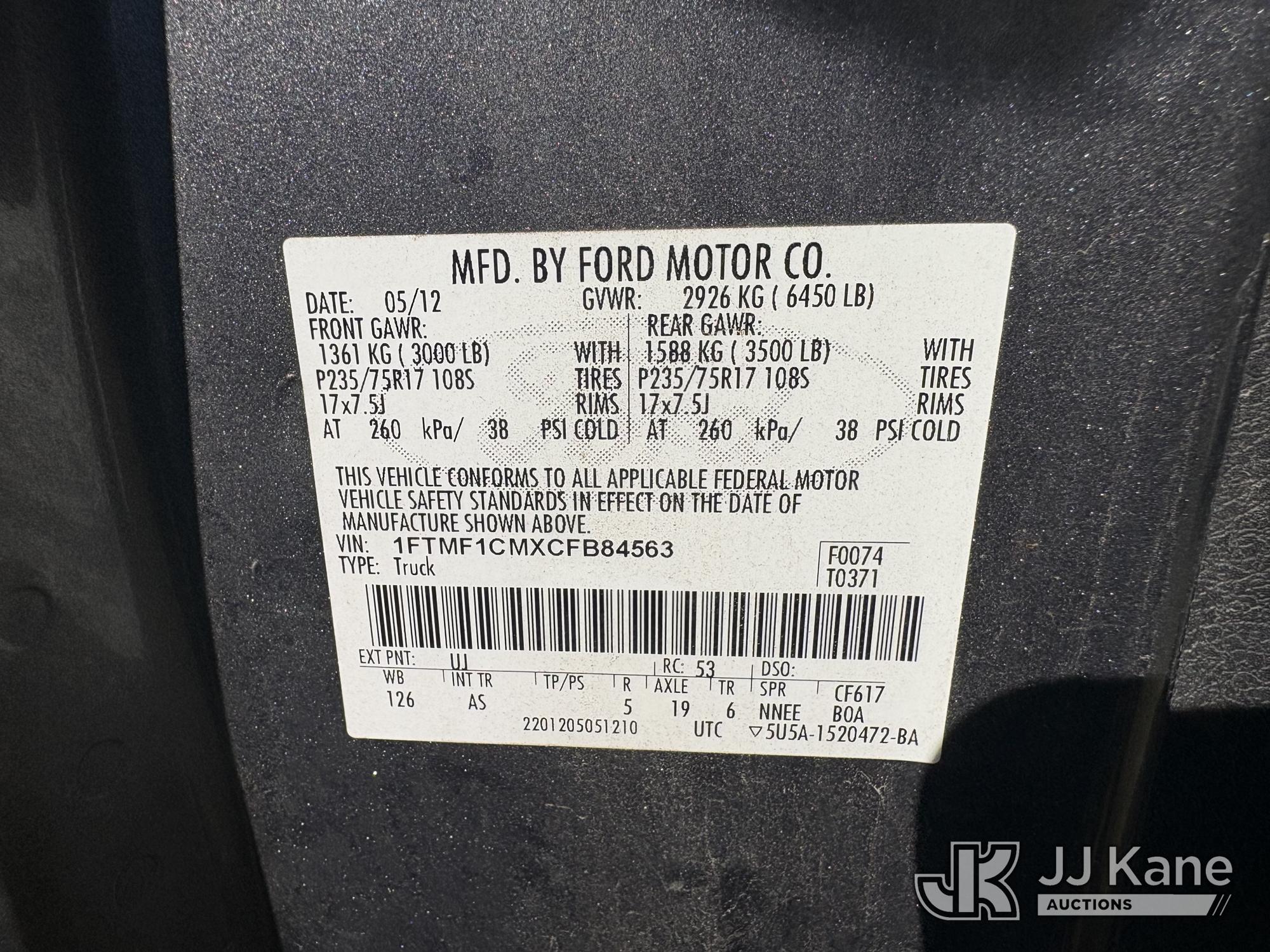2012 Ford F150 Pickup Truck, 3.7L V6 DOHC 24V gas, RWD, 6-Speed Automatic, A/C, (173,796 miles) (Runs & Moves ) This is a Titled Item*