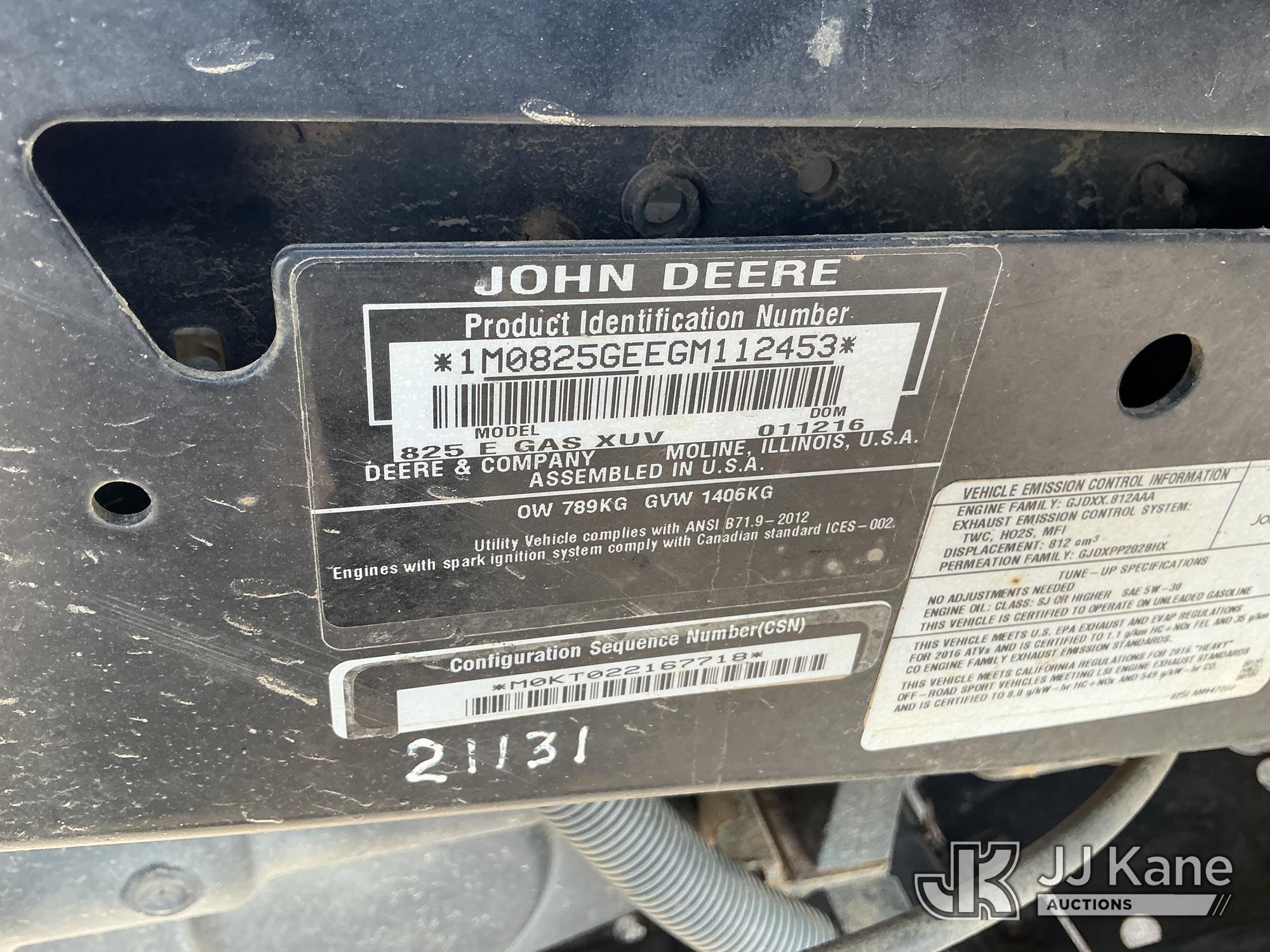 2016 John Deere Gator Utility Cart, 3-cyl Gas, (7,500 miles) (Runs & Moves, Dump Bed Will Not Go Down ) (Reads 817 hours) This is a Titled Item*