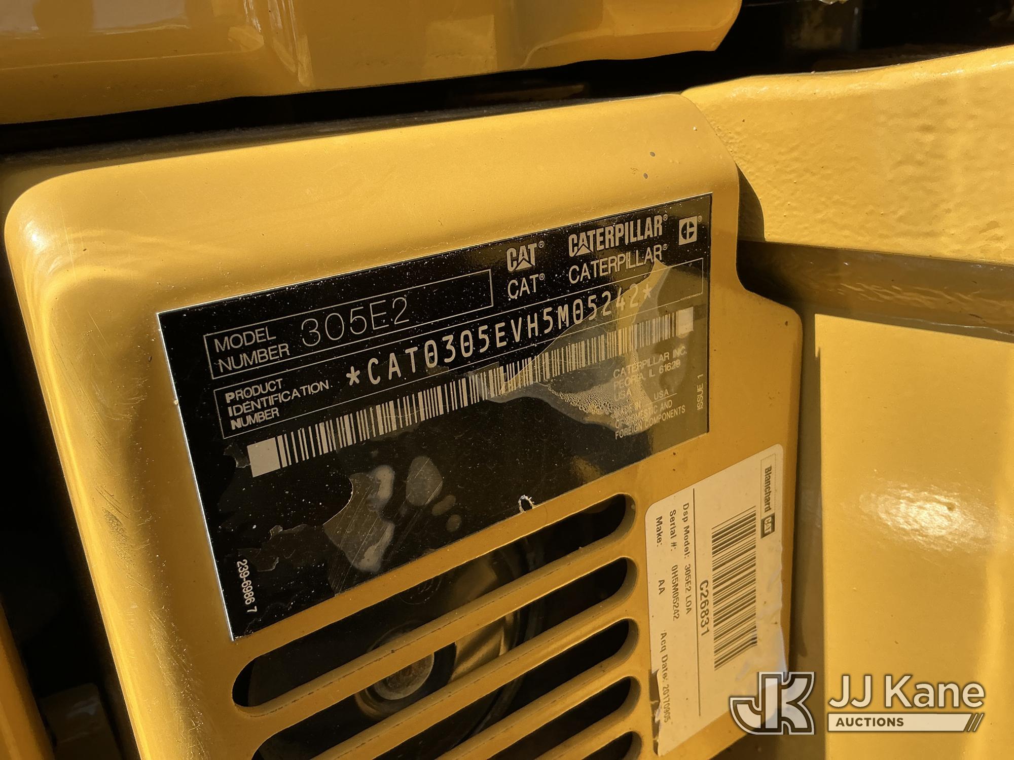 2017 Caterpillar 305E2 Mini Hydraulic Excavator, s/n CAT0305EVH5M05242, Cat C2.4 diesel, Hydraulic Drive, with 18in digging bucket, aux hydraulics, 4way backfill blade, rubber tracks, ROPS, (Runs, Moves, Hydraulics Operate) (Reads 3,318 hours)*