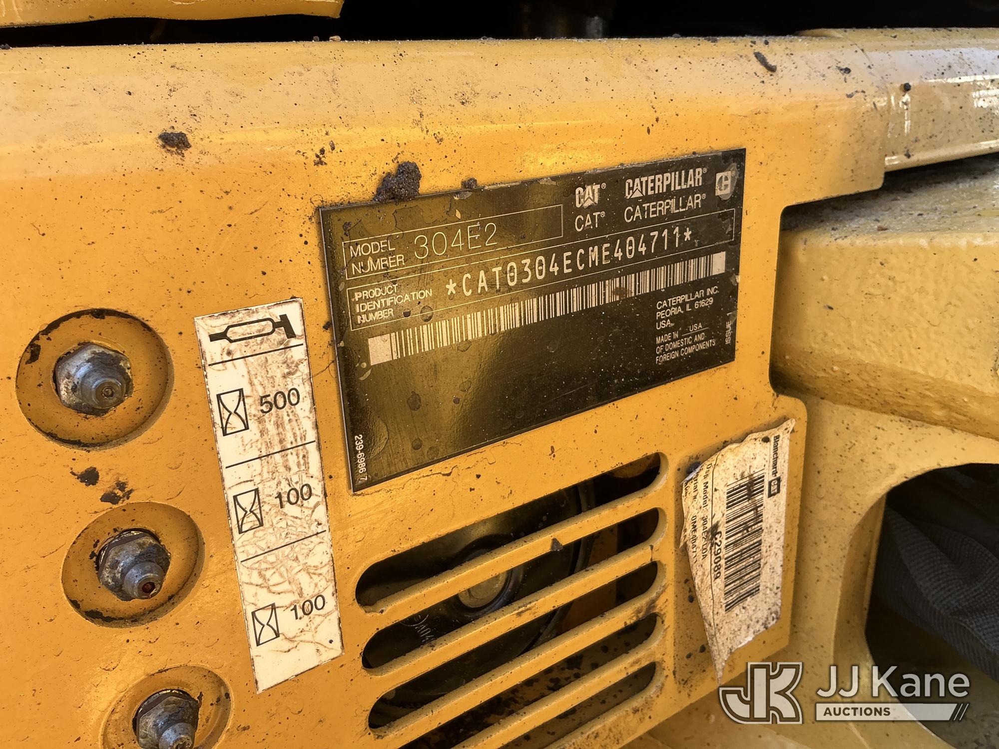 2018 Caterpillar 304E2 Mini Hydraulic Excavator, s/n CAT0304ECME404711, Cat C2.4 diesel, Hydraulic Drive, with 12in digging bucket, aux hydraulics, 4way backfill blade, rubber tracks, ROPS, (Runs, Moves, Operates) (Hour Meter INOP, Change Final Drive Oil Notification)*