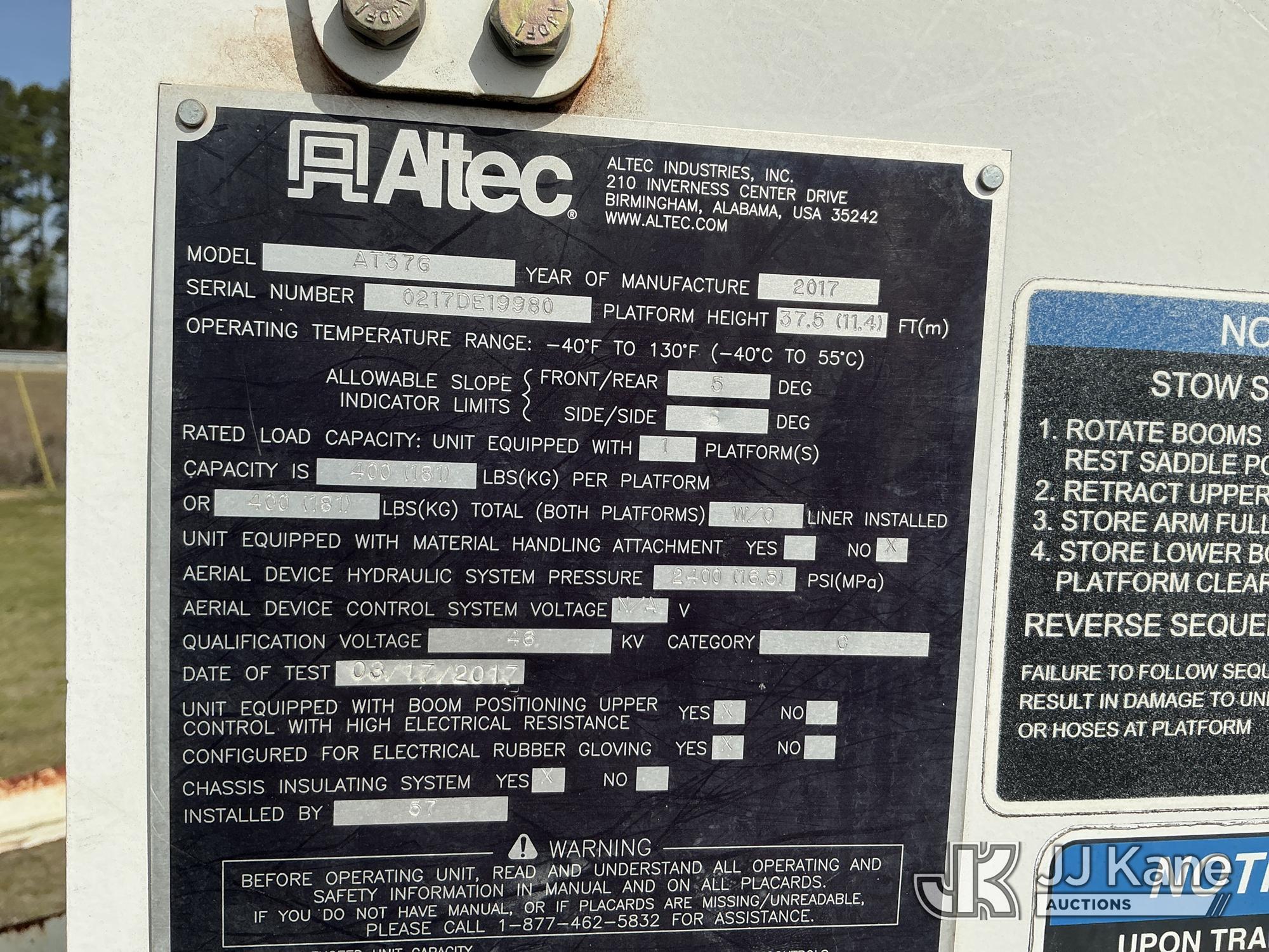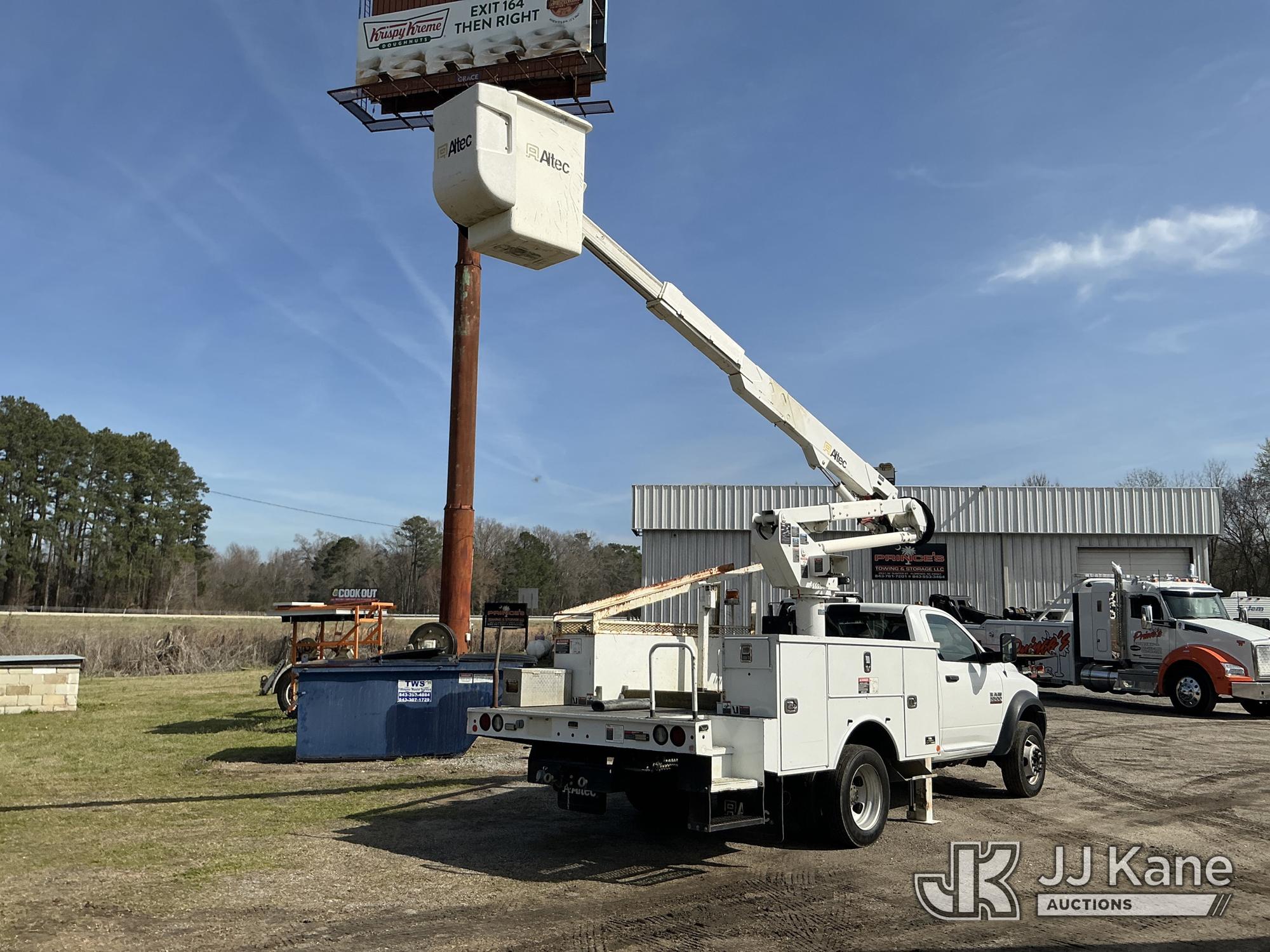 Altec AT37G, 42 ft, Articulating & Telescopic Bucket Truck s/n 0217DE19980, with single-man bucket, mounted behind cab on 2016 RAM 5500 Service Truck, 6.7L diesel, Auto, A/C, (202,695 miles) (Runs, Moves & Upper Operates) ( The manufacturer has notified JJ Kane that this equipment is subject to an open recall. CSN 855 Fuel Line and Brake Line Inspection The equipment should not be operated until this is addressed. Buyer is responsible for reviewing the recall notice and contacting the manufacturer to schedule the recommended corrective actions. Associated costs may be covered by the manufacturer in some cases.) This is a Titled Item*