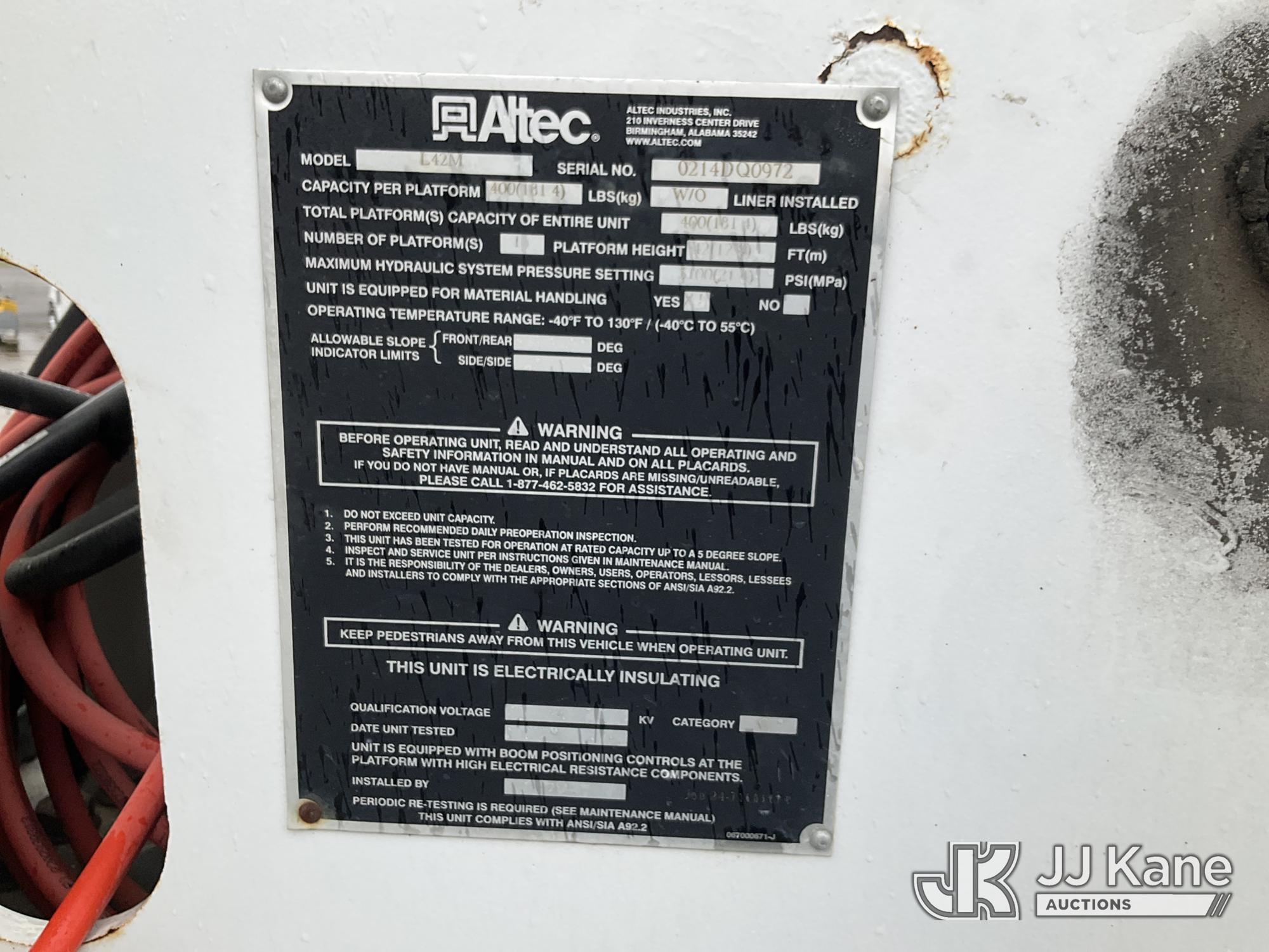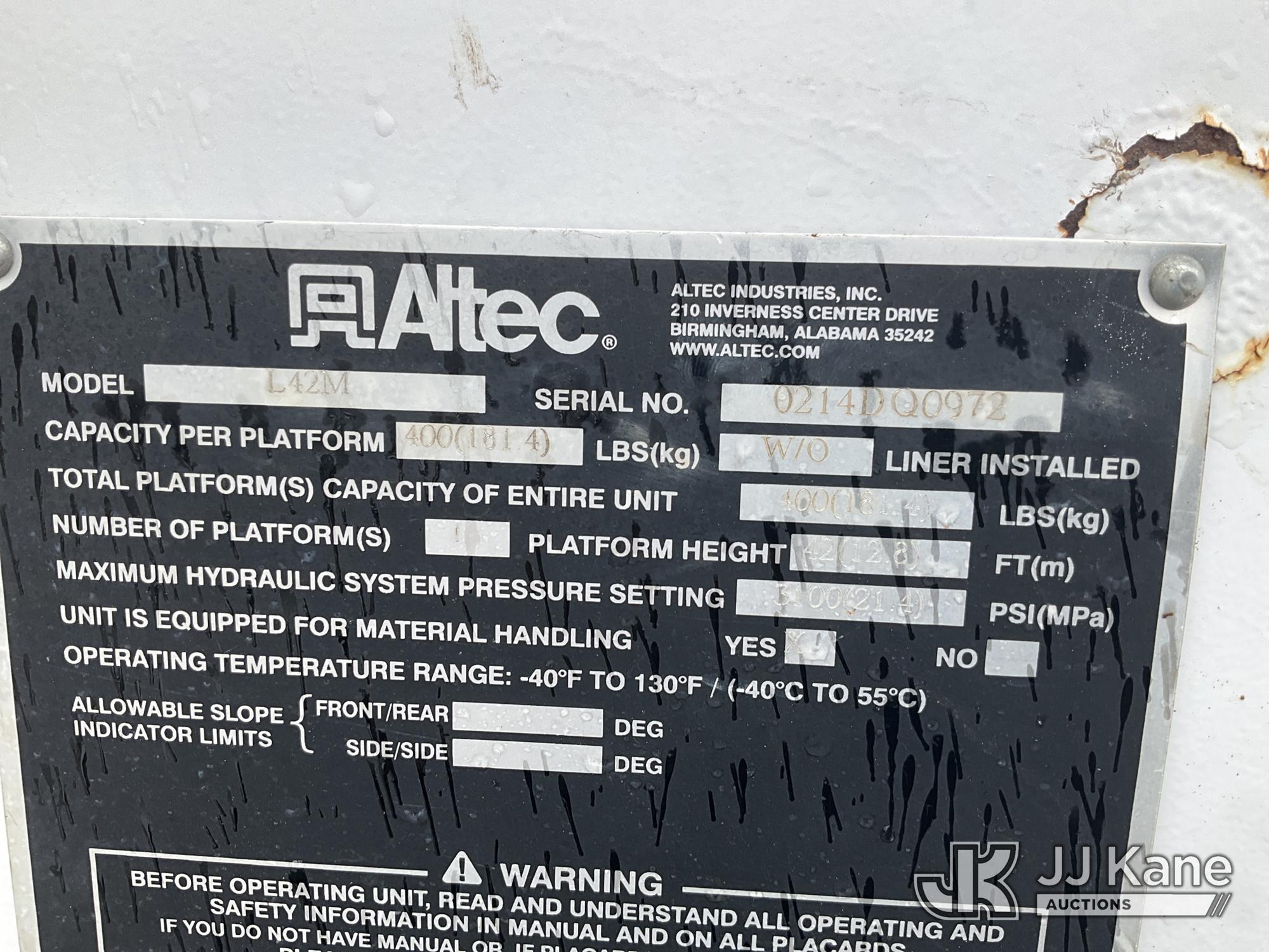 Altec L42M, 47 ft, Over-Center Material Handling Bucket Truck s/n 0214DQ0972, with single man bucket, rear mounted on 2015 Freightliner M2 106 Utility Truck, 6.7L diesel, 4X2, Auto, A/C, (31,192 miles) (Runs, Moves & Upper Operates) (Reads 5,542 hours) This is a Titled Item*
