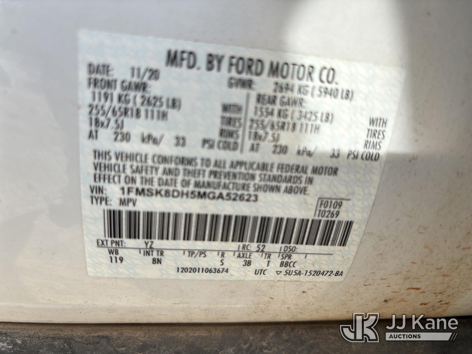 2021 Ford Explorer 4-Door Sport Utility Vehicle, 4-cyl gas, 10-Speed Automatic, A/C, (147,288 miles) (Runs & Moves) (Jump to Start, Check Engine Light On) This is a Titled Item*