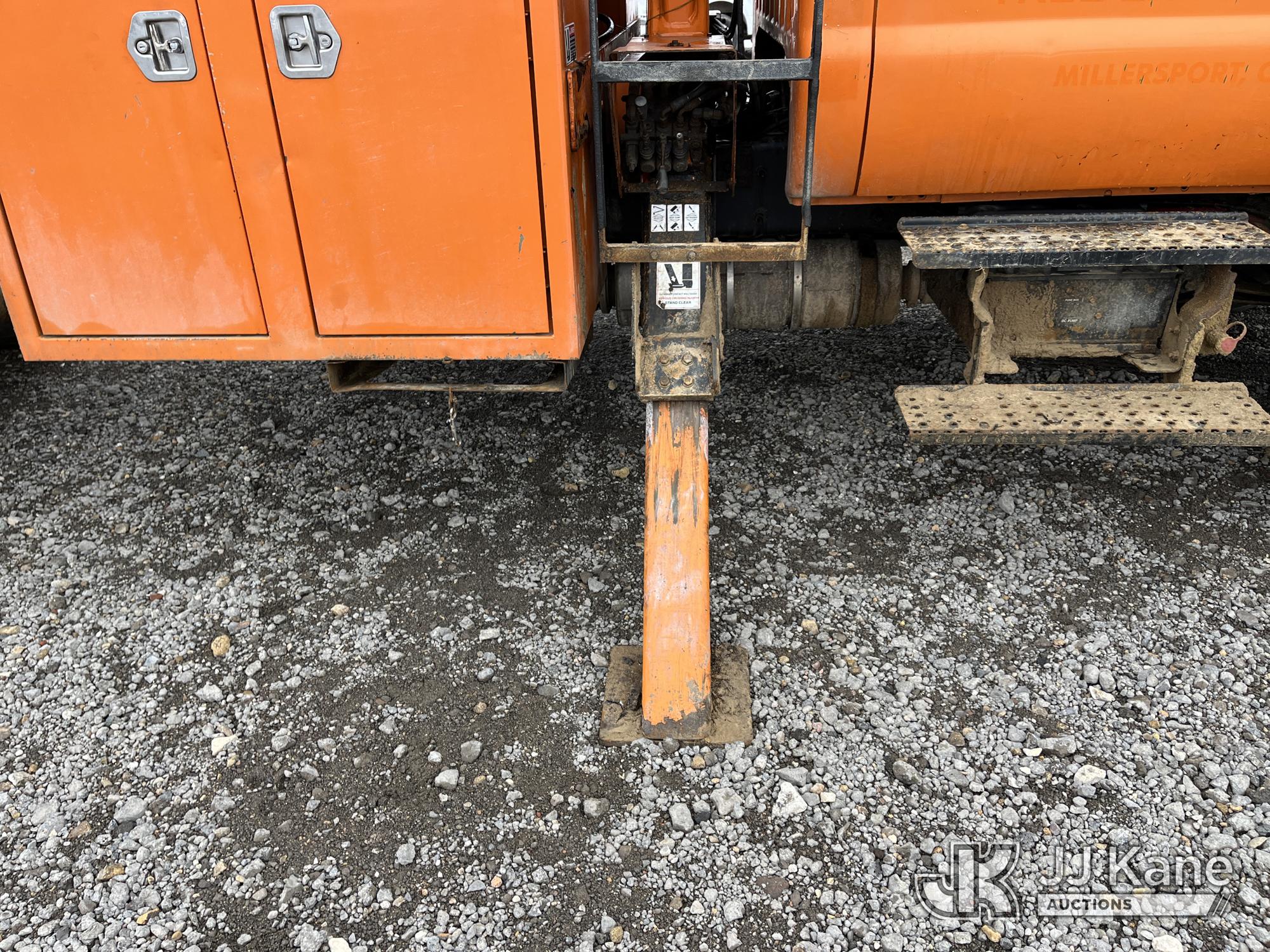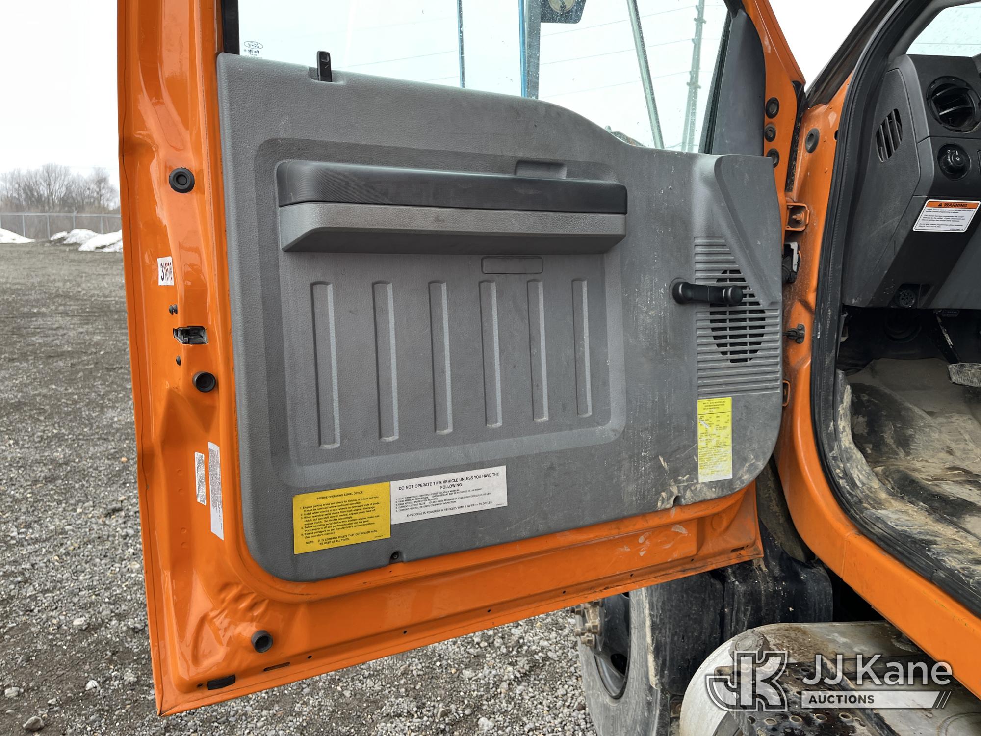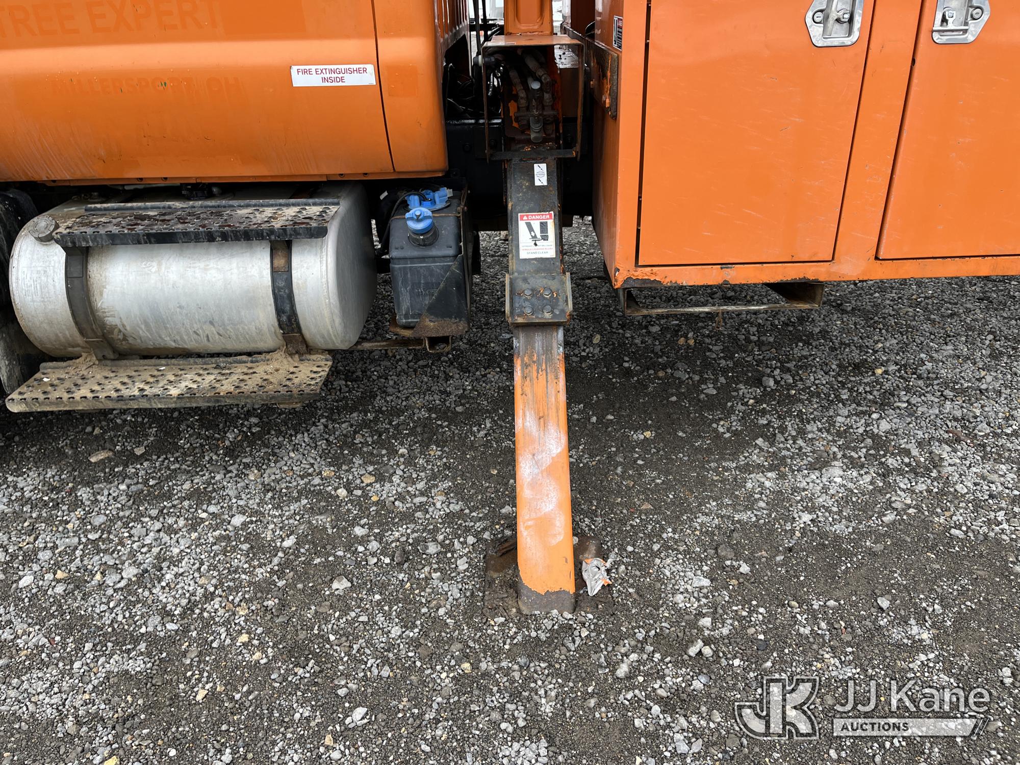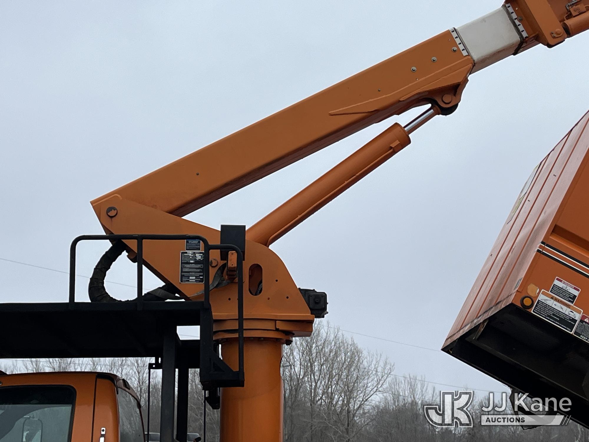 Altec LR756, 61 ft, Over-Center Bucket Truck s/n 0714FF2731, with single-man bucket & 2 hyd outriggers, mounted behind cab on 2013 Ford F-750 Chipper Dump Truck, 6.7L L6 diesel, Auto, (85,238 miles) (Runs & Moves, Engine Light On, Engine Wrench Light On, Upper Operates, Out Rigger Lever Missing, Body & Rust Damage) (Seller Stats Transmission Issues kicking out of gear.) This is a Titled Item*
