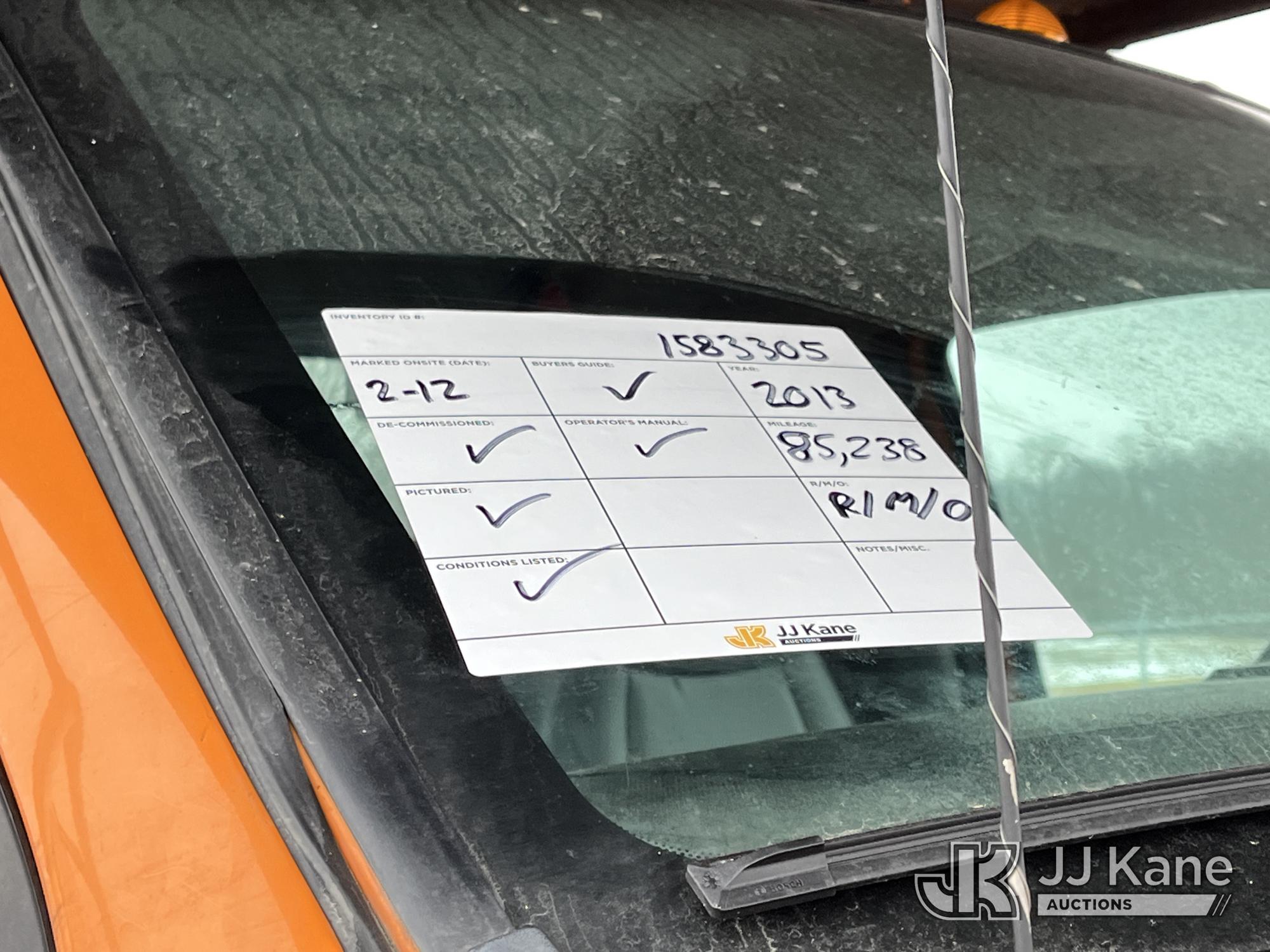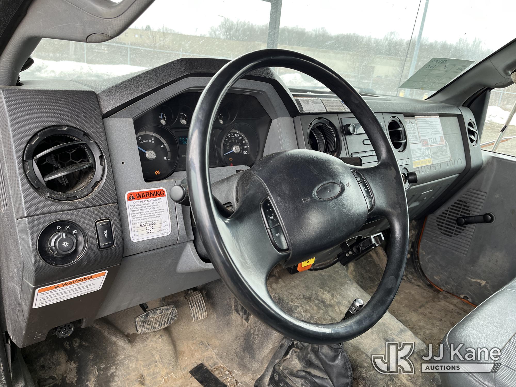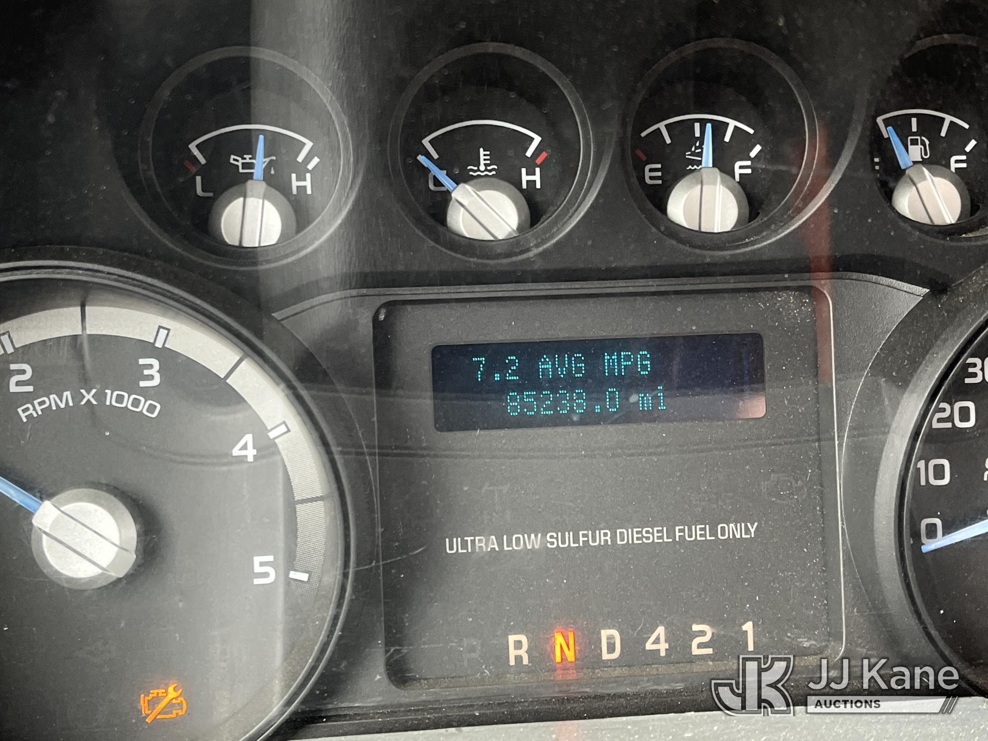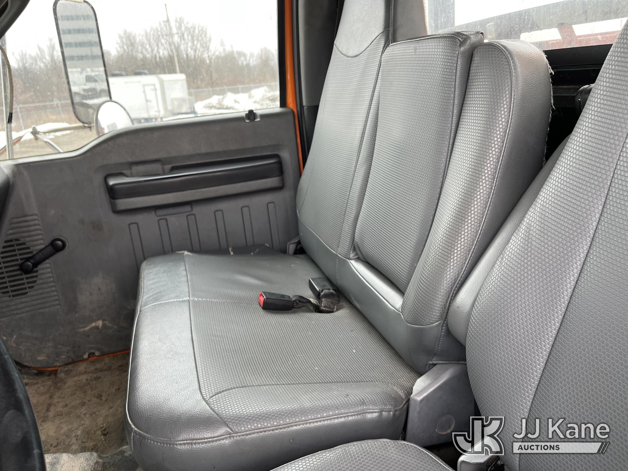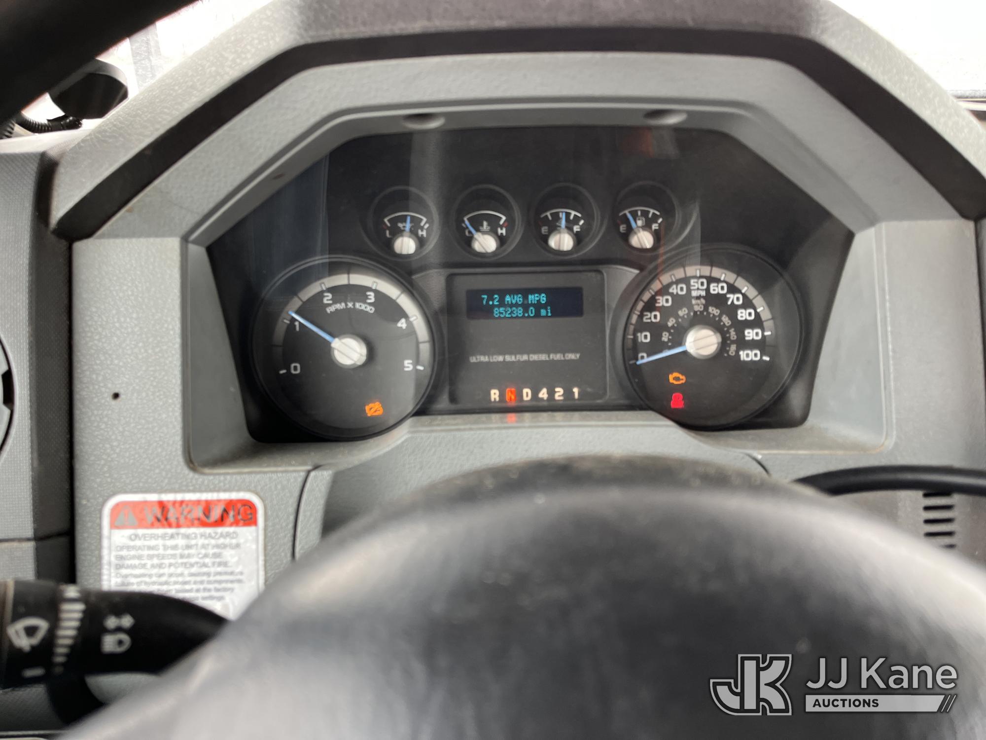 Altec LR756, 61 ft, Over-Center Bucket Truck s/n 0714FF2731, with single-man bucket & 2 hyd outriggers, mounted behind cab on 2013 Ford F-750 Chipper Dump Truck, 6.7L L6 diesel, Auto, (85,238 miles) (Runs & Moves, Engine Light On, Engine Wrench Light On, Upper Operates, Out Rigger Lever Missing, Body & Rust Damage) (Seller Stats Transmission Issues kicking out of gear.) This is a Titled Item*