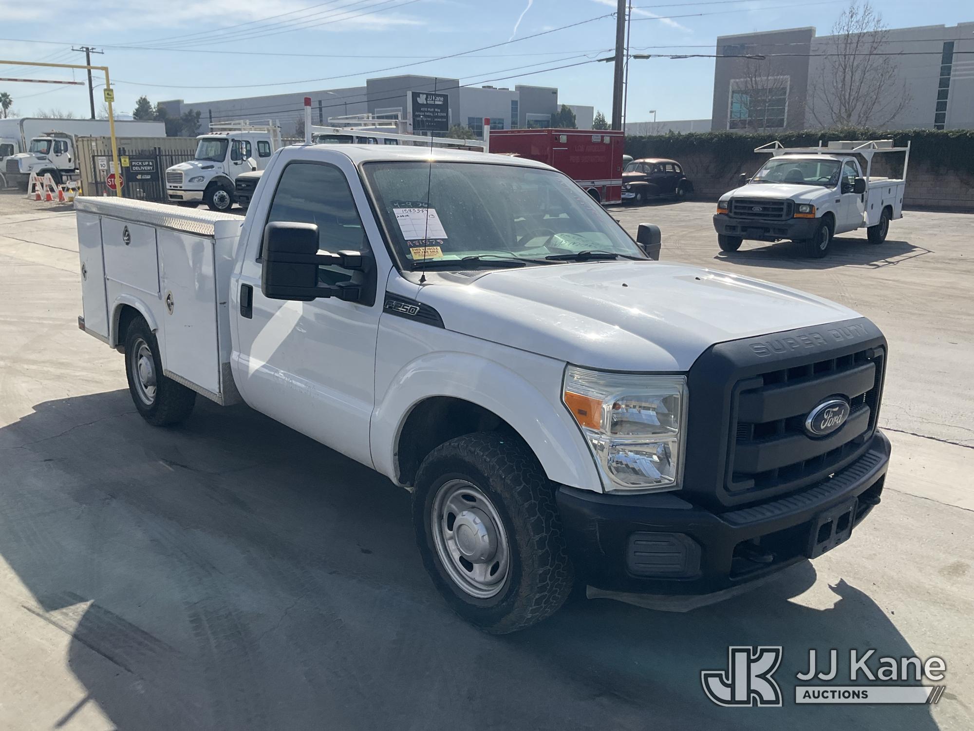 2013 Ford F-250 SD Service Truck, s/n 1FDBF2A66DEA81578, 8-cyl gas, 6-Speed Automatic, A/C, with Tow Package, (96,240 miles) (Runs & Moves) (No Catalytic Converter, Engine Light On, Bad Batteries) (Bidding Restricted to Licensed Vehicle Dealers Only), This is a Titled Item*