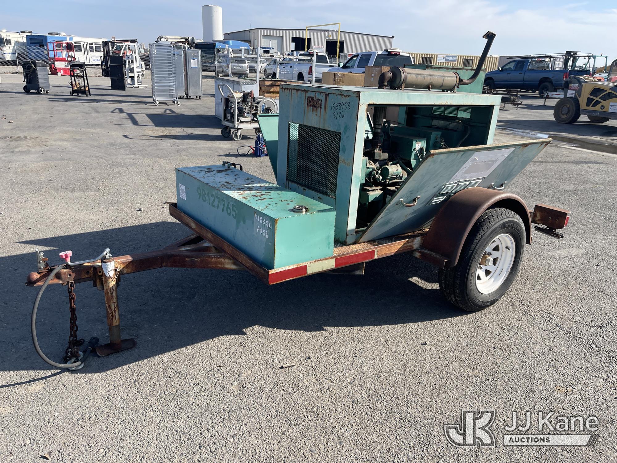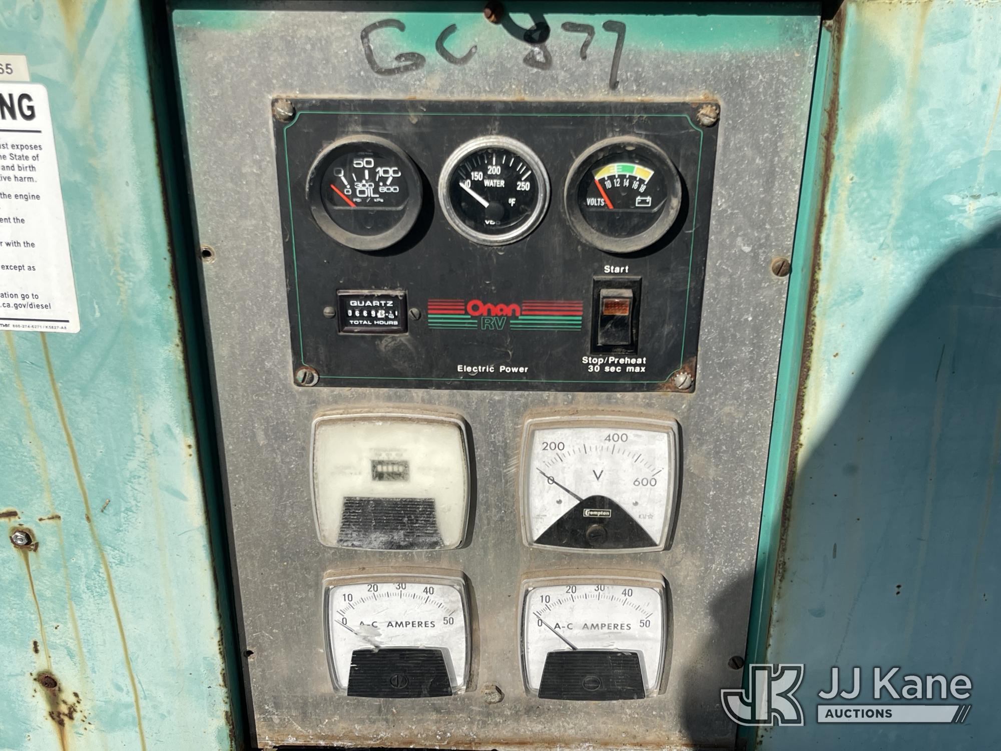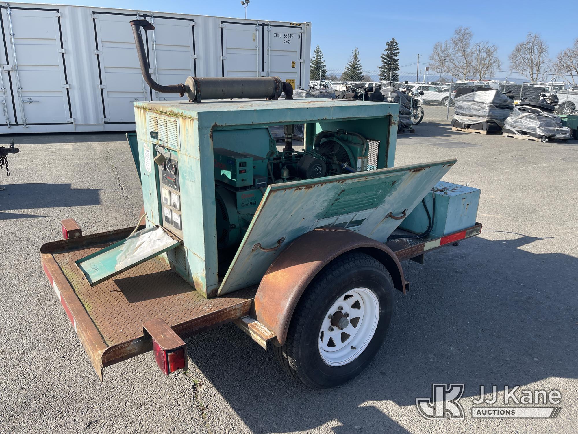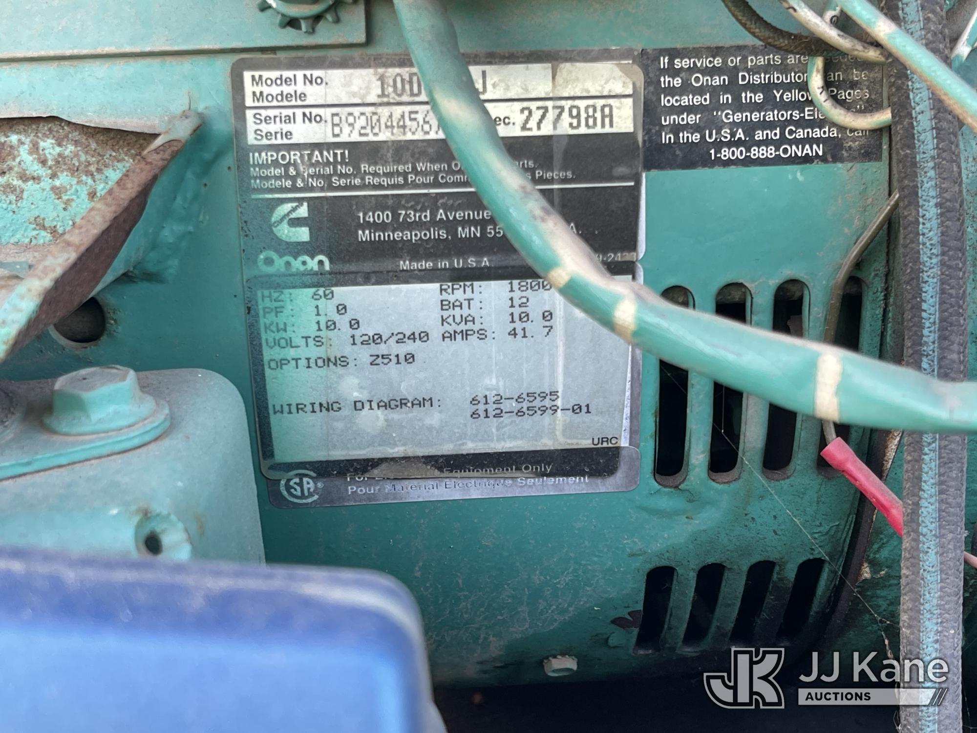 1992 Big Joe Enclosed Portable Generator, Cummins Onan diesel, with Onan 10.0RV GenSet, ball hitch, 2/17/26 Pulled DX260226, need VIN plate and needs to be registered with DMV before we can sell it-Eneri (Not Running, Condition Unknown) (Cranks But Doesn’t Start) (No VIN Visible, Application For Special Equipment) (Reads 669 hours) May be subject to ARB Regulations This is a Titled Item*