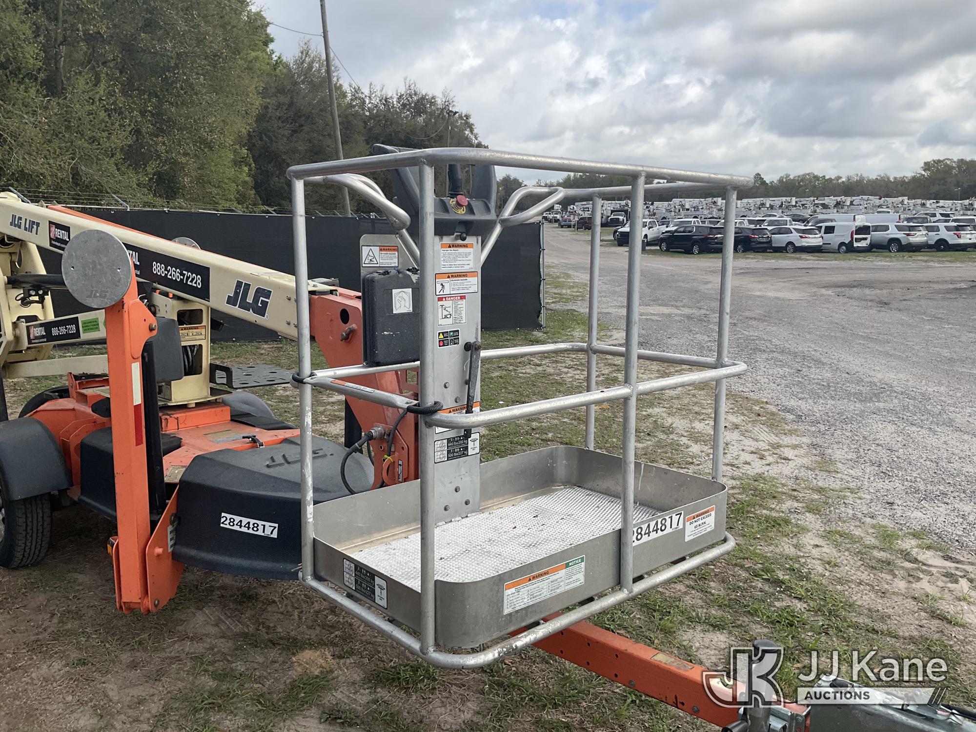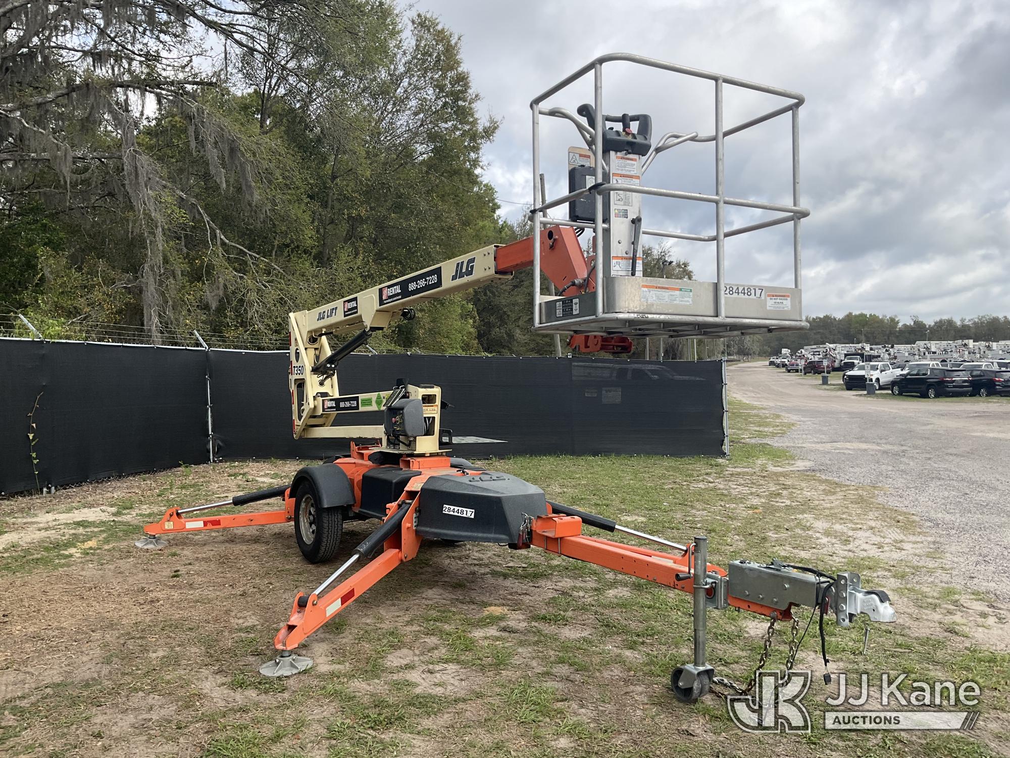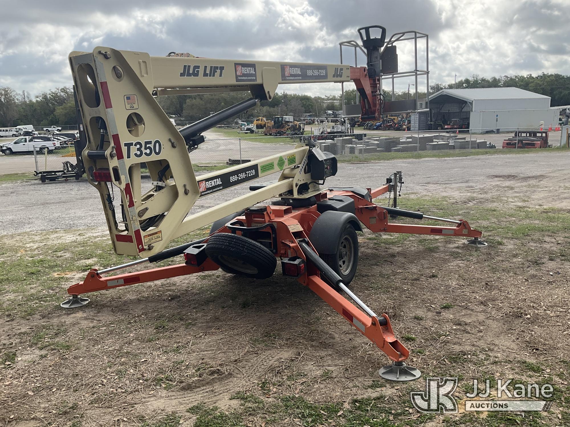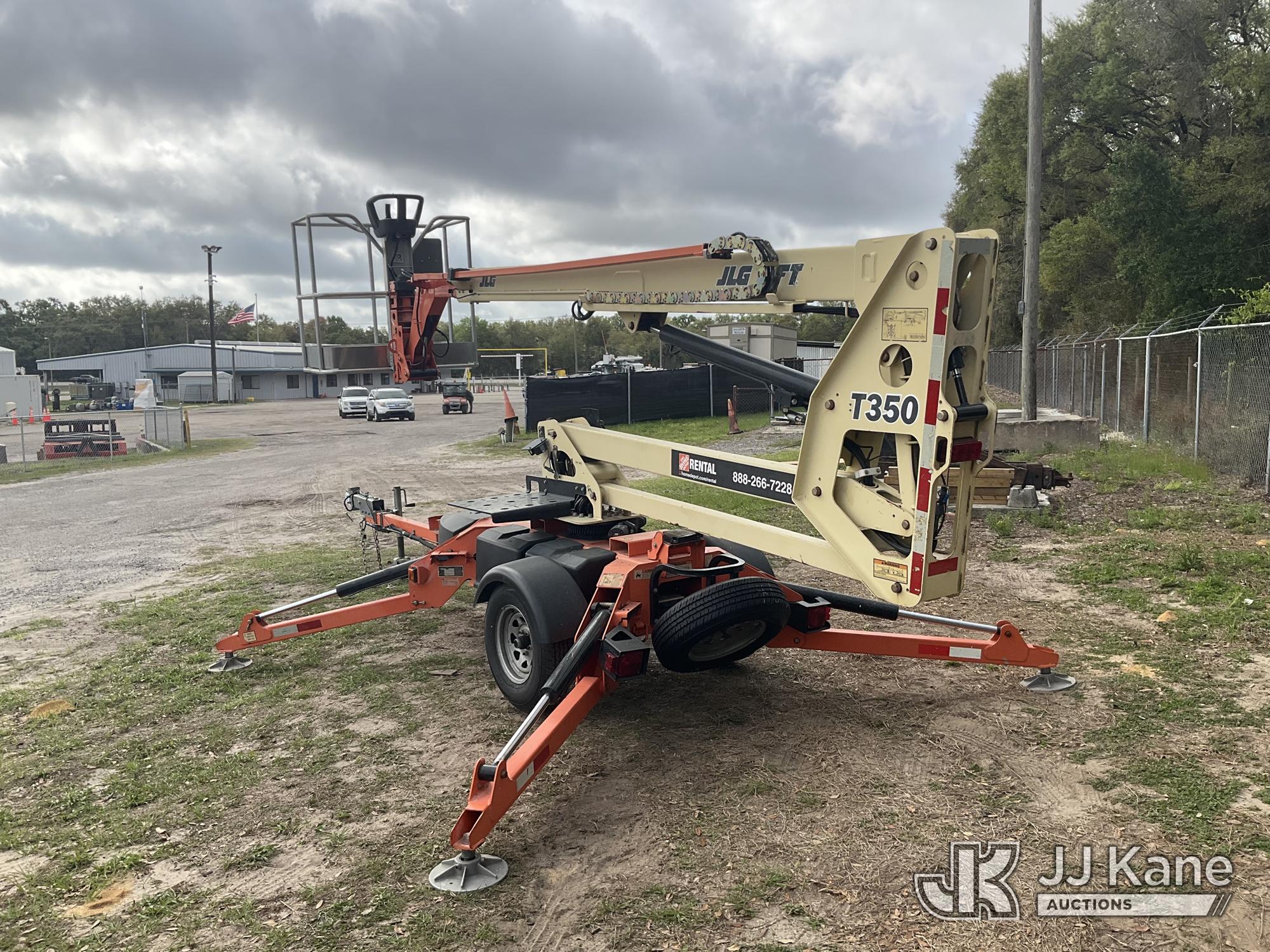2019 JLG T350 Articulating & Telescopic Manlift, electric, with rated capacity with rotator: 440 lbs, rated capacity without rotator: 500 lbs, maximum platform height: 35 ft, Trailer Mounted (Operates)(FL Residents Purchasing Titled Items – tax, title & registration fees will be collected at the maximum rate of $400.00 under 25,999 and $800.00 for Over 26,000 and $250.00 trailers – Proof of insurance is mandatory; Out of State Residents Purchasing Title Items – tax will be collected based upon your state rate.) (Reads 362 hours) This is a Titled Item*