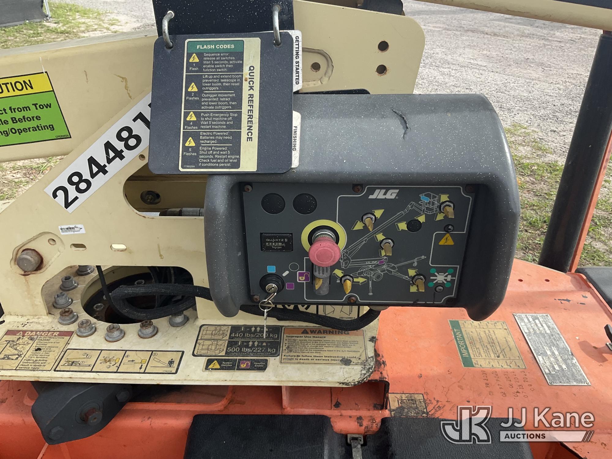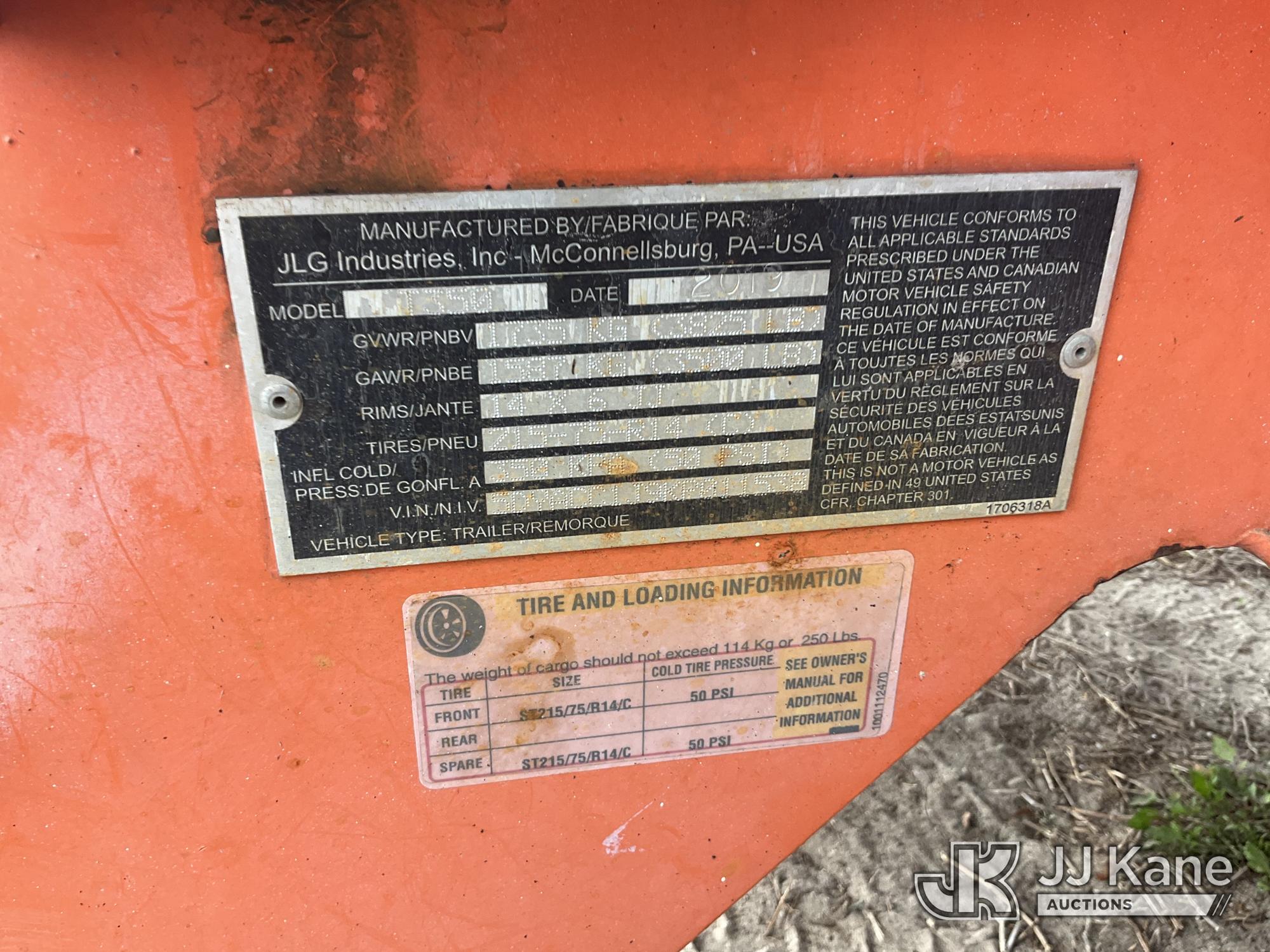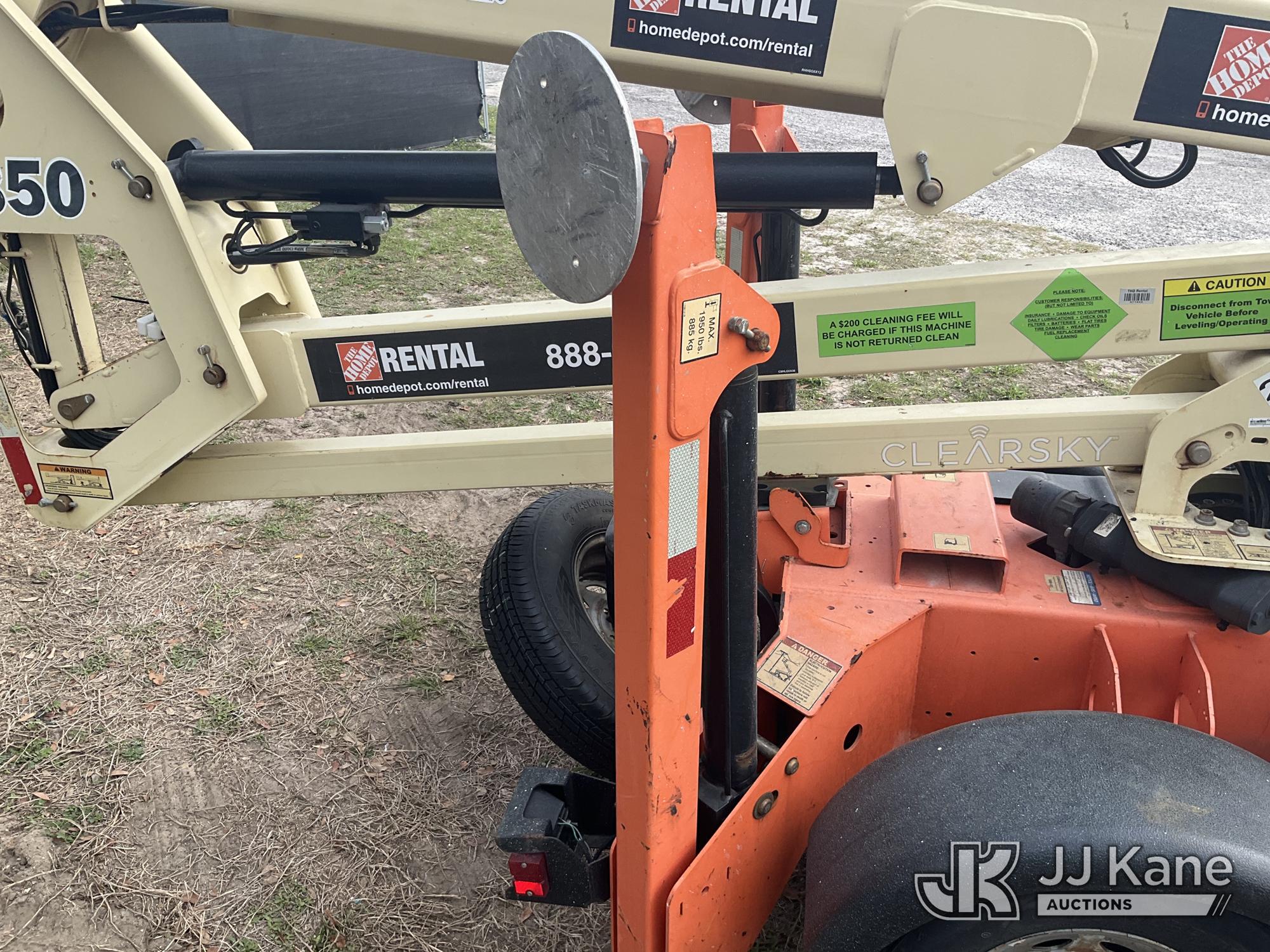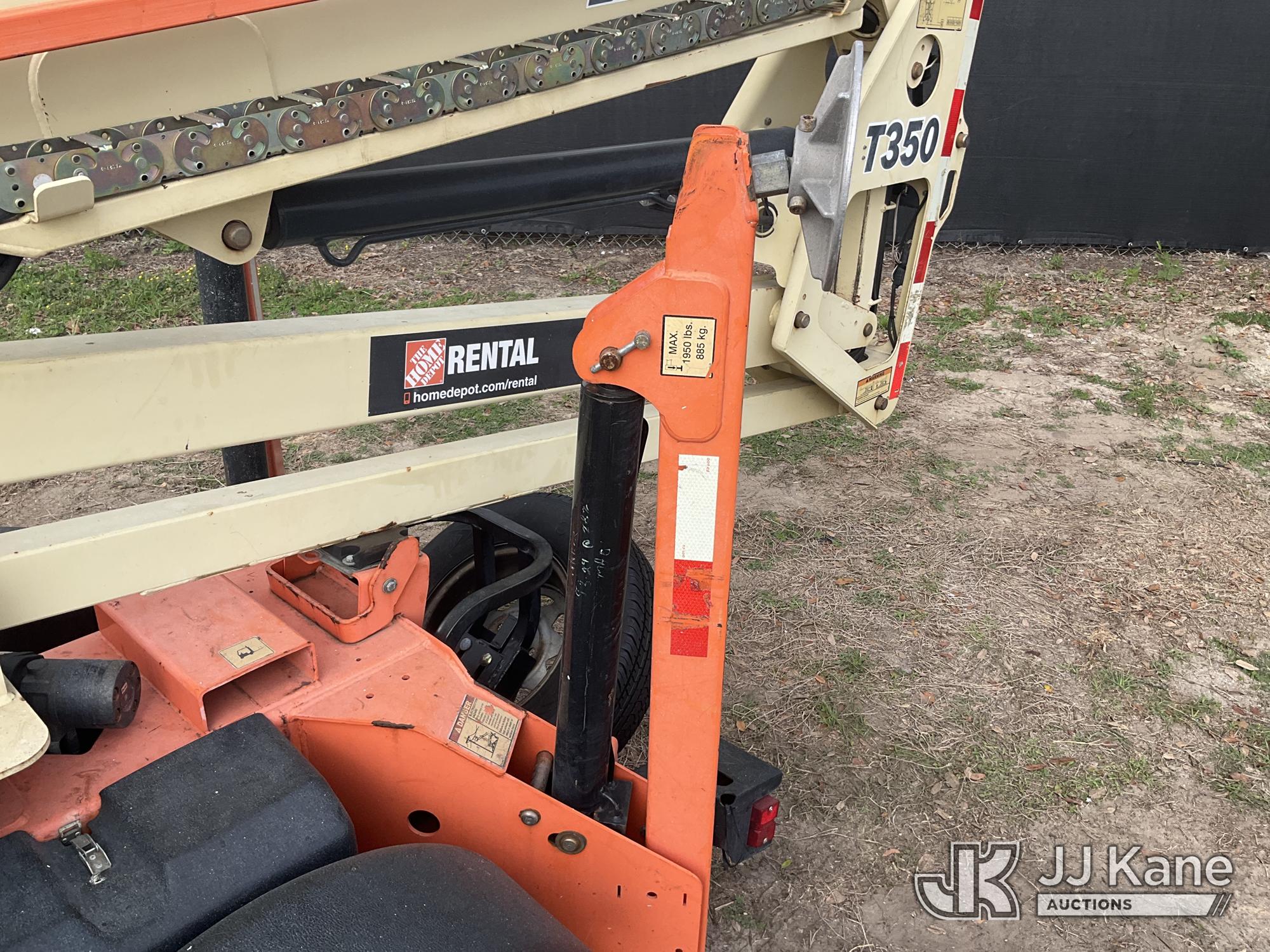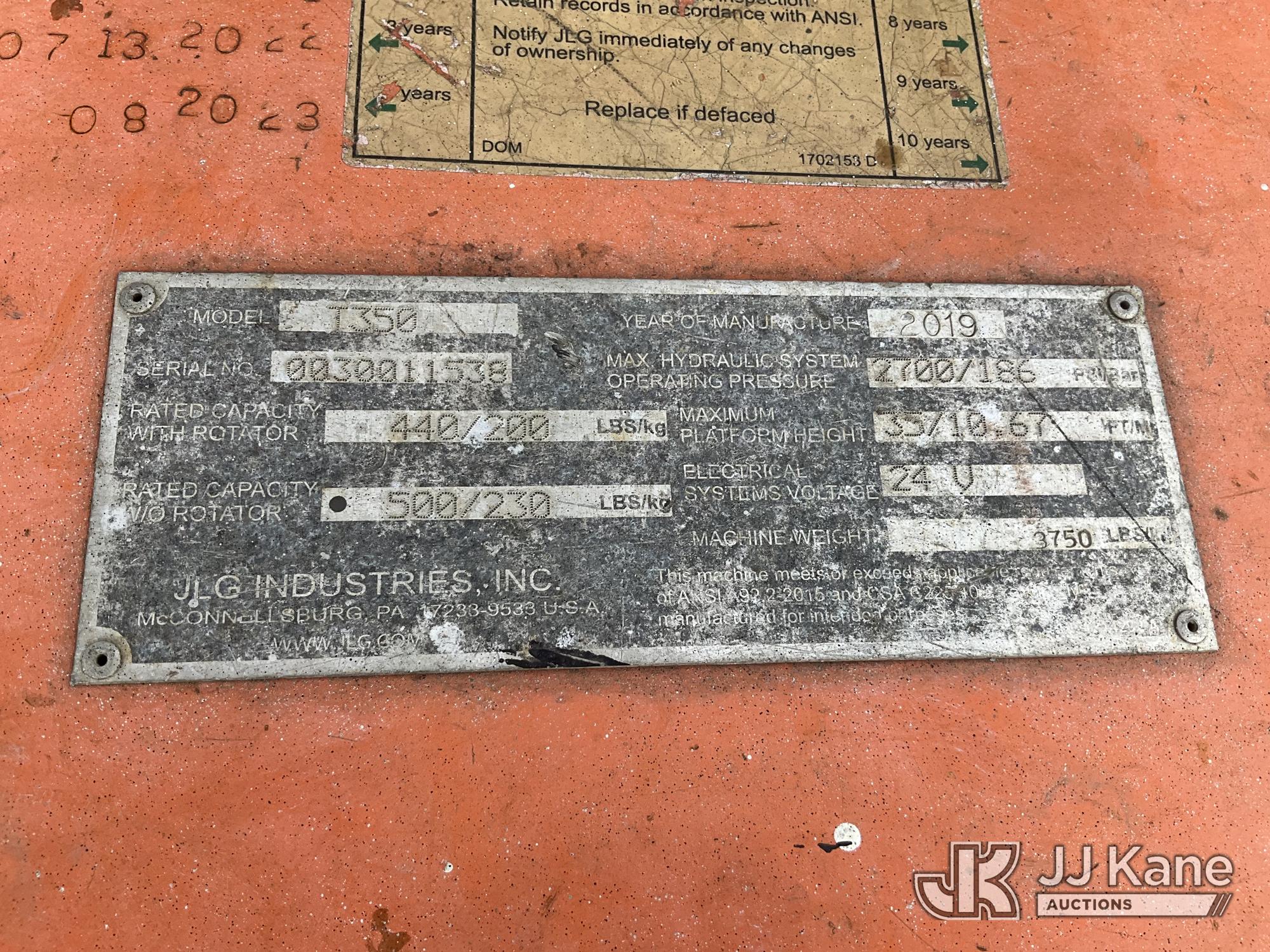 2019 JLG T350 Articulating & Telescopic Manlift, electric, with rated capacity with rotator: 440 lbs, rated capacity without rotator: 500 lbs, maximum platform height: 35 ft, Trailer Mounted (Operates)(FL Residents Purchasing Titled Items – tax, title & registration fees will be collected at the maximum rate of $400.00 under 25,999 and $800.00 for Over 26,000 and $250.00 trailers – Proof of insurance is mandatory; Out of State Residents Purchasing Title Items – tax will be collected based upon your state rate.) (Reads 362 hours) This is a Titled Item*