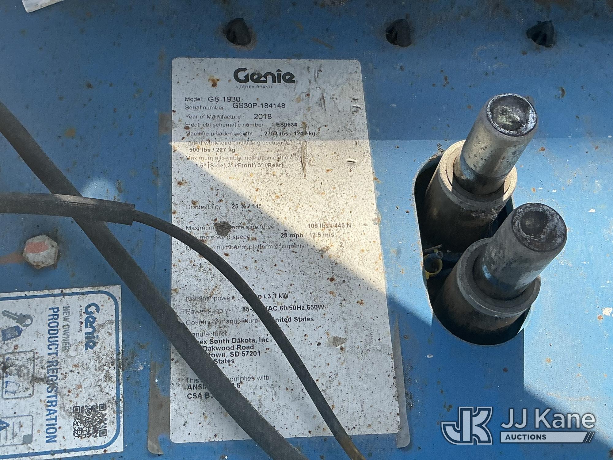 2018 Genie GS-1930 Self-Propelled Scissor Lift, s/n GS30P-184148, electric, Hydrostatic, (Runs, Moves, Operates) (Reads 216 hours)*