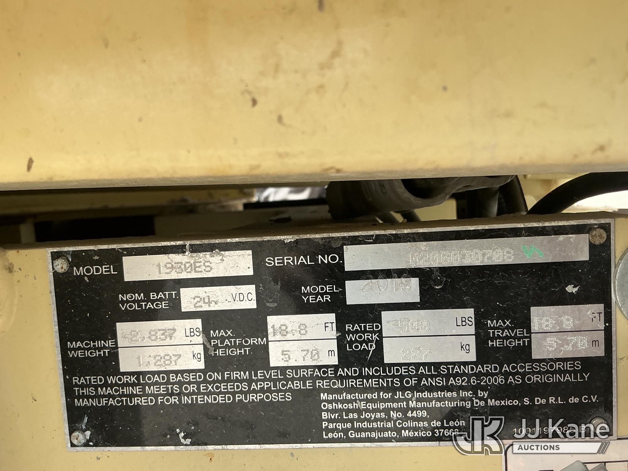 2019 JLG 1930ES Self-Propelled Scissor Lift, s/n M200030708, electric, Hydrostatic, (Runs, Moves, Operates) (Reads 222 hours)*