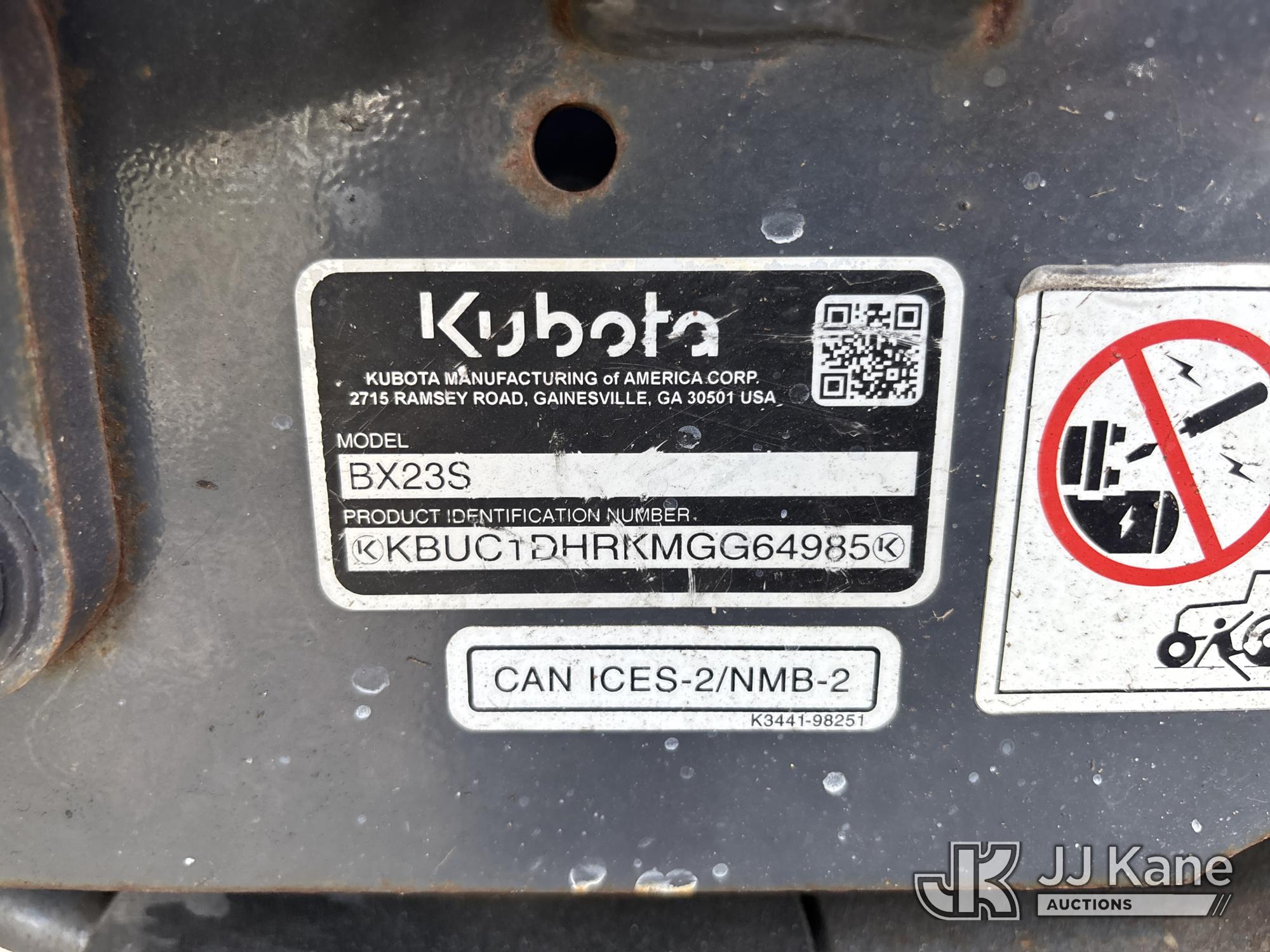 2021 Kubota BX23S Mini Tractor Loader Backhoe, s/n 64985, Kubota diesel, Hydrostatic, with 4 Ft Front Bucket, ROPS, (Runs, Moves, & Operates) (Body & Paint Damage) (Reads 524 hours)*