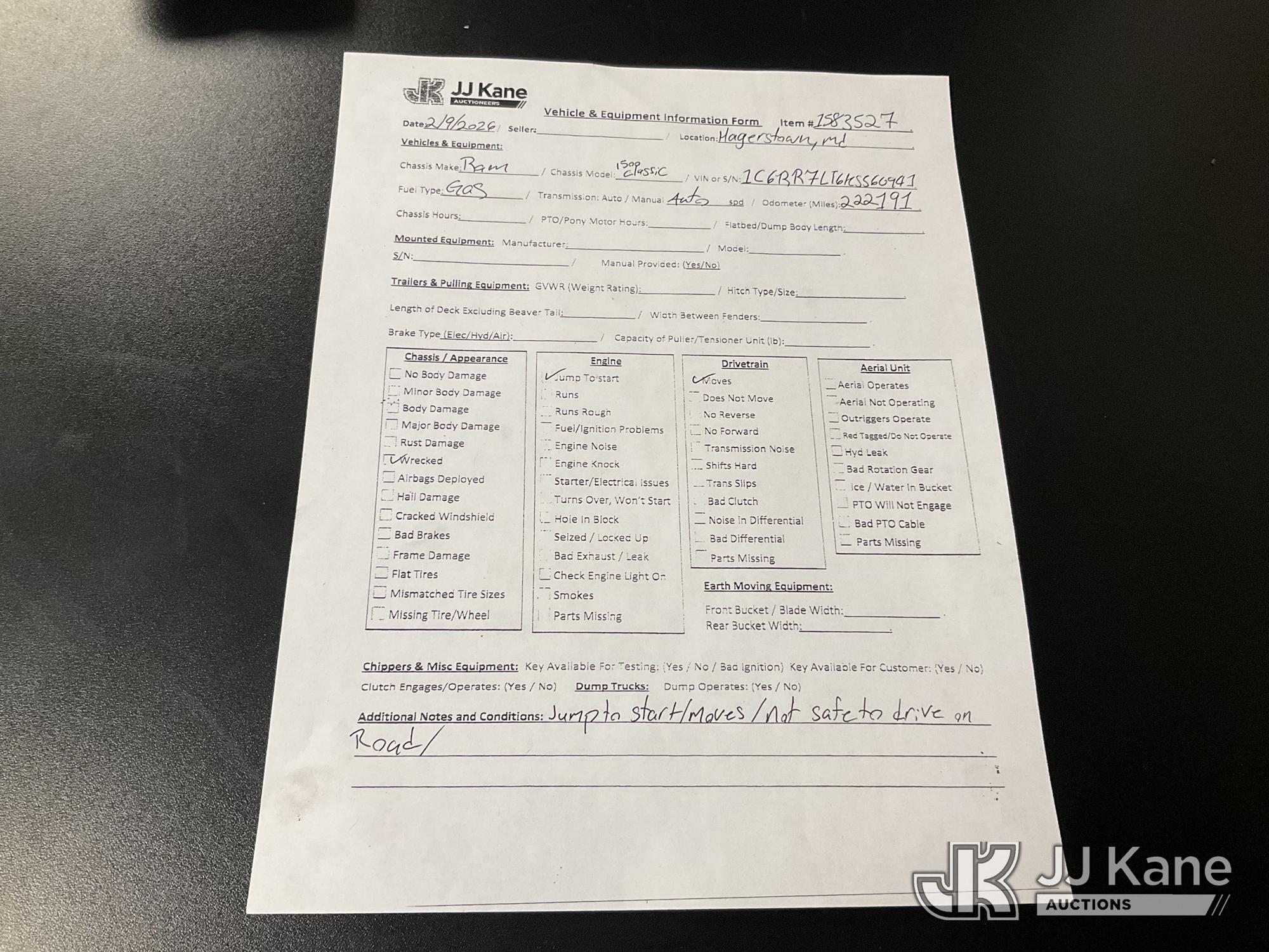 2019 RAM 1500 Classic 4x4 Crew-Cab Pickup Truck, 5.7L V8 Gas, 8-Speed Automatic, A/C, (222,191 miles) (Runs & Moves, Major Front End Damage, Must Tow) (Removal is by Appointment Only, Buyer MUST make a appointment prior to picking up, Buyer/Transporter Must have PAID IN FULL RELEASE. No onsite assistance available, Please Come prepared.) This is a Titled Item*
