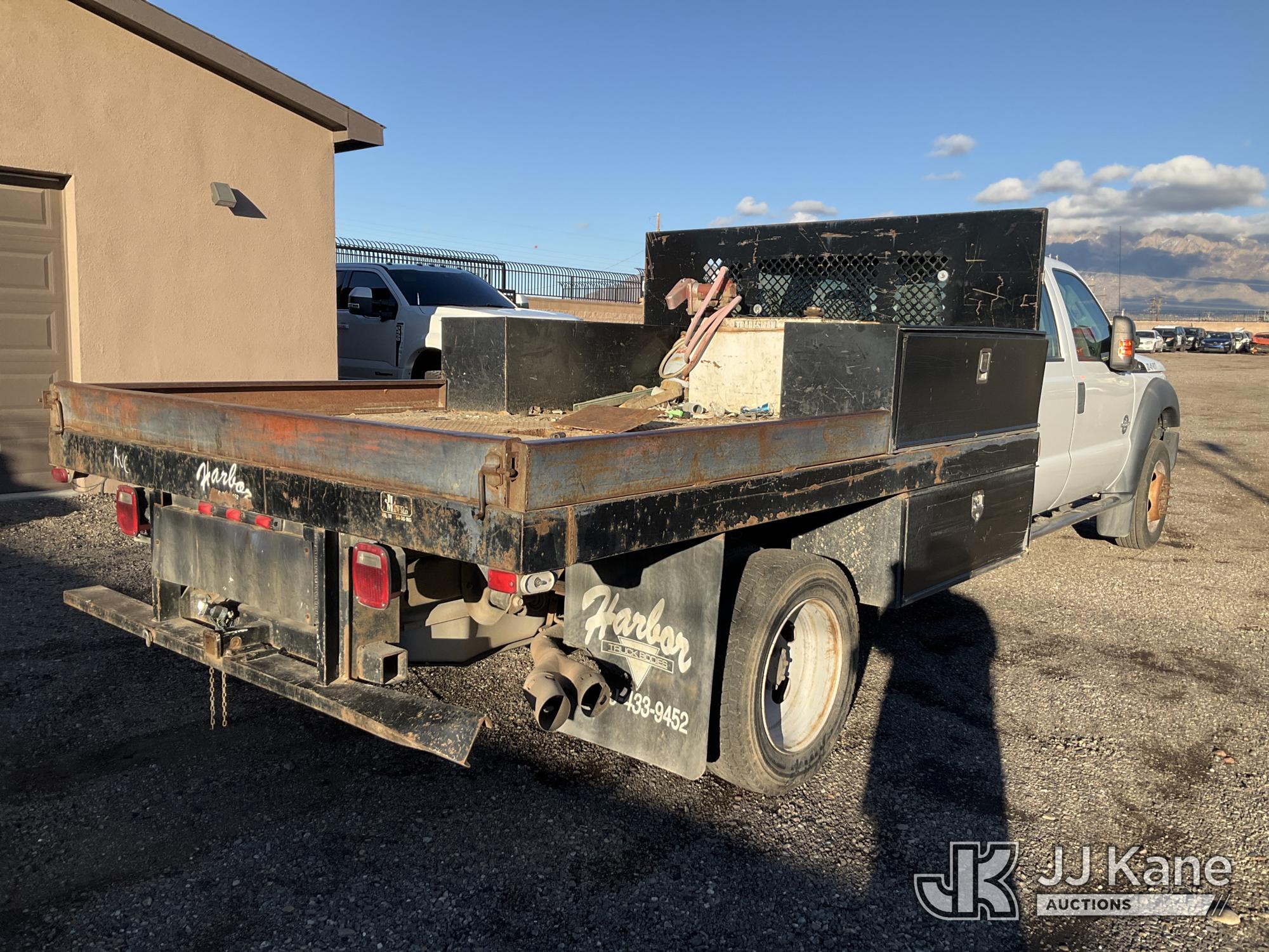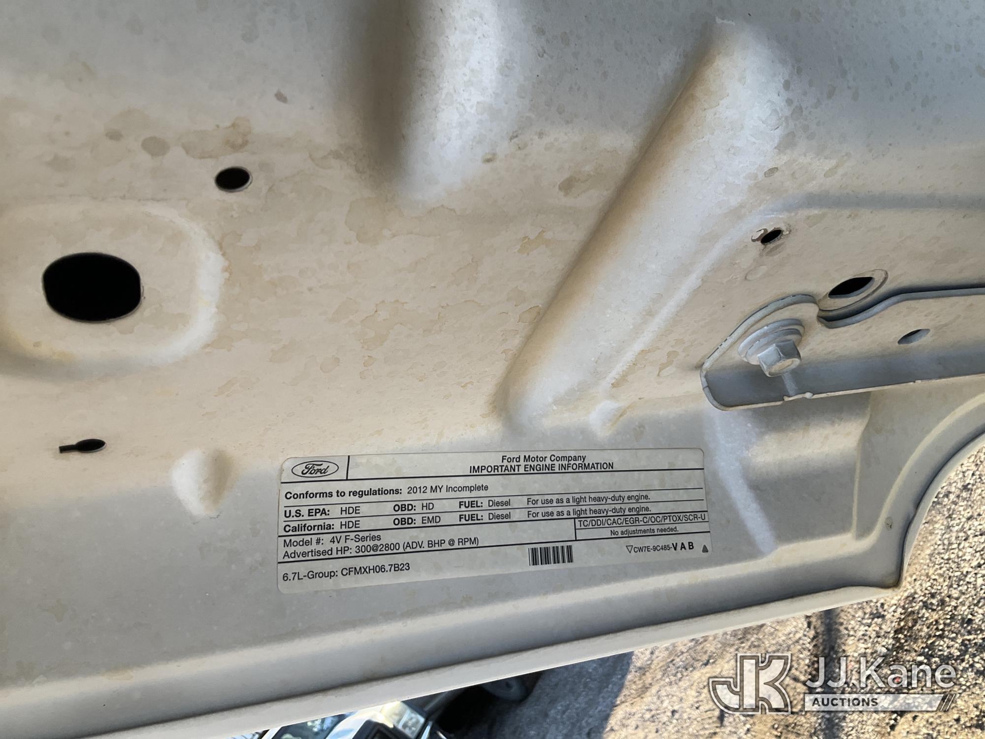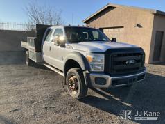 2012 Ford F450 4x4 Crew-Cab Flatbed Truck, 6.7L V8 OHV 16V diesel, Auto, A/C, with aux fuel tank w/ pump, (106,861 miles) (Runs & Moves) (Body Damage) This is a Titled Item*