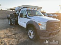 2013 Ford F550 Flatbed Truck, 6.7L V8 OHV 16V diesel, RWD, Auto, A/C, (209,365 miles) (Runs & Moves) (Check Engine Light On, Driver Side Seat Worn Out, Body Damage) This is a Titled Item*