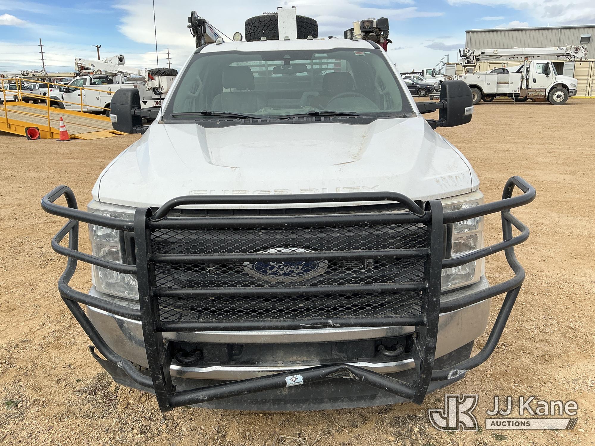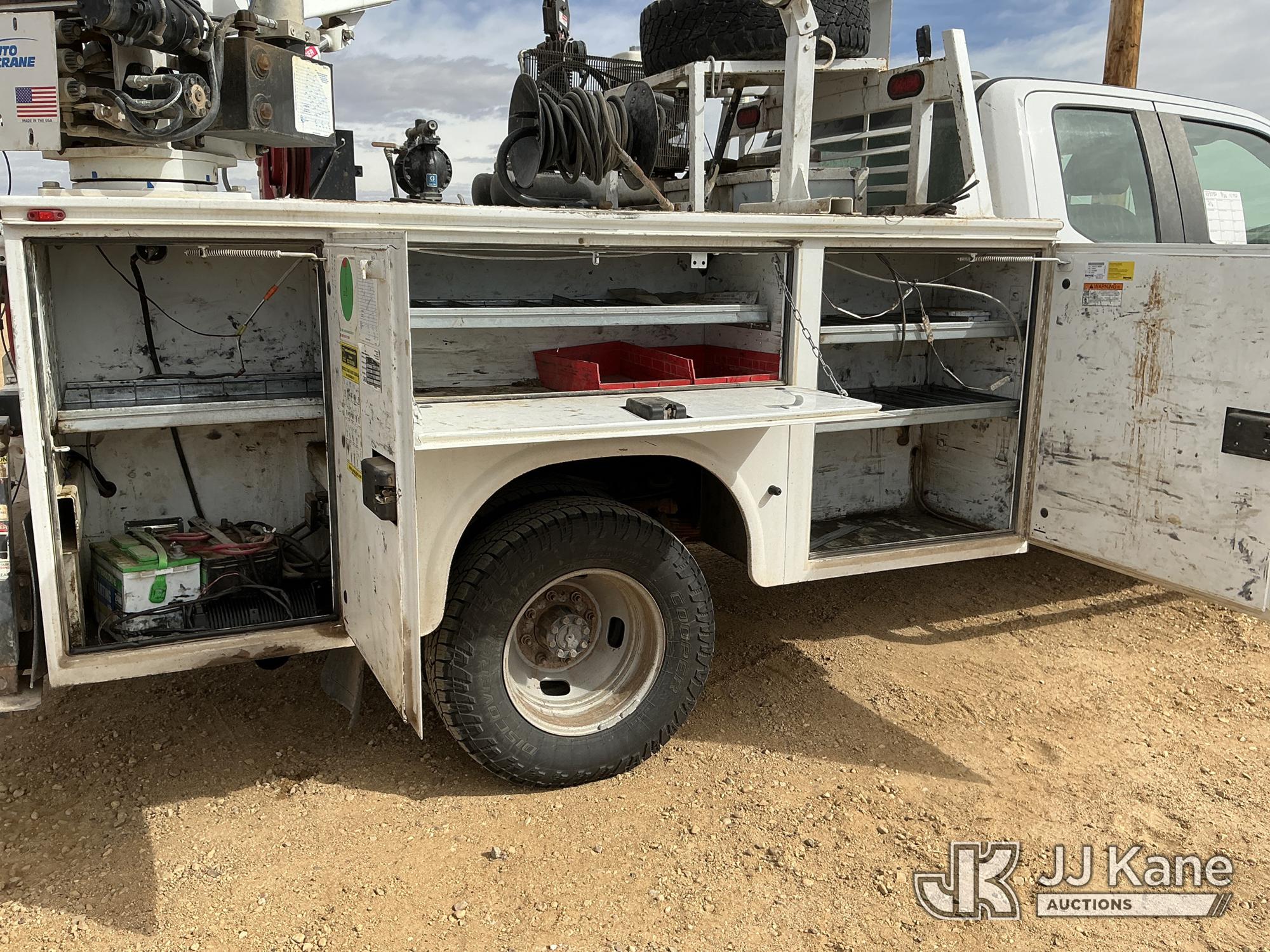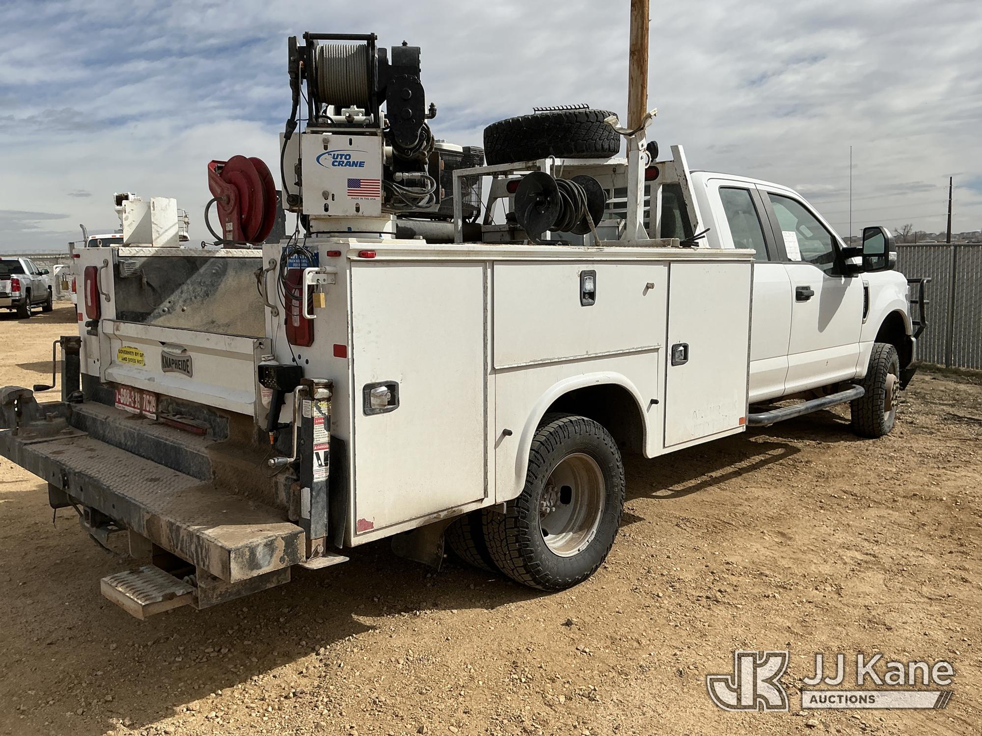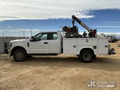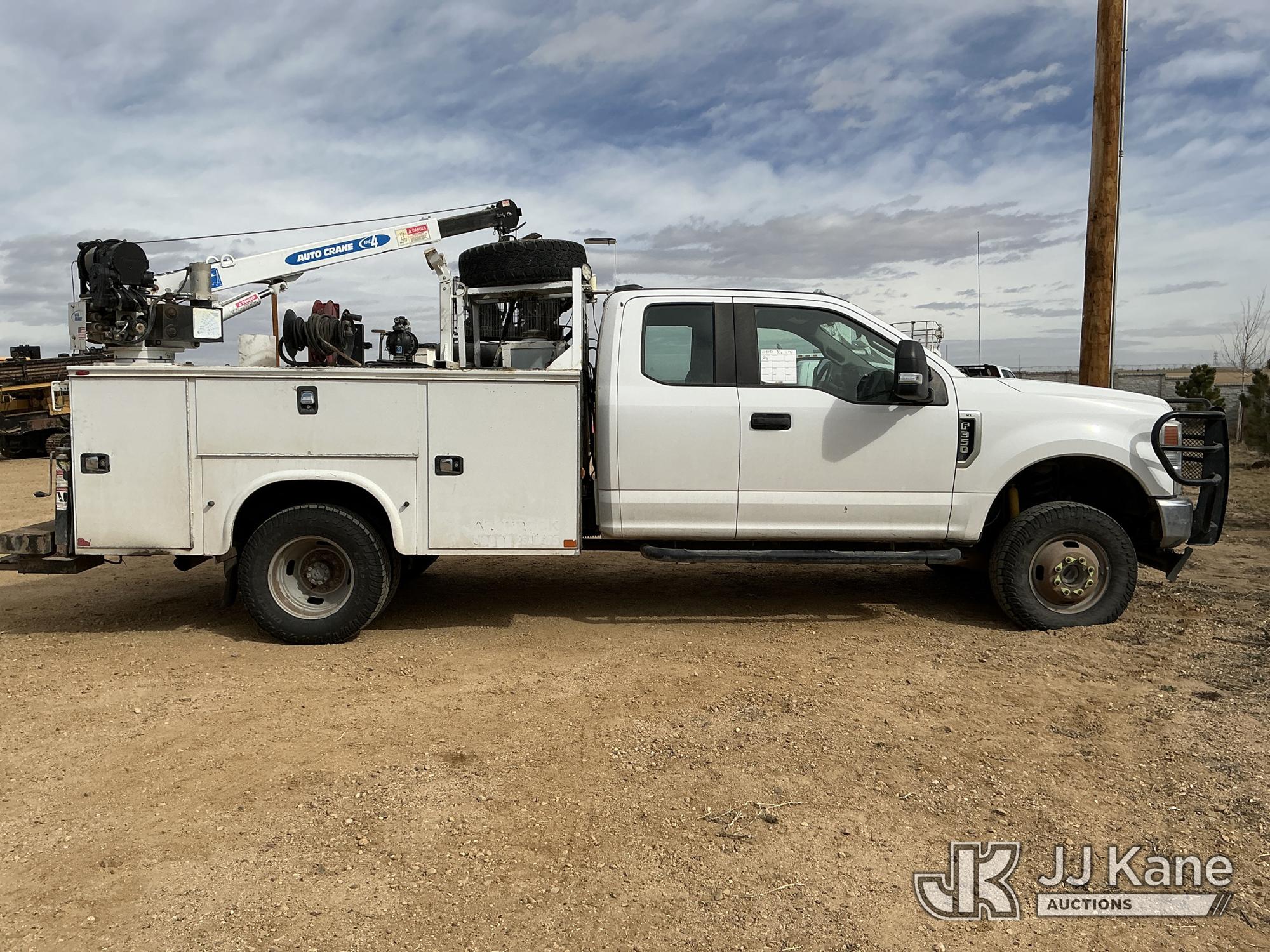 s/n 1397045, with Auto Crane R160 , 2020 Ford F-350 SD Extended-Cab Mechanics Service Truck, 8-cyl gas, 4wd, 6-Speed Automatic, A/C, with Heavy Duty Front Bumper w/ Grill Guard, Auto Crane EHC4 w/ Remote Control, Air Compressor, (131,350 miles) (Runs, Moves & Crane Operates) (Cracked Windshield, Engine Noise, Runs Rough, Low Oil Pressure, Service Advance Track & Check Brake System Lights On, Reverse Lights Do Not Operate) (No Emissions Provided, See Bidder Agreement) (Non Drive Away Removal Only: Fails Safety Inspection) (Reads 7,092 hours) This is a Titled Item*