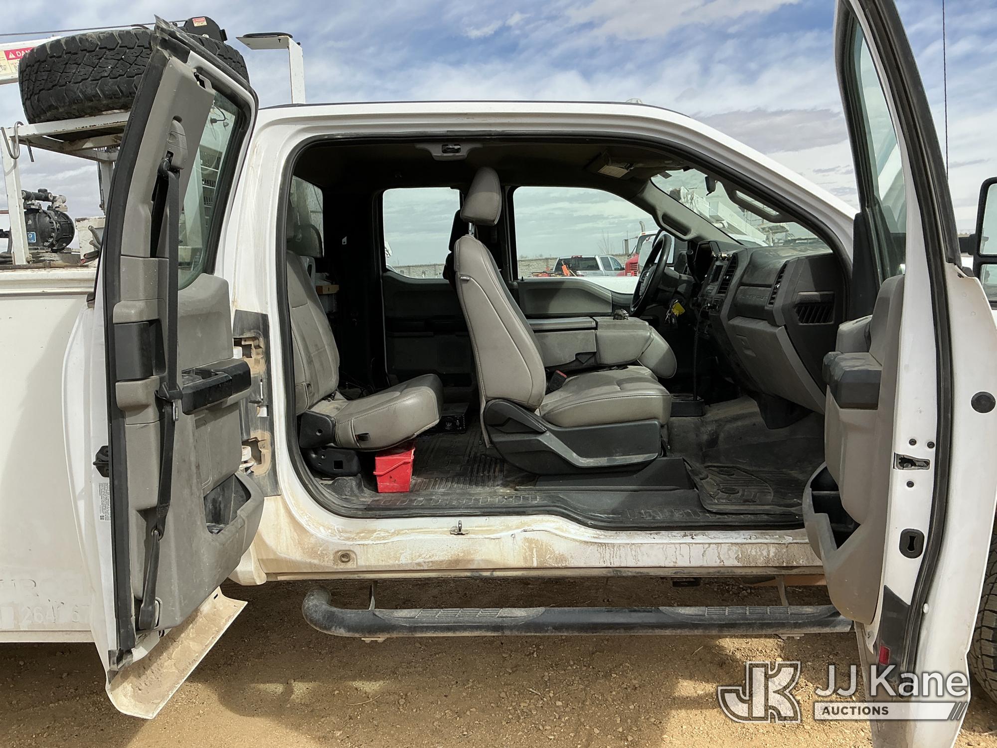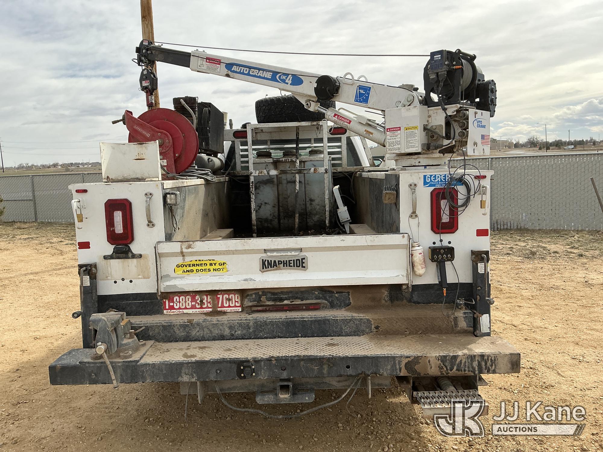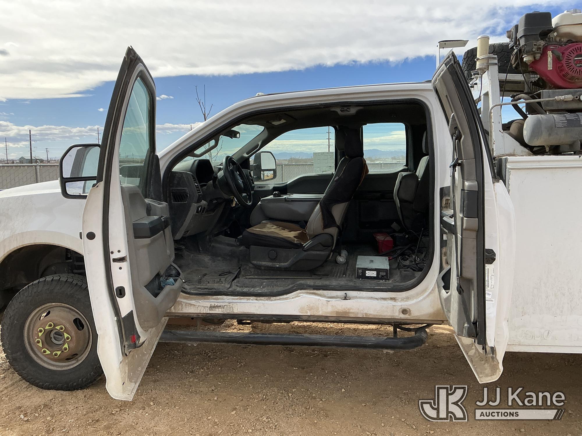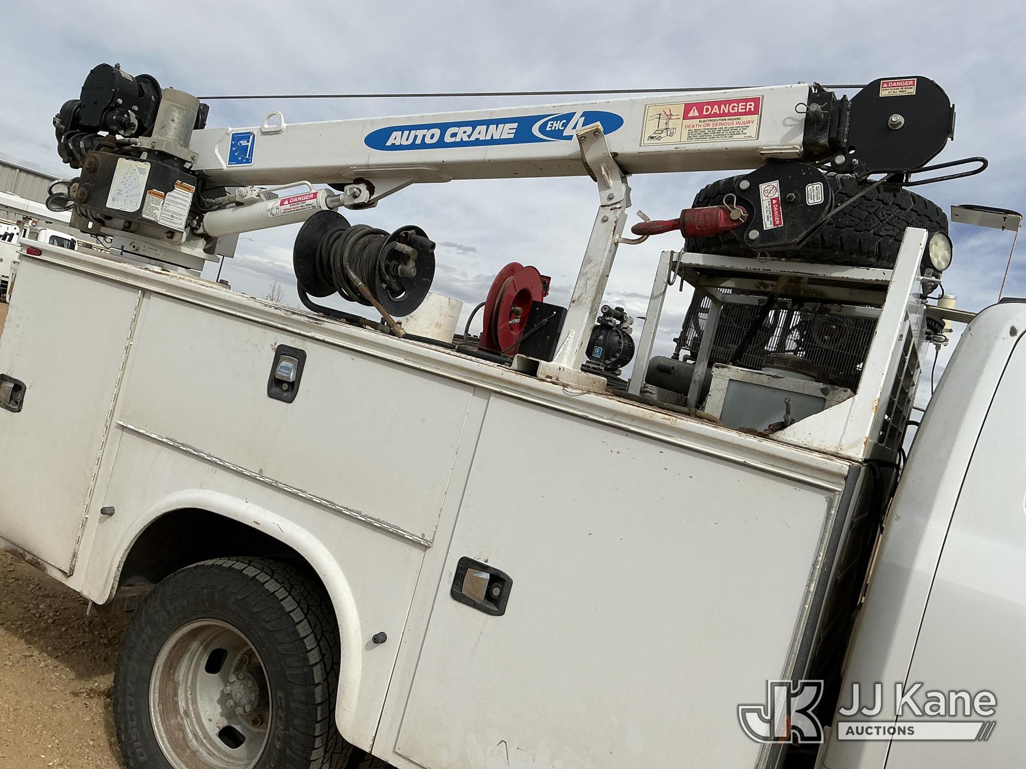 s/n 1397045, with Auto Crane R160 , 2020 Ford F-350 SD Extended-Cab Mechanics Service Truck, 8-cyl gas, 4wd, 6-Speed Automatic, A/C, with Heavy Duty Front Bumper w/ Grill Guard, Auto Crane EHC4 w/ Remote Control, Air Compressor, (131,350 miles) (Runs, Moves & Crane Operates) (Cracked Windshield, Engine Noise, Runs Rough, Low Oil Pressure, Service Advance Track & Check Brake System Lights On, Reverse Lights Do Not Operate) (No Emissions Provided, See Bidder Agreement) (Non Drive Away Removal Only: Fails Safety Inspection) (Reads 7,092 hours) This is a Titled Item*