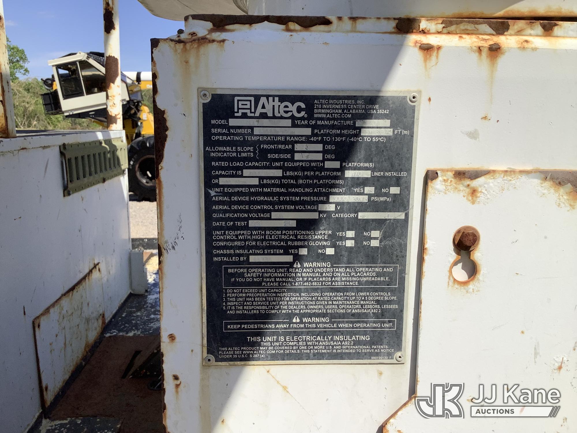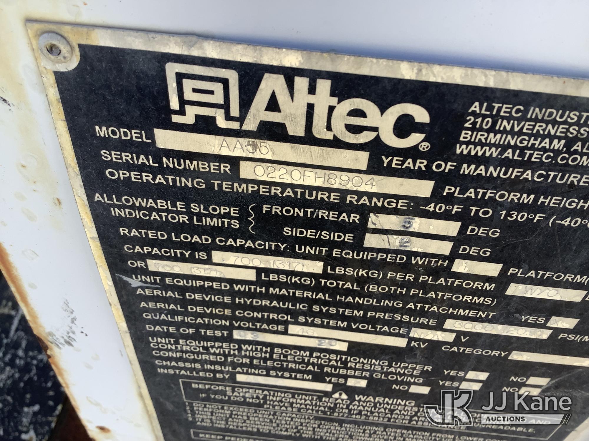 Altec AA55, 60 ft, Material Handling Bucket Truck s/n 0220FH8904, with single-man bucket & 4 hyd outriggers, rear mounted on 2020 Freightliner M2 Utility Truck, Cummins 6.7L diesel, Auto, A/C, (59,804 miles) (Runs, Moves & Upper Operates) This is a Titled Item*