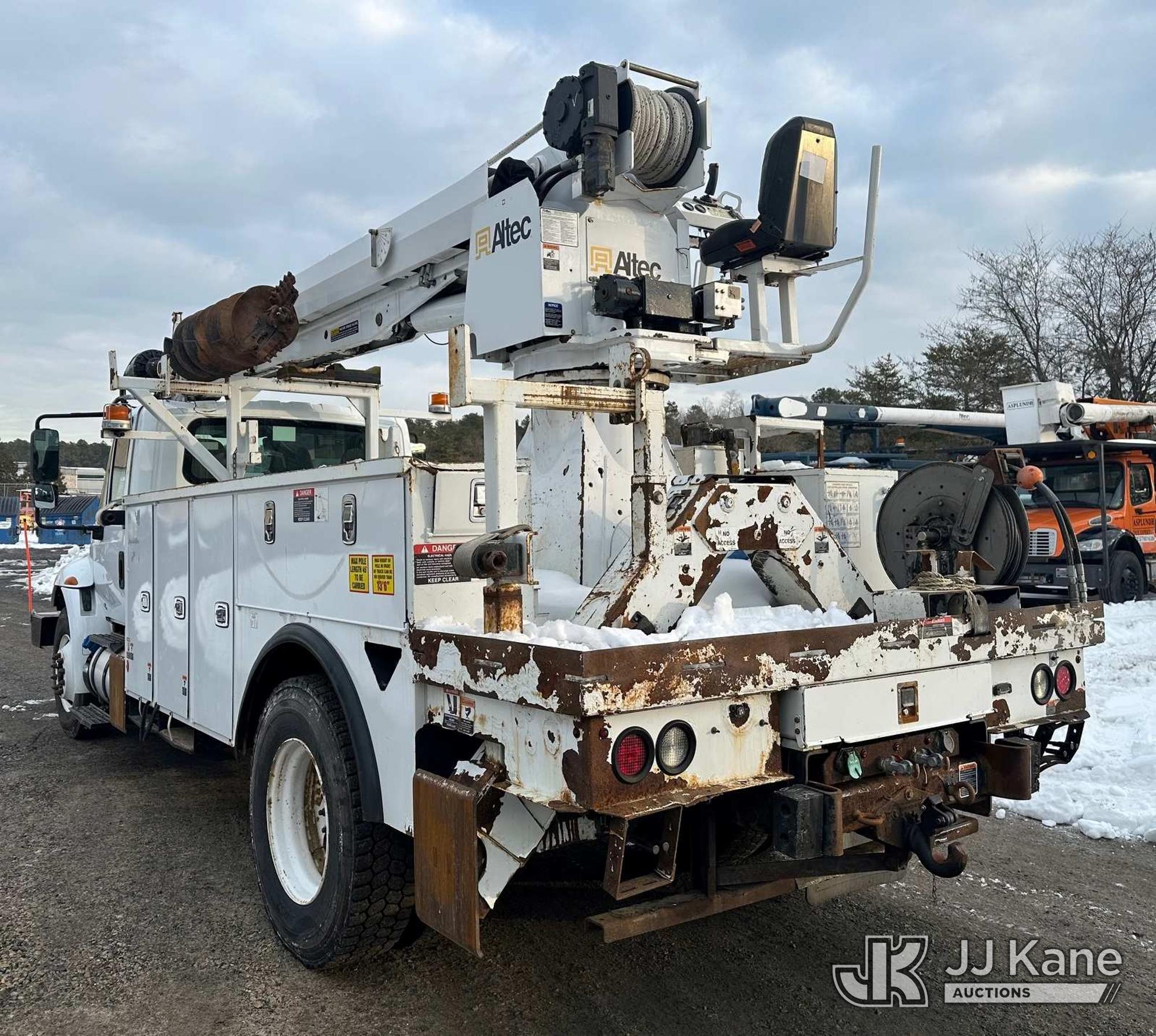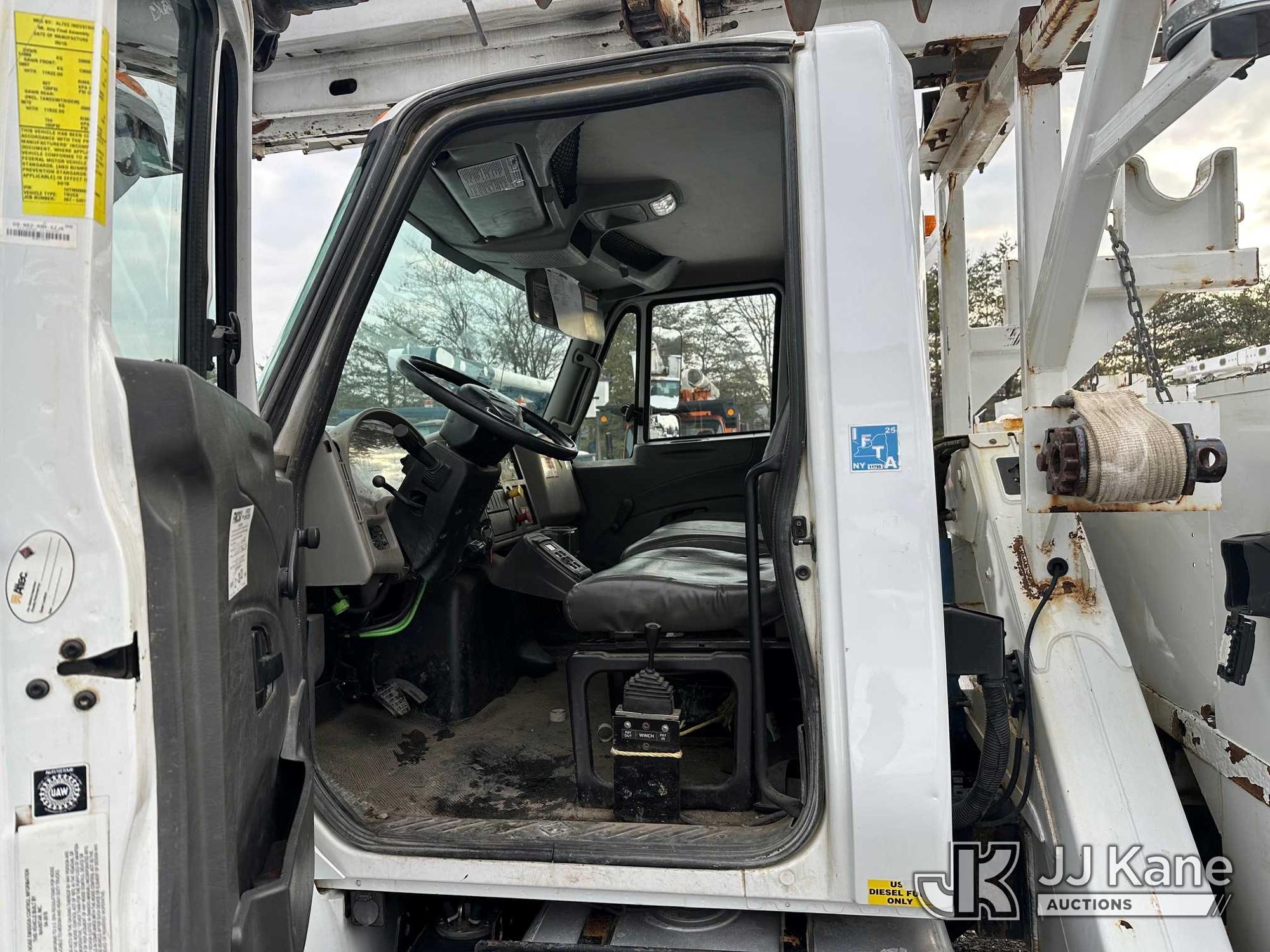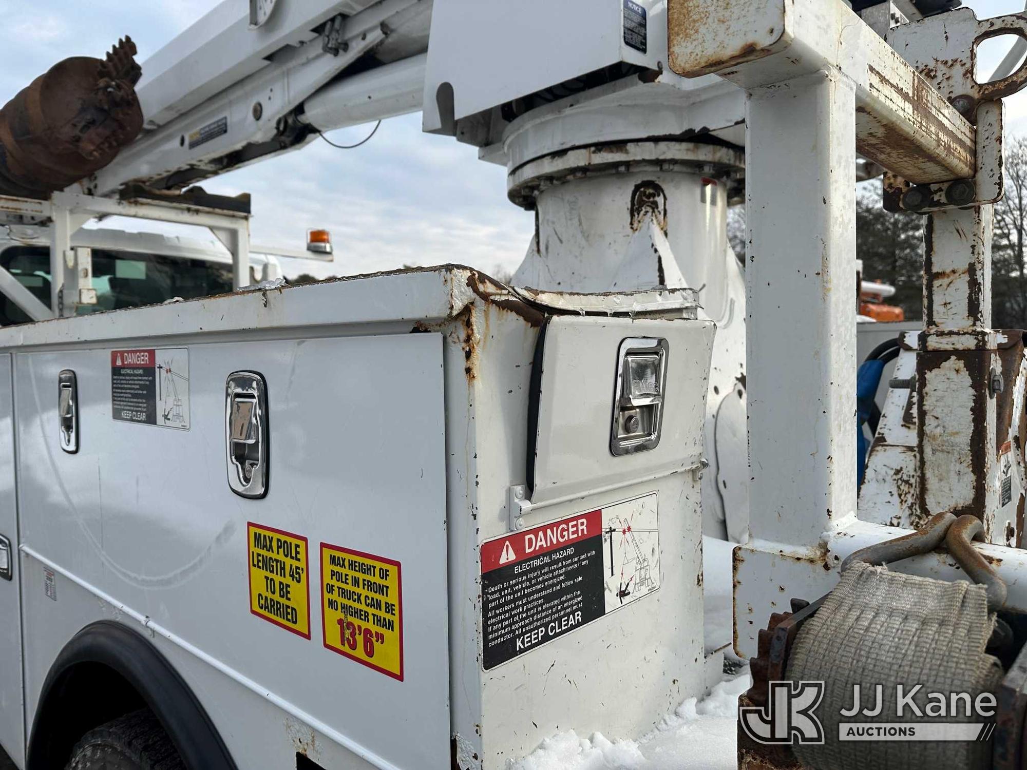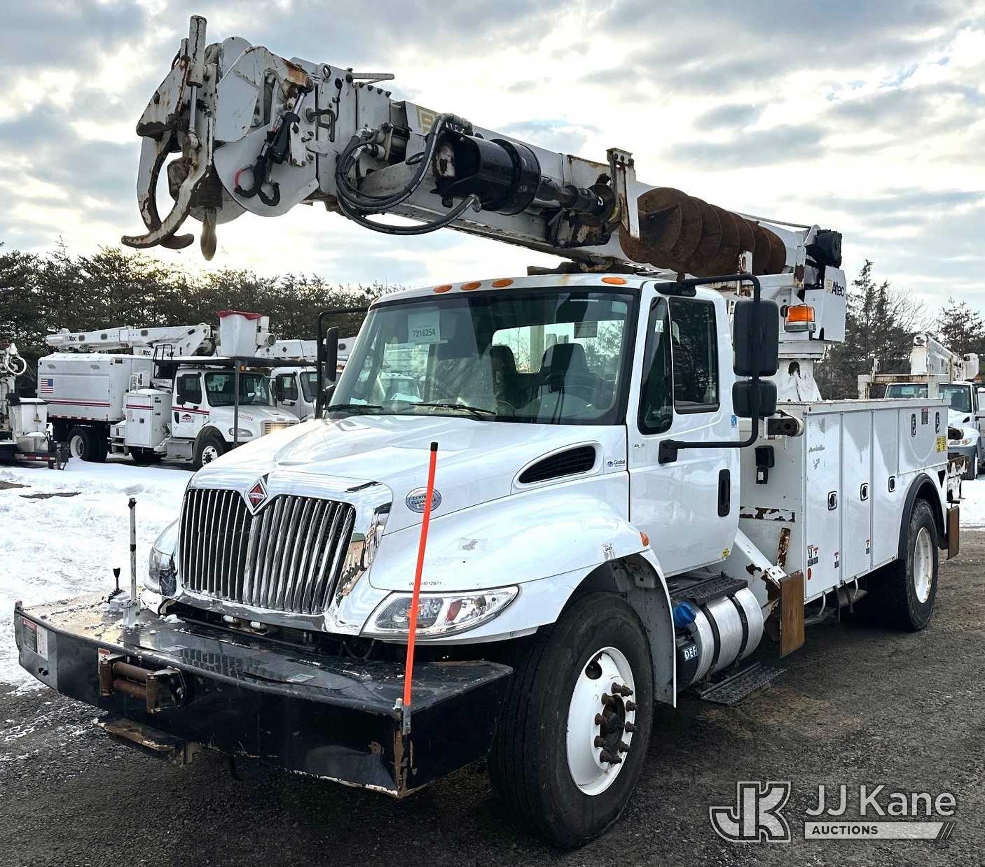 Altec DM47B-TR, 23,790 Lb Digger Derrick s/n 0418FR4065, with 47 ft. sheave height, 3 section hyd boom, 2 spd digger, heel winch, pole guides, riding console & 4 hyd outriggers, rear mounted on 2019 International 4300 Utility Truck, 6.7L diesel, 4X2, Auto, A/C, with front winch, capstan, (66,583 miles) (Jump To Start, Runs, Moves, Shifts Hard, Trans Slips, Upper Not Operating, PTO Will Not Engage, ABS Light On, Malfunction Indicator Light On, Transmission Slow To Respond, Body/Rust Damage) This is a Titled Item*