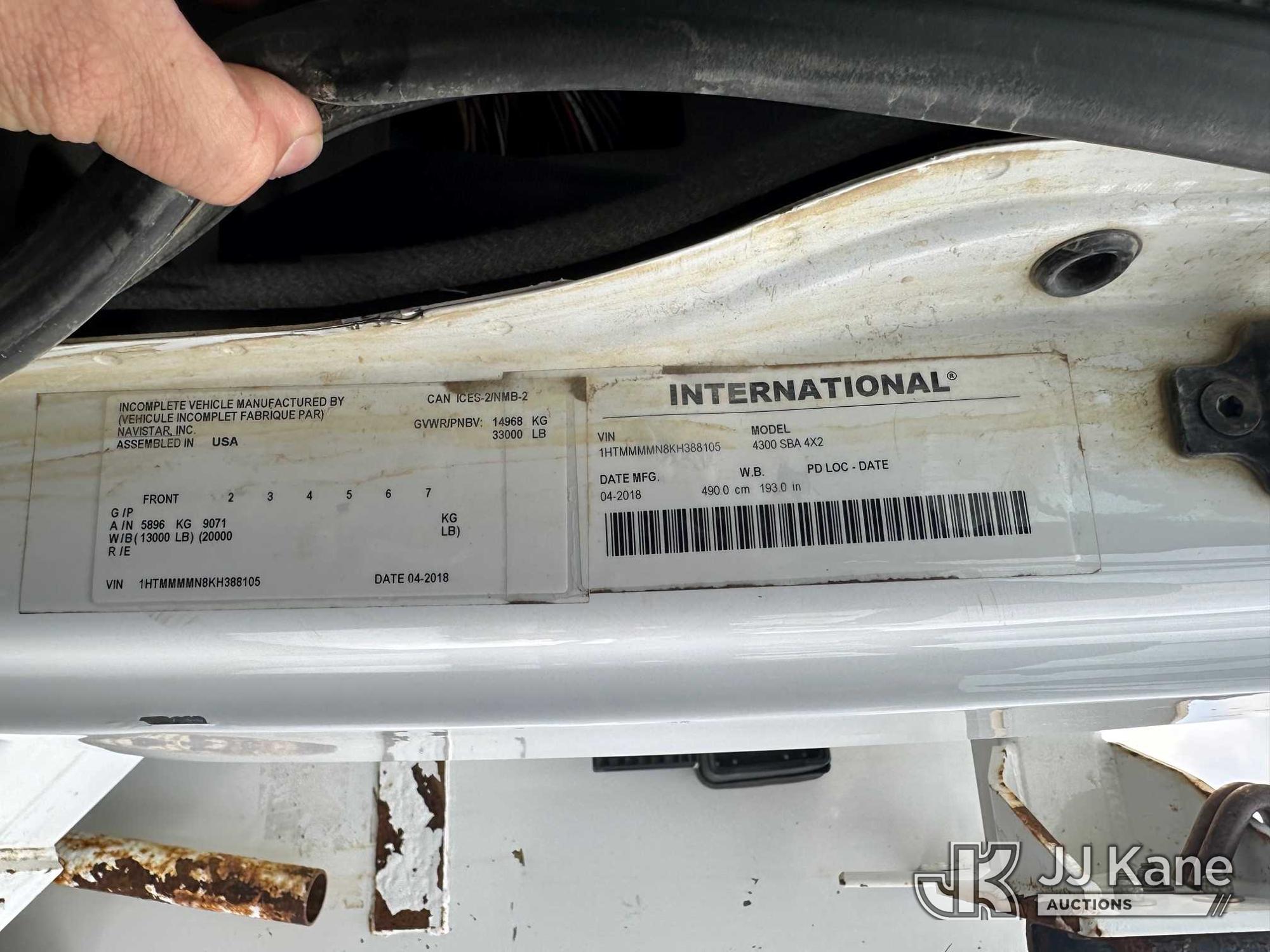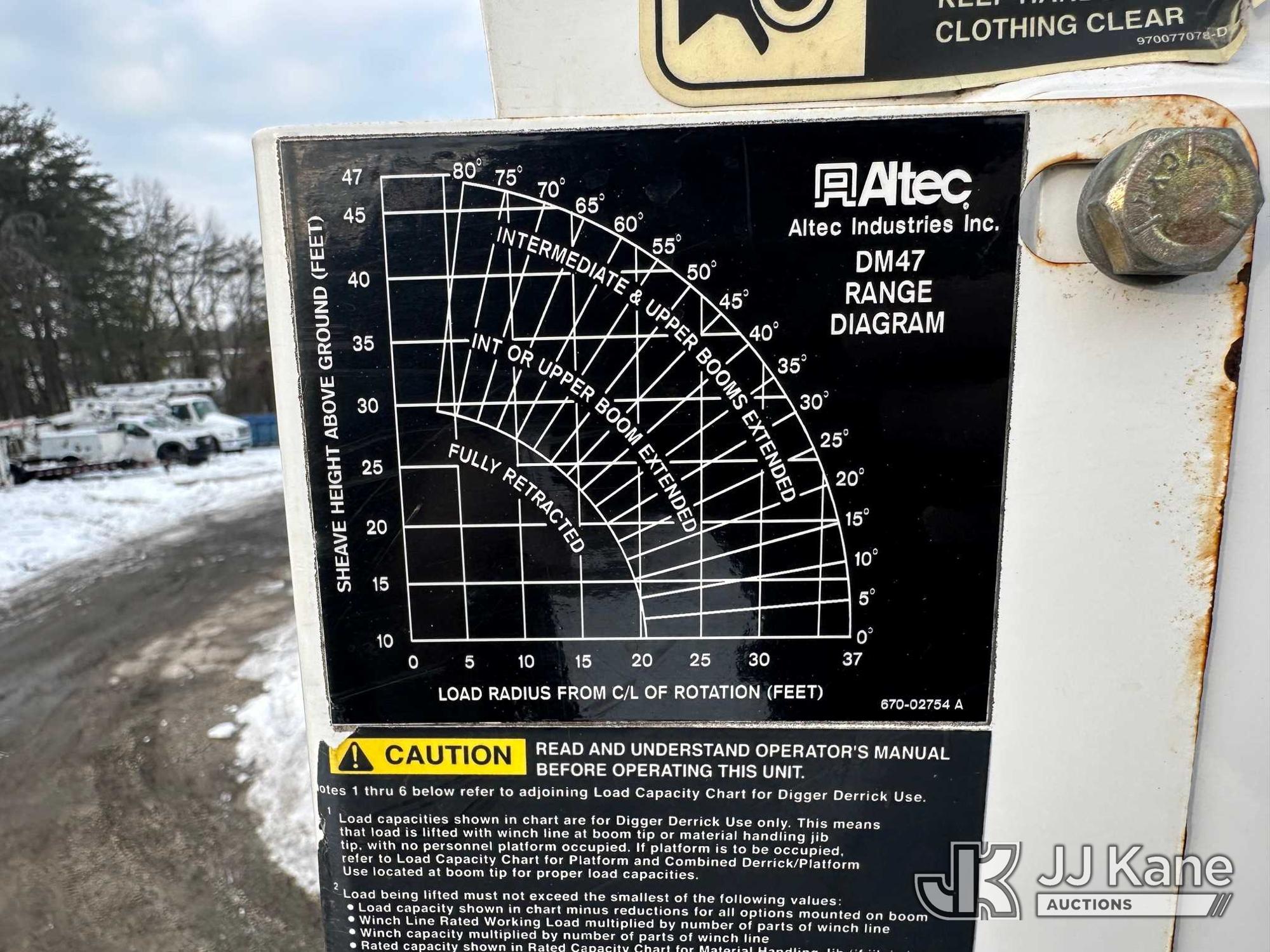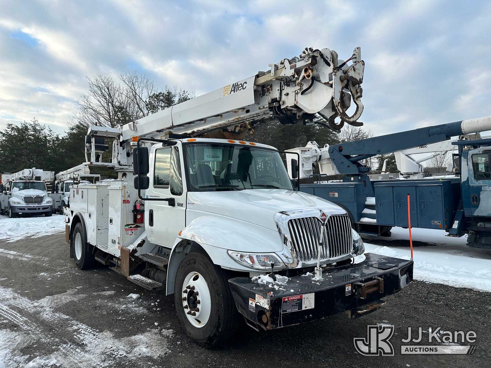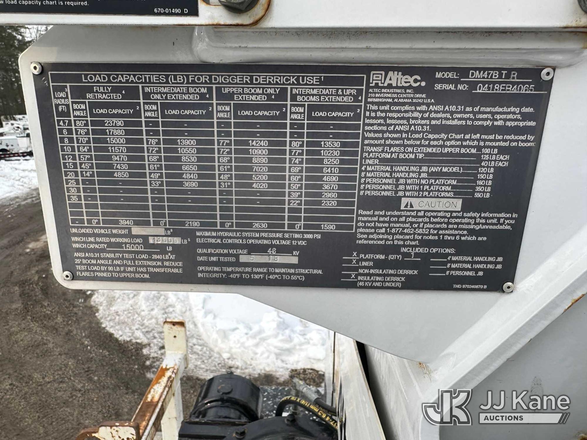 Altec DM47B-TR, 23,790 Lb Digger Derrick s/n 0418FR4065, with 47 ft. sheave height, 3 section hyd boom, 2 spd digger, heel winch, pole guides, riding console & 4 hyd outriggers, rear mounted on 2019 International 4300 Utility Truck, 6.7L diesel, 4X2, Auto, A/C, with front winch, capstan, (66,583 miles) (Jump To Start, Runs, Moves, Shifts Hard, Trans Slips, Upper Not Operating, PTO Will Not Engage, ABS Light On, Malfunction Indicator Light On, Transmission Slow To Respond, Body/Rust Damage) This is a Titled Item*