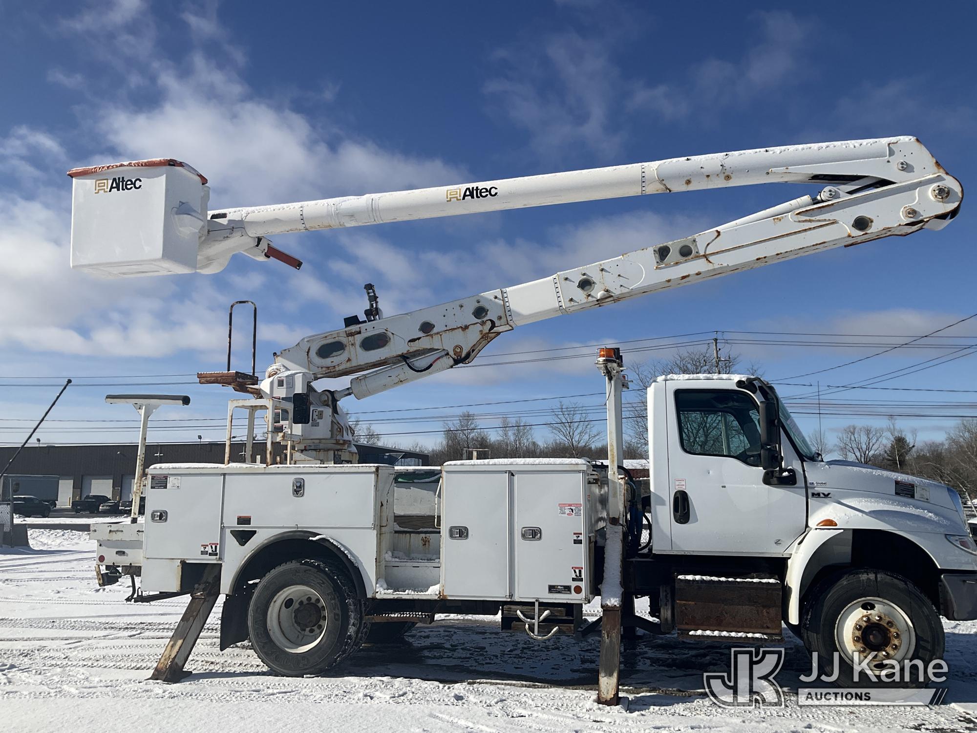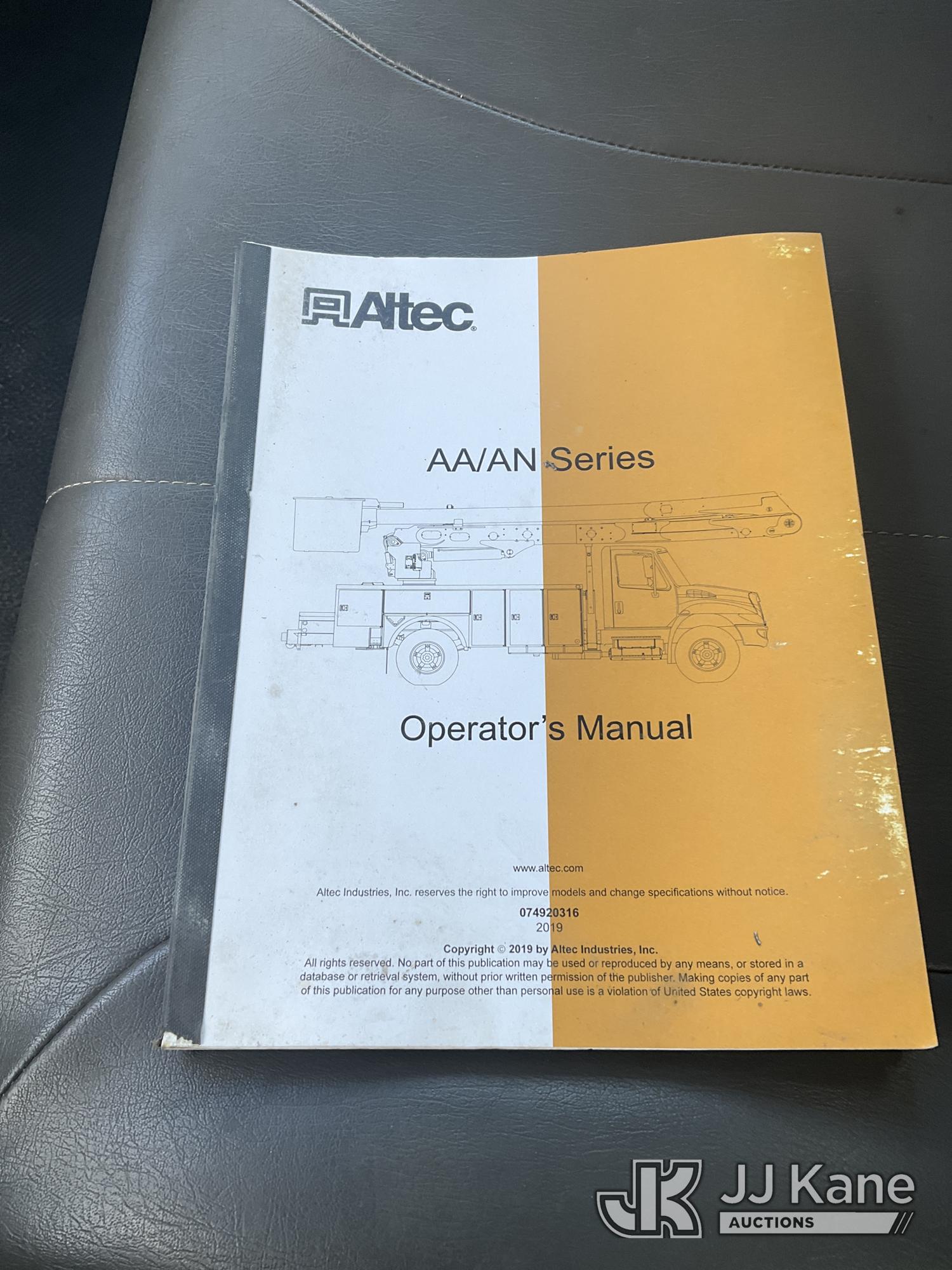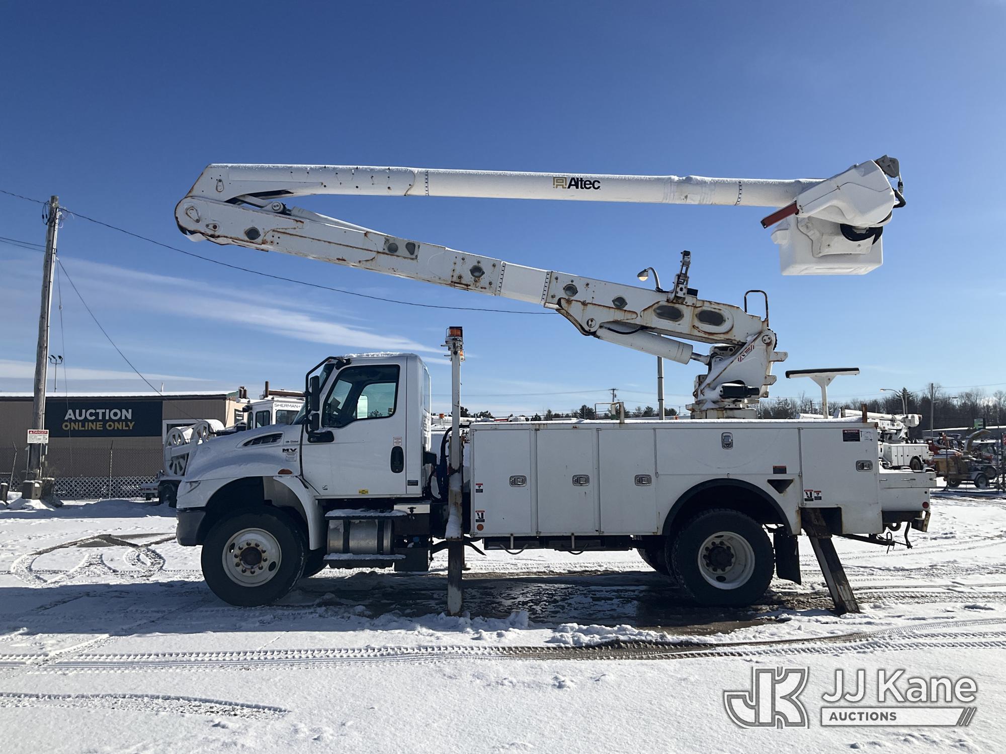 Altec AA55-MH, 60 ft, Material Handling Bucket Truck s/n 0219FH7508, with Two Man Bucket & 4 Outriggers , rear mounted on 2020 International MV607 Utility Truck, Cummins 6.7L diesel, Auto, A/C, (82,654 miles) (Runs, Moves & Upper Operates) This is a Titled Item*
