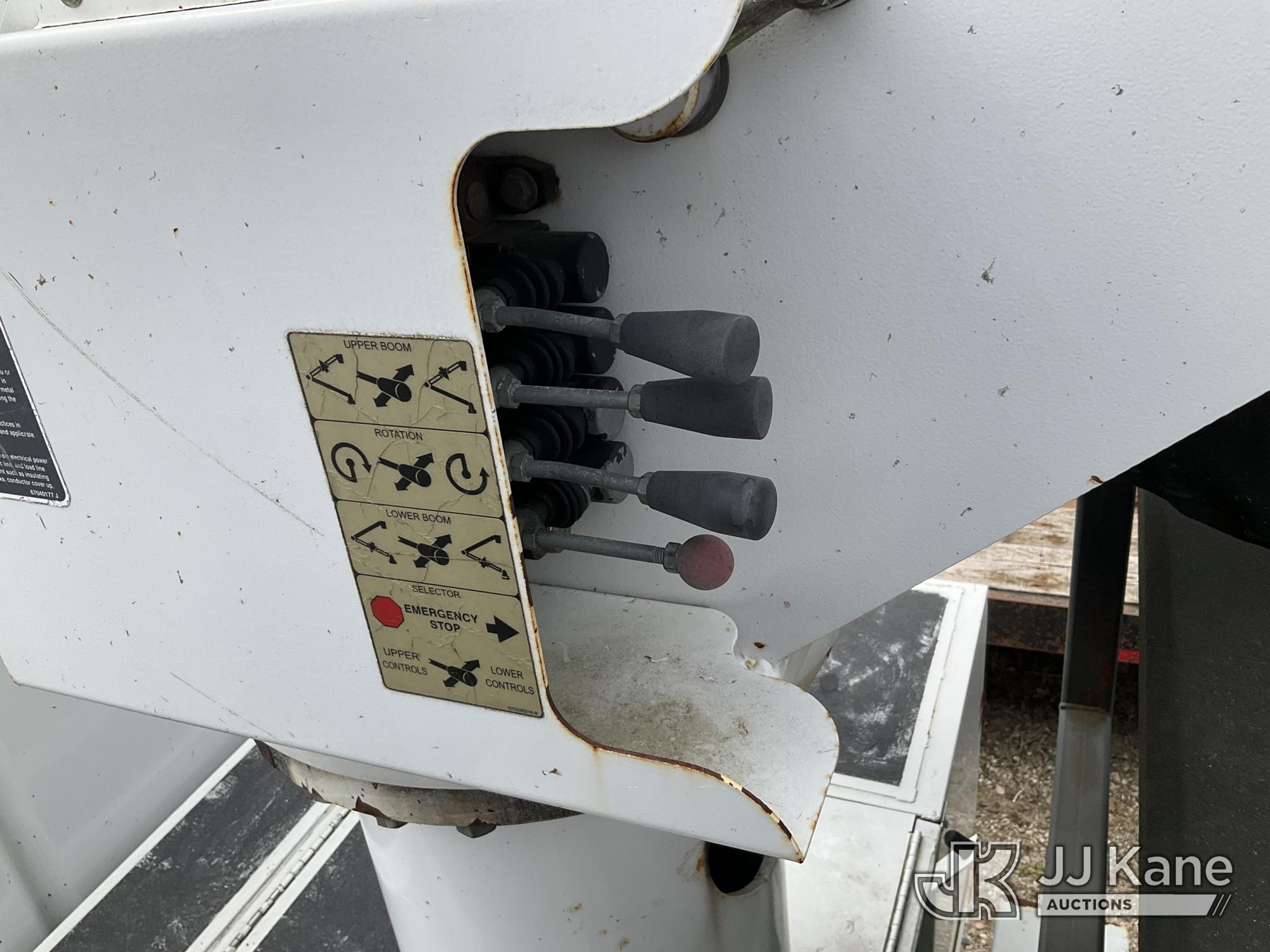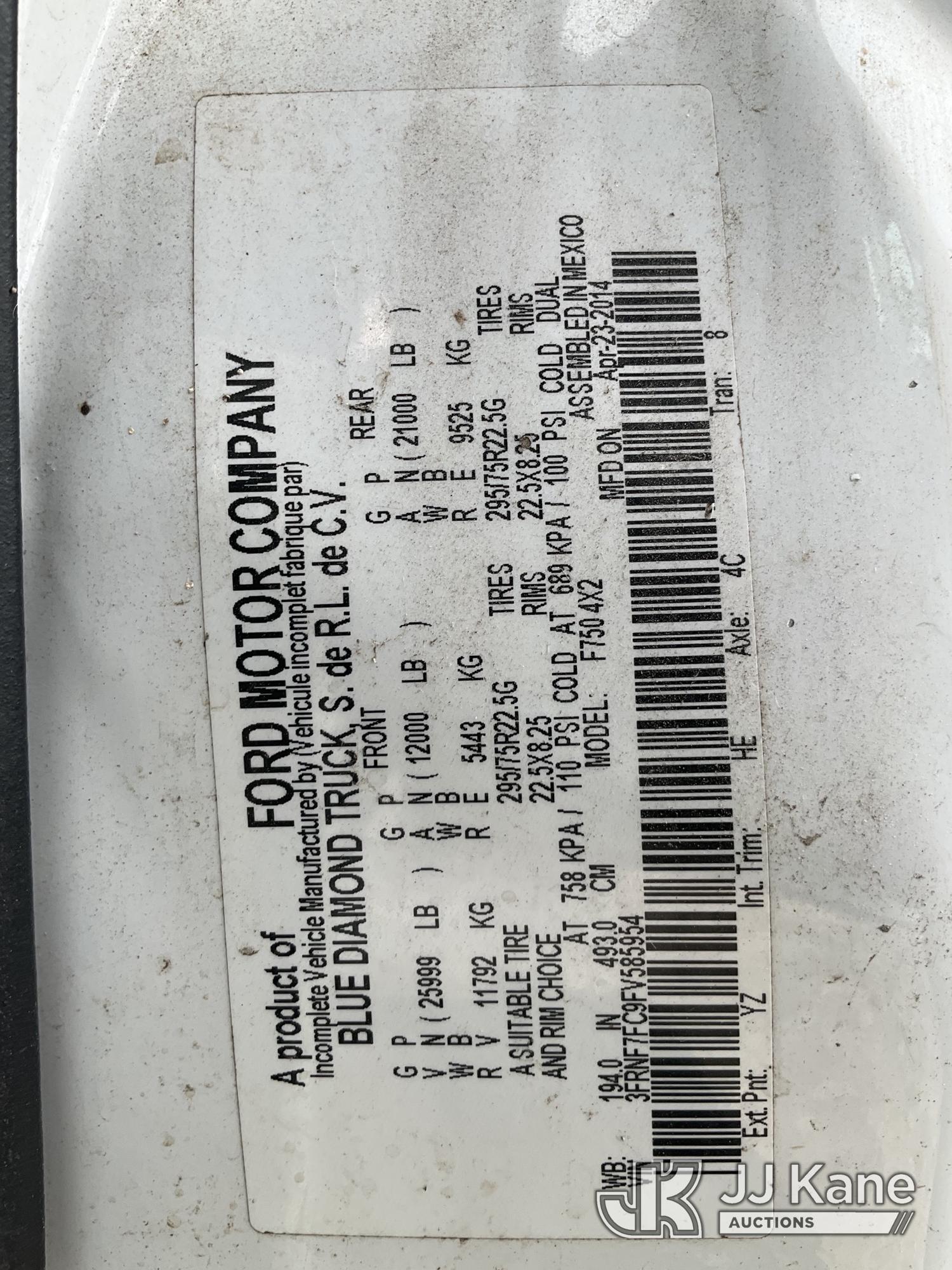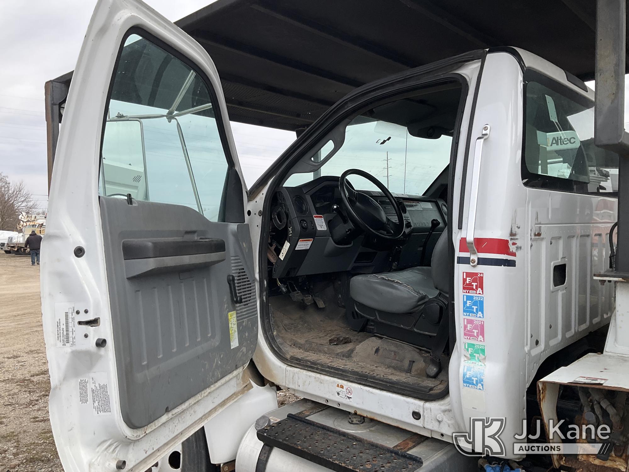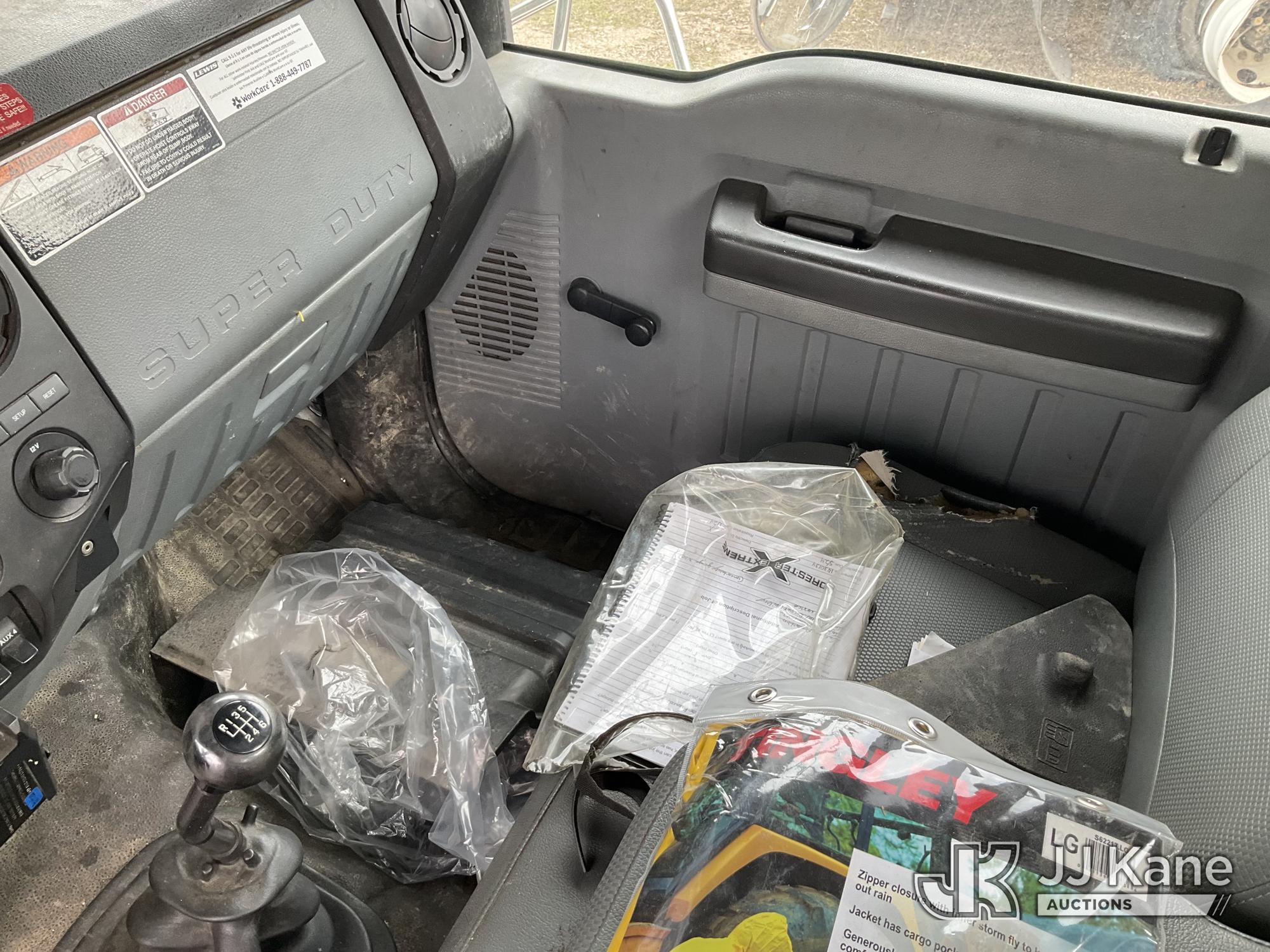 Altec LR756, 61 ft, Over-Center Bucket Truck s/n 0614FF2571, with single-man bucket & 2 hyd outriggers, mounted behind cab on 2015 Ford F-750 Chipper Dump Truck, Cummins 6.7L 4X2, diesel, 6-spd, A/C, with 25,999 lbs GVWR, (54,164 miles) (Runs, Moves, Operates) (Jump to Start, Engine Light, Engine Light, Hydraulic Leak at Bucket, Wire Harnesses Dangling Below Cab, Some Components Missing In Engine Bay)) This is a Titled Item*