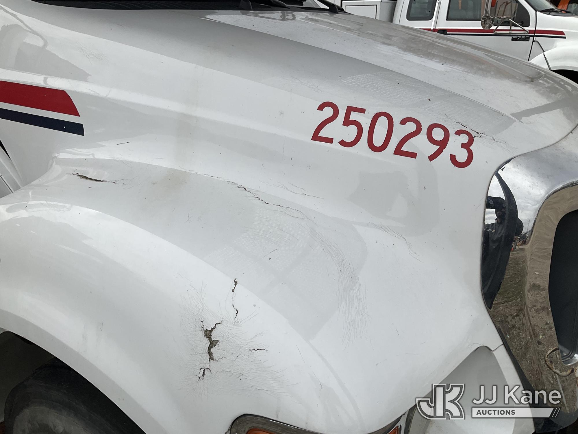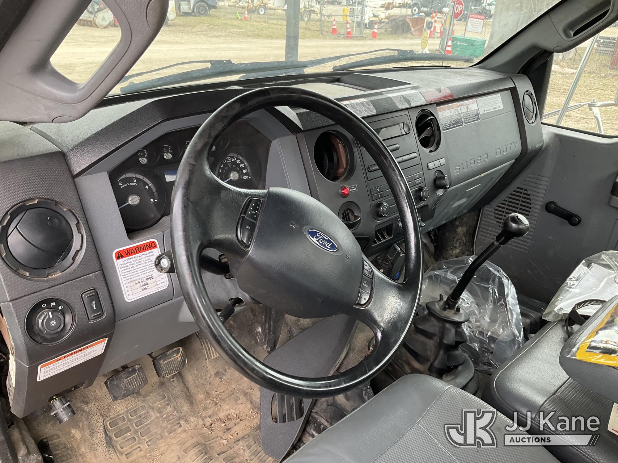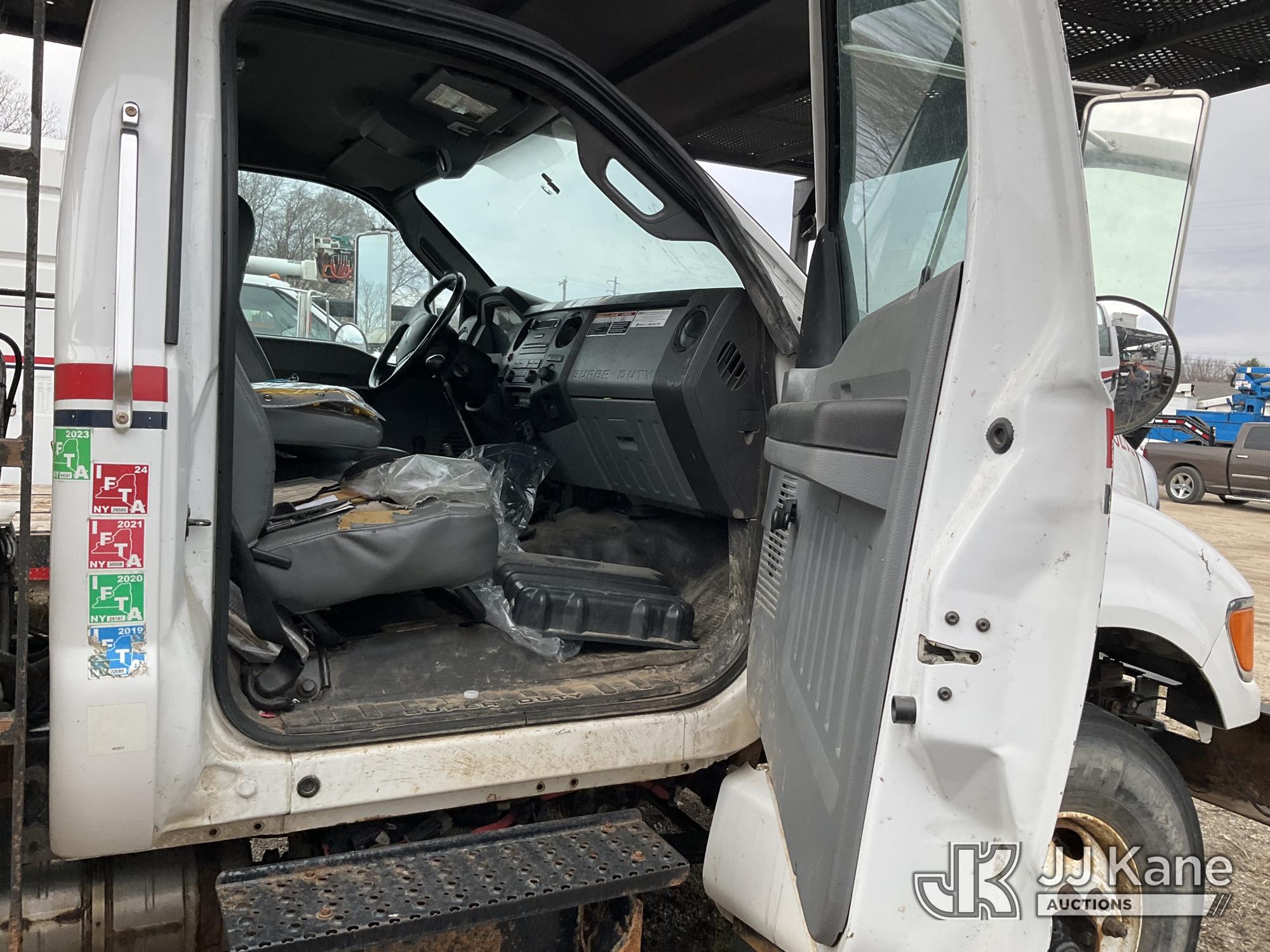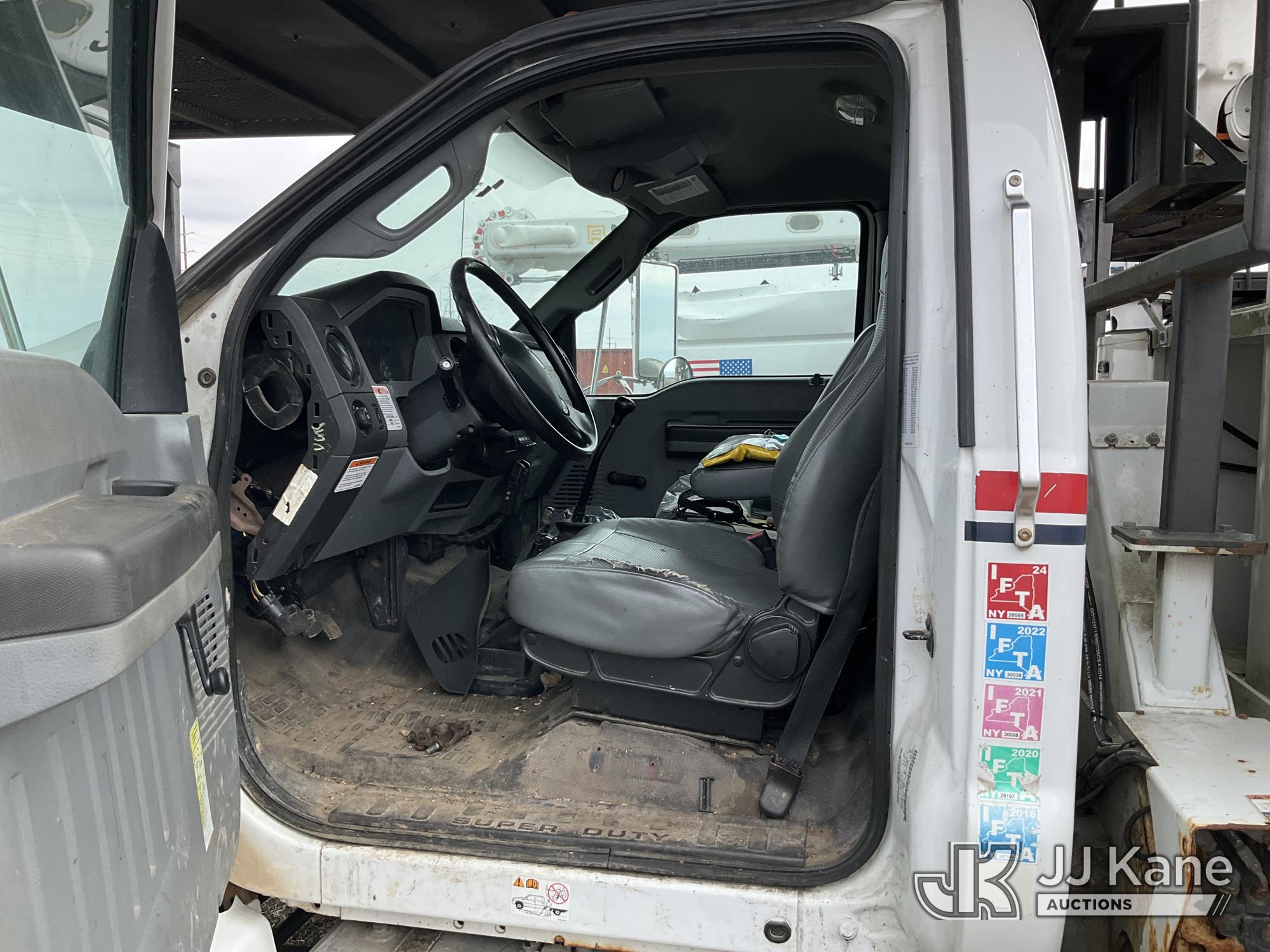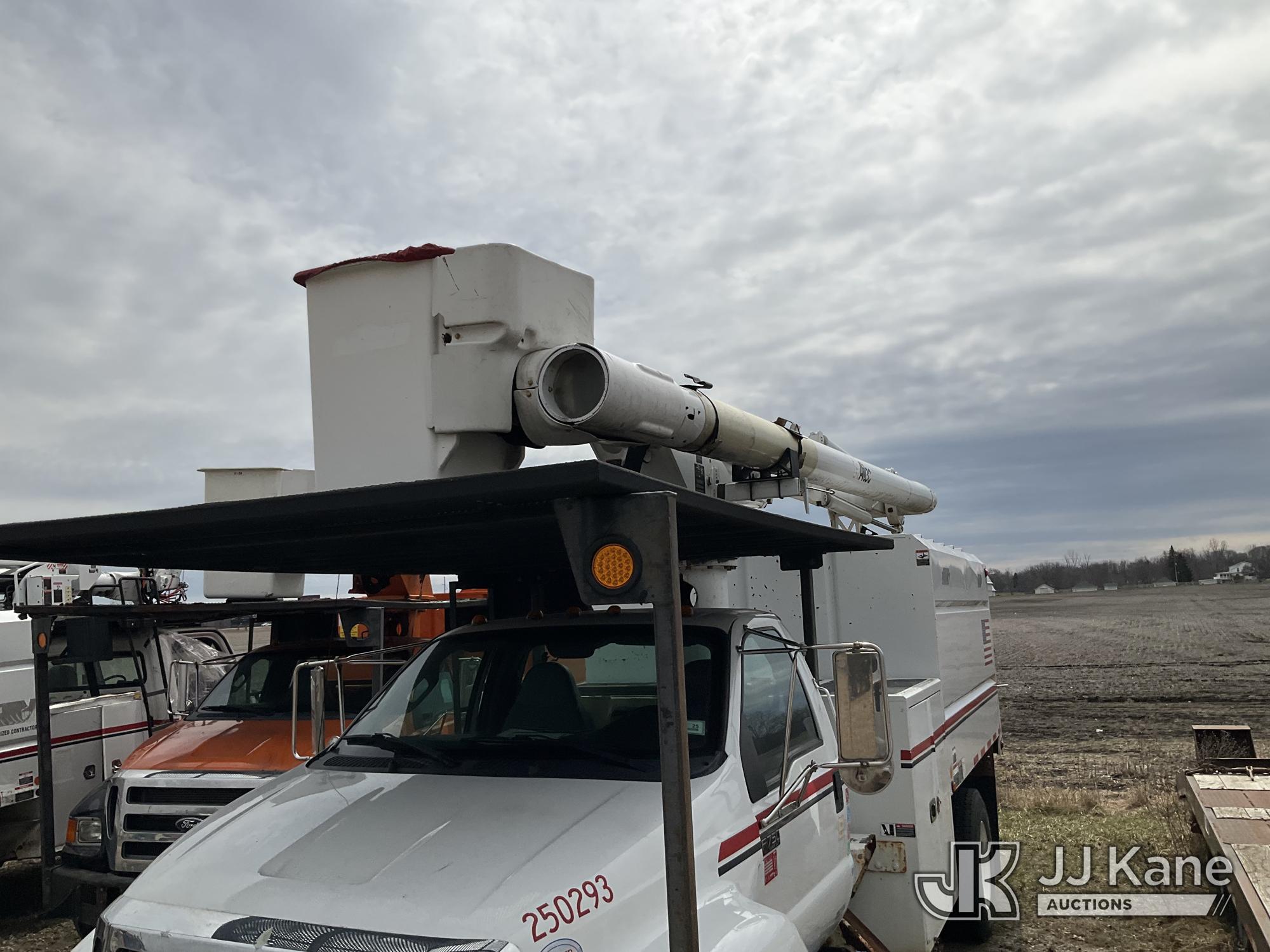 Altec LR756, 61 ft, Over-Center Bucket Truck s/n 0614FF2571, with single-man bucket & 2 hyd outriggers, mounted behind cab on 2015 Ford F-750 Chipper Dump Truck, Cummins 6.7L 4X2, diesel, 6-spd, A/C, with 25,999 lbs GVWR, (54,164 miles) (Runs, Moves, Operates) (Jump to Start, Engine Light, Engine Light, Hydraulic Leak at Bucket, Wire Harnesses Dangling Below Cab, Some Components Missing In Engine Bay)) This is a Titled Item*